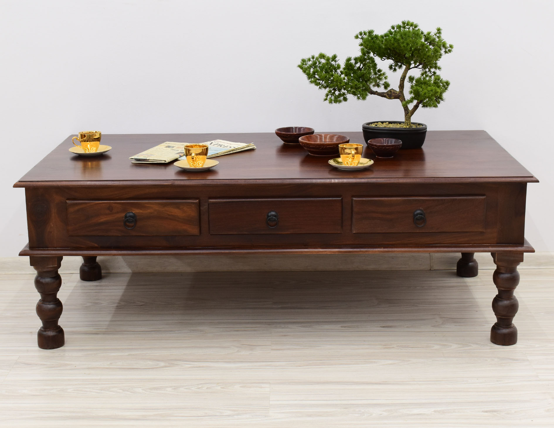 Stolik kawowy ława z szufladami Classic lite drewno palisander indyjski z 6 szufladami