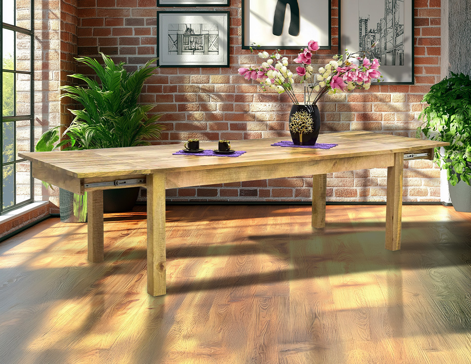 Stół kolonialny indyjski do jadalni rozkładany Loft lite drewno mango 150(+2×40)/90 cm