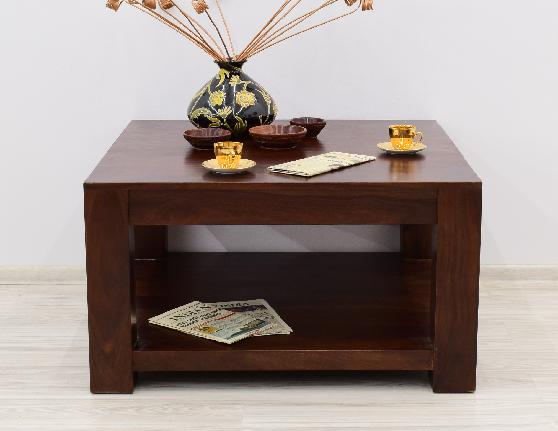 Stolik kawowy kolonialny Modern z litego drewna palisandru indyjskiego z półką