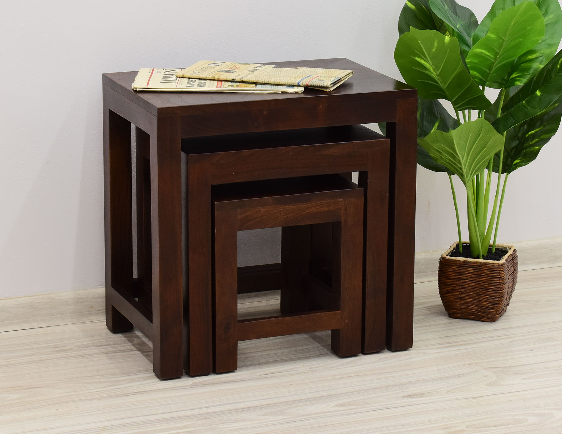 Stoliczek taboret kolonialny Modern lite drewno palisander indyjski ciemny brąz zestaw 3 sztuk