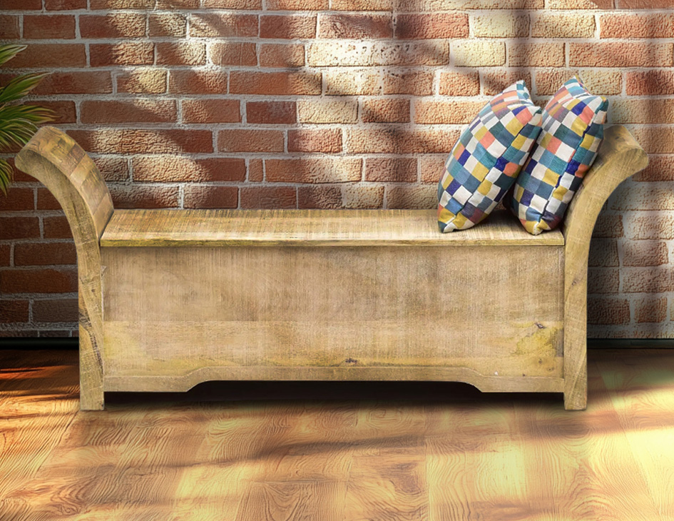 Ławka kolonialna indyjska siedzisko Loft lite drewno mango ze schowkiem