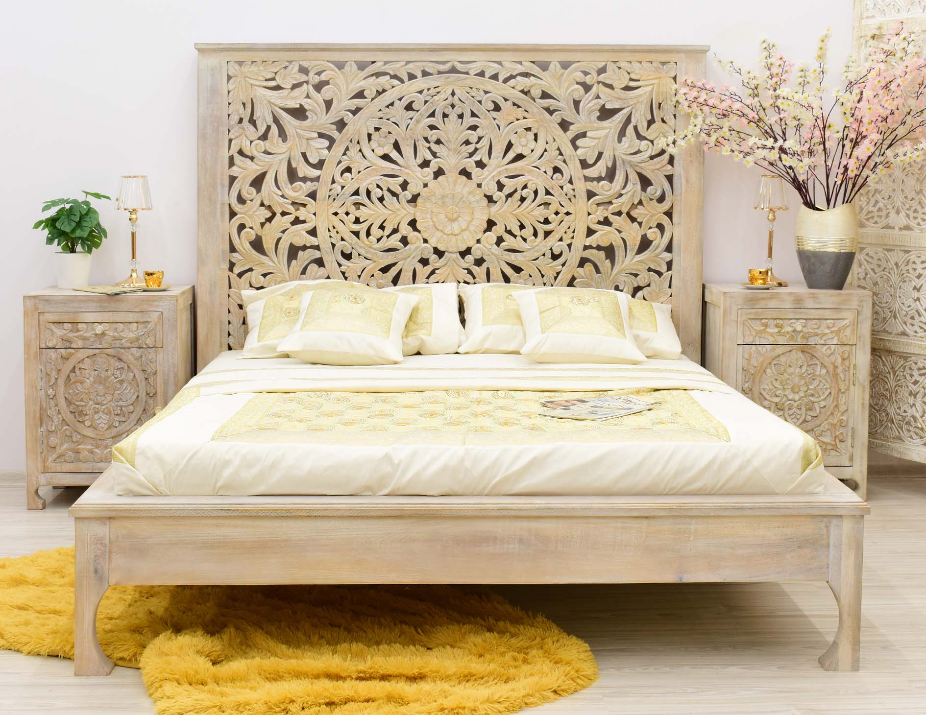 Łóżko kolonialne indyjskie King lite drewno mango przecierane królewskie