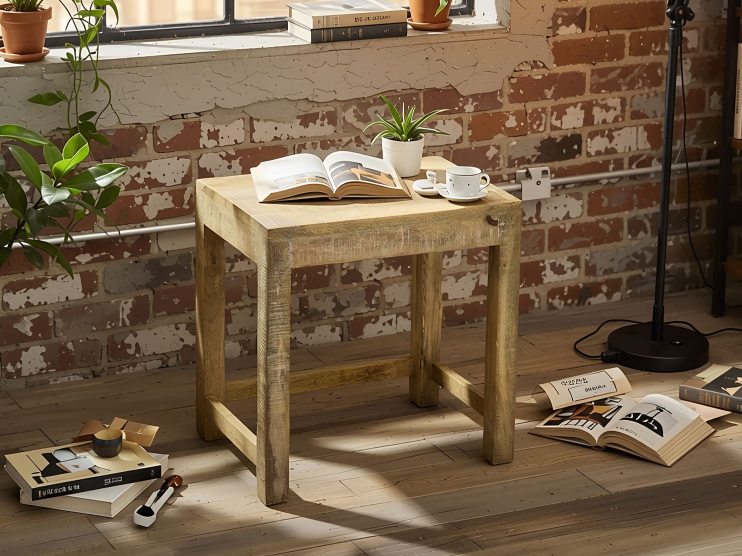 Taboret kolonialny stoliczek indyjski stołek Loft lite drewno mango duży