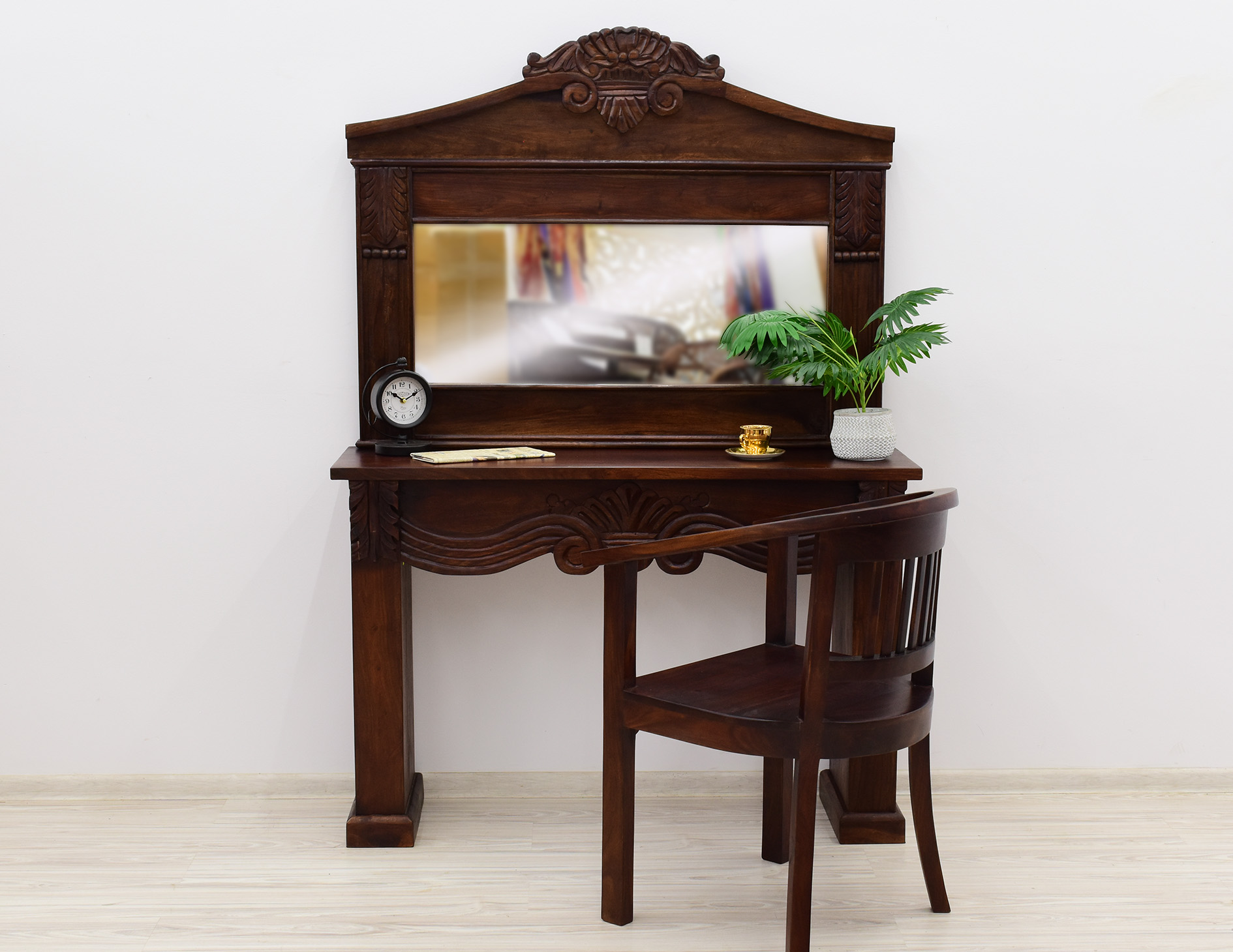 Toaletka kolonialna Warszawa komplet konsola i lustro lite drewno palisander indyjski ręcznie rzeźbiona