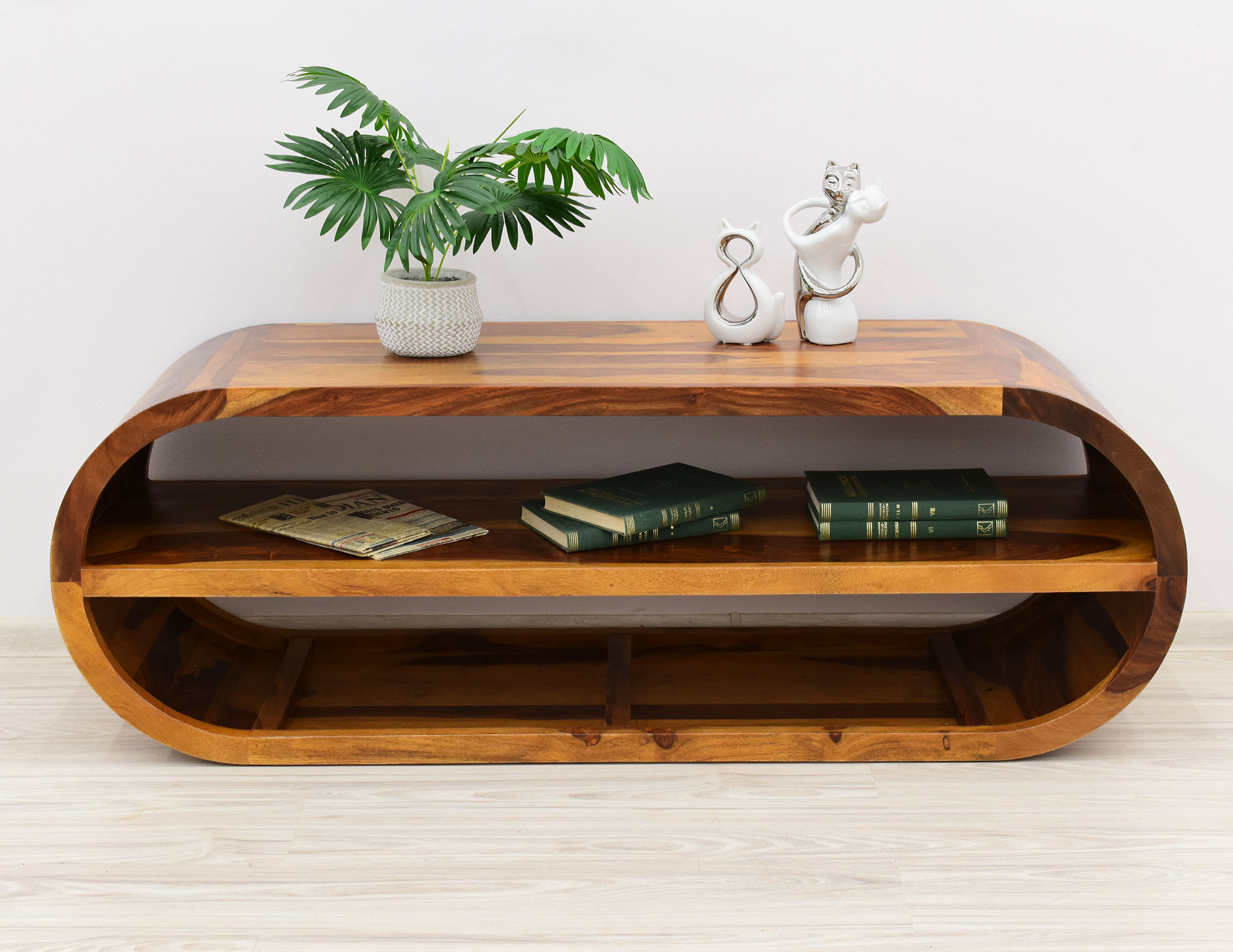 Wszystkie nasze indyjskie szafki RTV są bardzo trwałe, wykonane z litego egzotycznego drewna. Te z palisandru indyjskiego często w stylu klasycznym, natomiast z mango, które łatwo poddaje się obróbce, w stylu orientalnym.