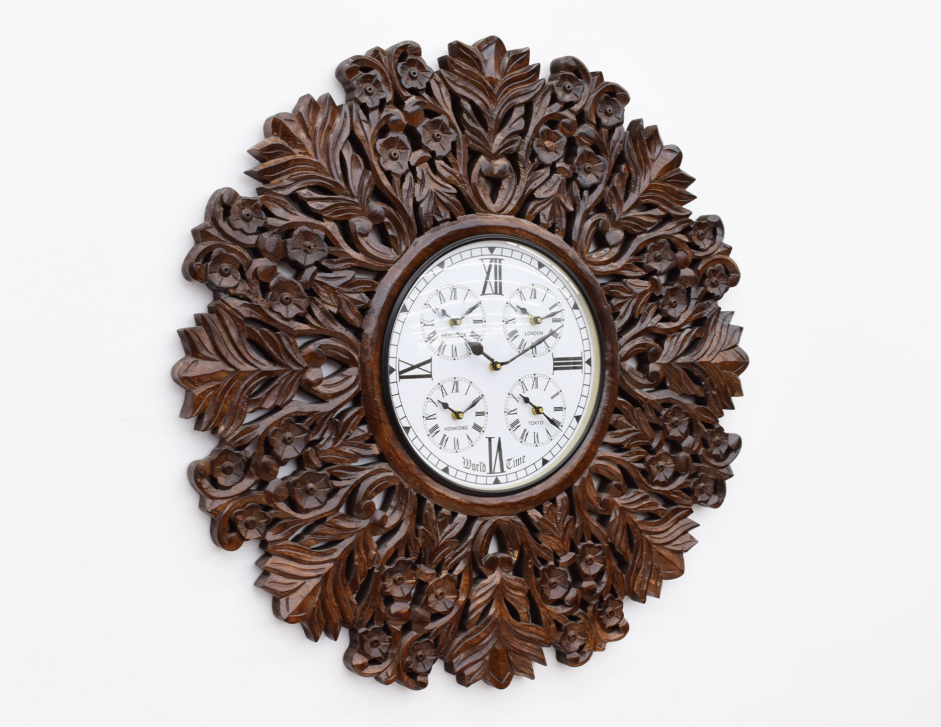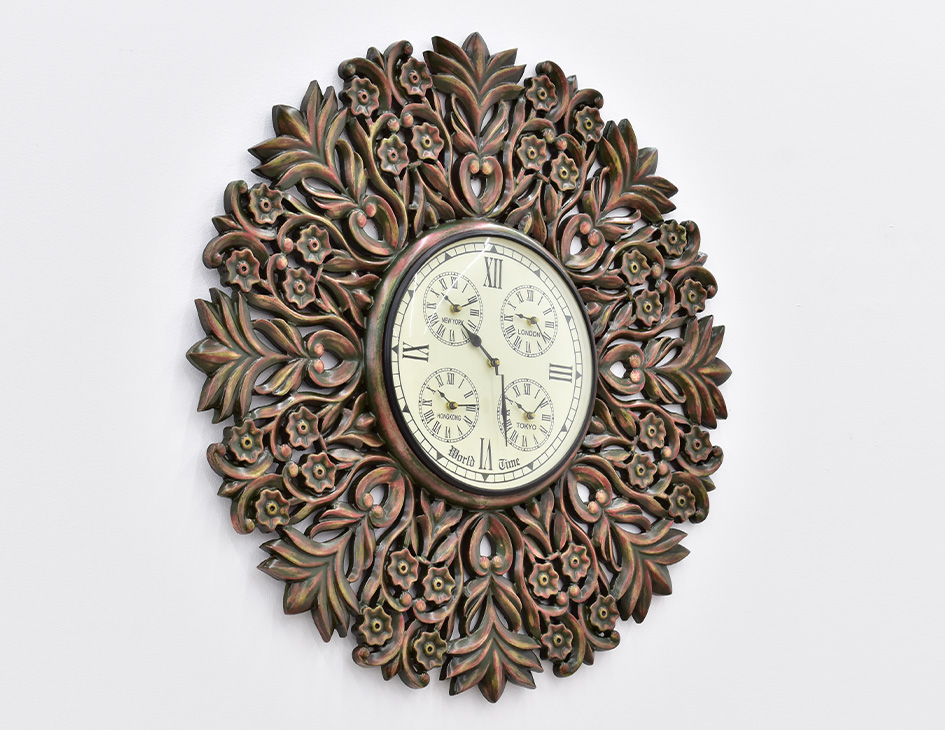 Zegar ścienny indyjski w stylu kolonialnym 75×75 cm drewniana rama rzymskie cyfry