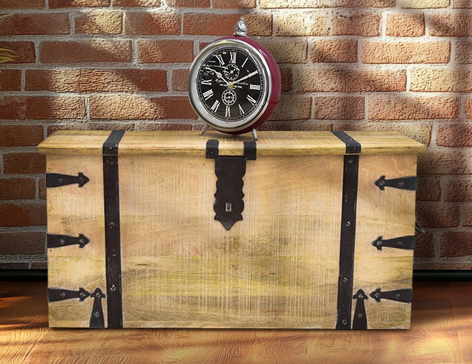 Skrzynie wykonane z litego drewna akacji, mango czy palisandru stają się masywnymi meblami. Zależnie od użytego materiału i wykończenia mogą się wpisać w wystrój orientalny albo industrialny. Na tych obszernych płaszczyznach zostaje wyeksponowane piękno naturalnego drewna, jego struktura i charakterystyczny rozkład słoi. To jest istota unikatowego stylu kufrów indyjskich, zabezpieczona często tylko bezbarwnym lakierem.