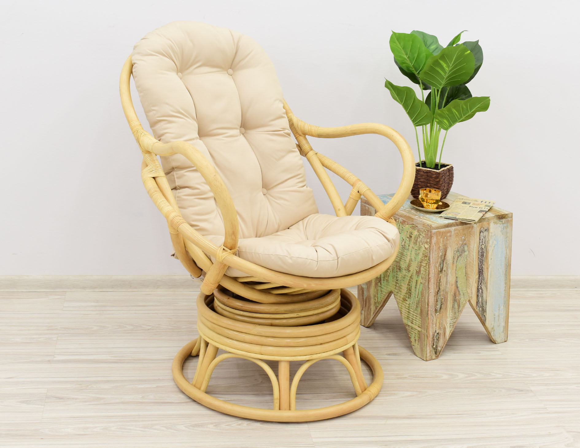 Fotel bujany obrotowy z rattanu – piękny naturalny kolor