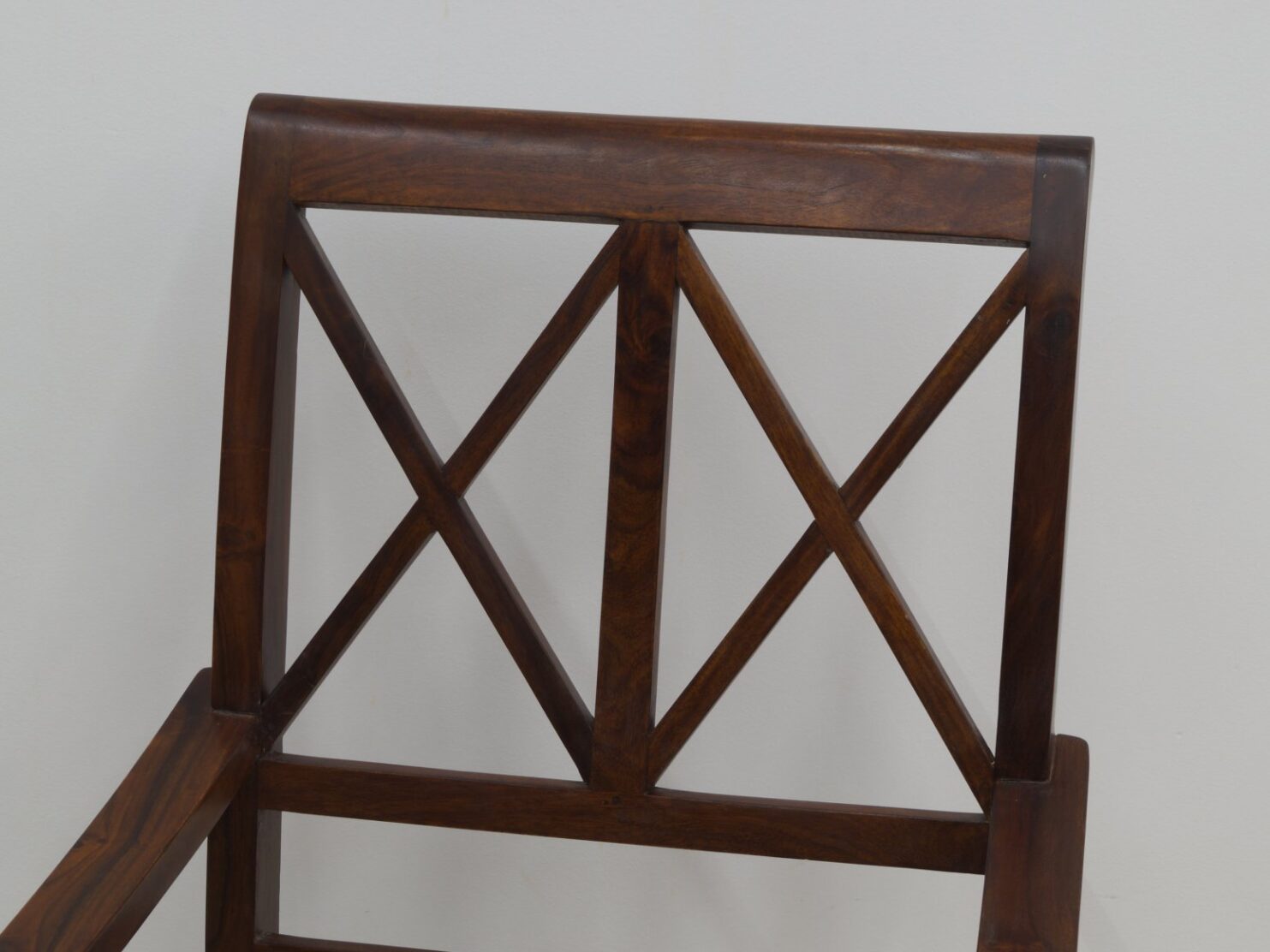 Fotel indyjski stworzony w małej manufakturze przez indyjskich rzemieślników, powstał w 100% z litego drewna palisandru indyjskiego. Jest to forma drewnianego krzesła z podłokietnikami, w kolorze ciemny brąz. W połączeniu ze stylową poduszką na siedzisko stanie się niezwykle wygodnym meblem, dopasowanym do aranżacji w stylu klasycznym.