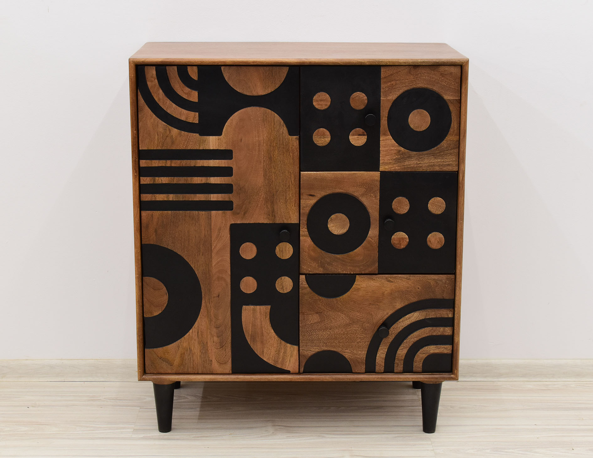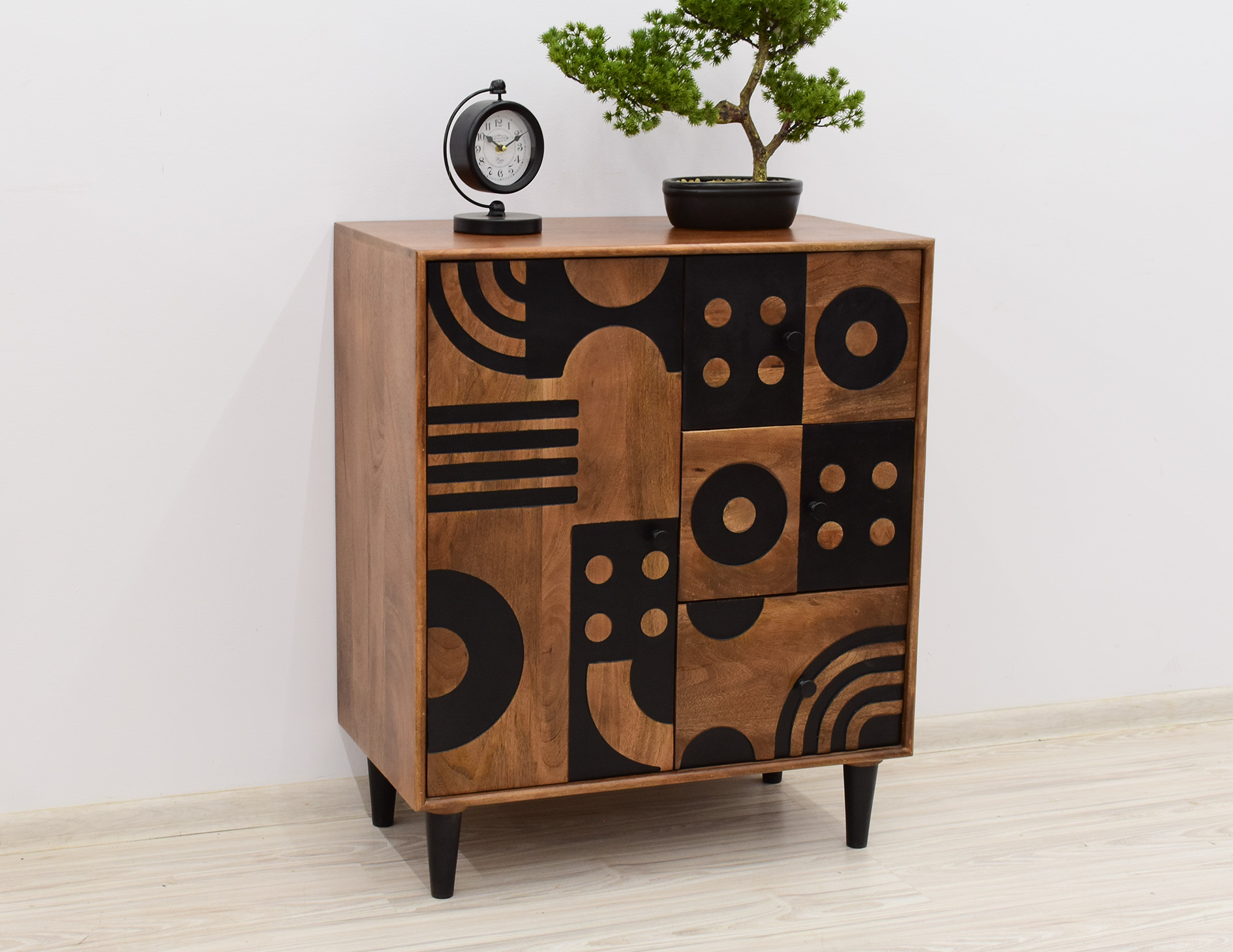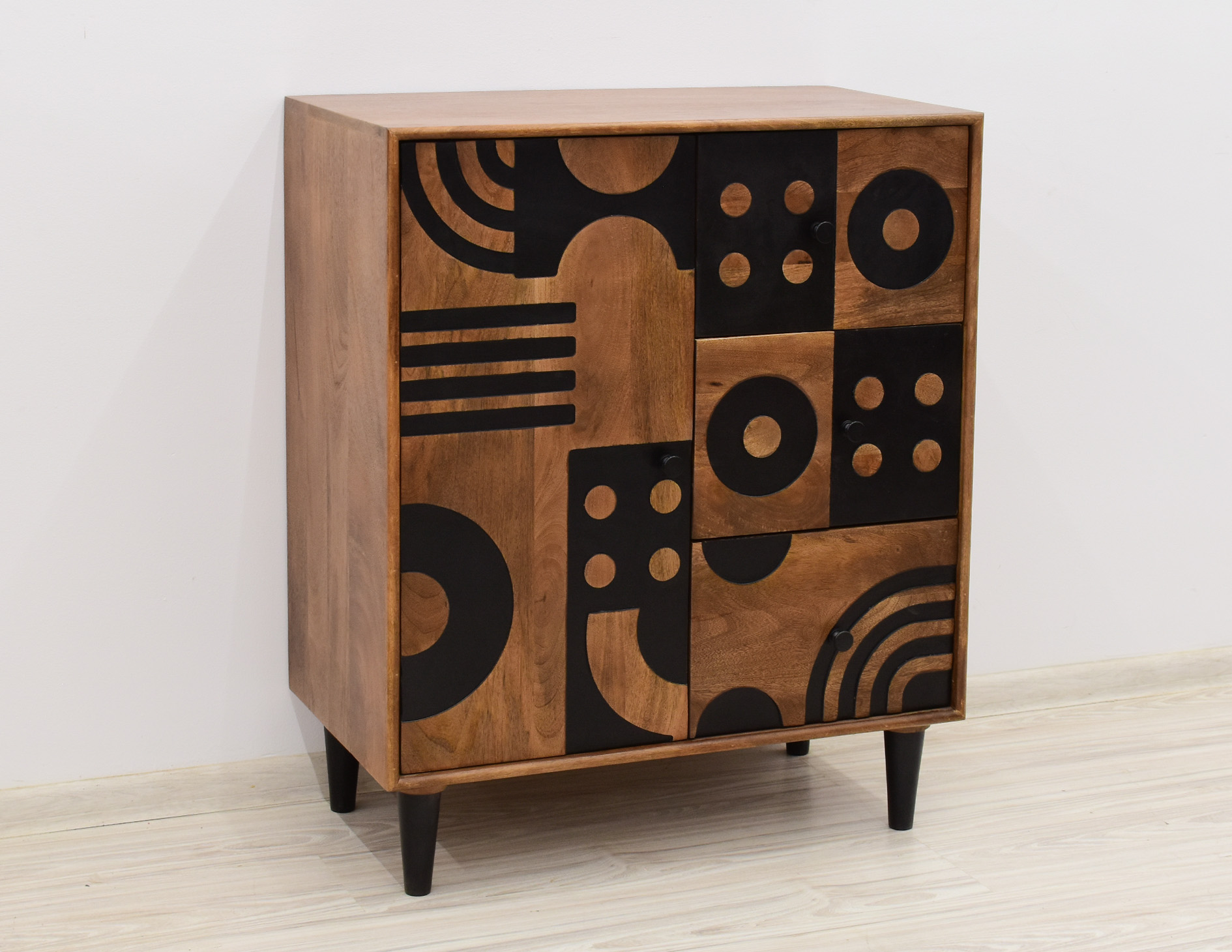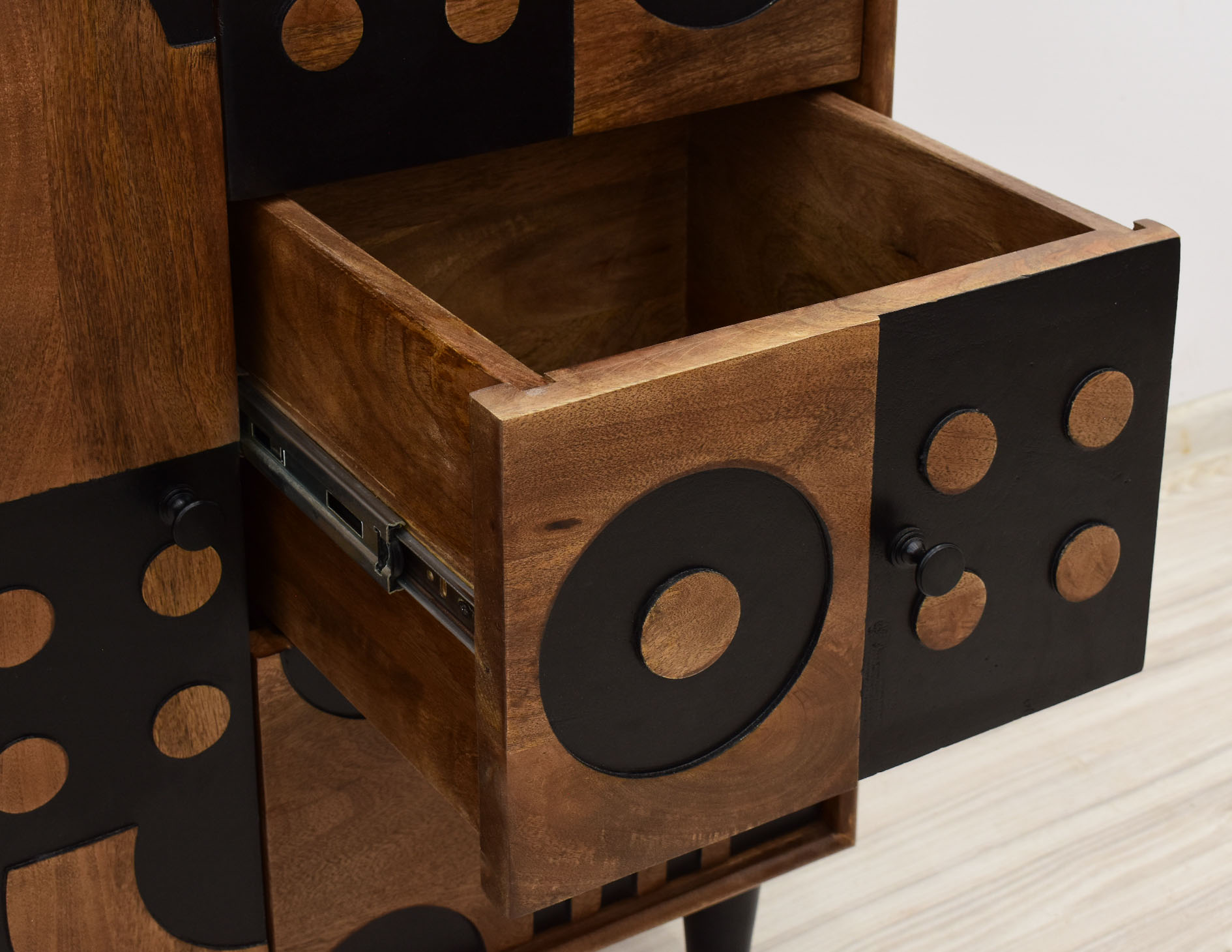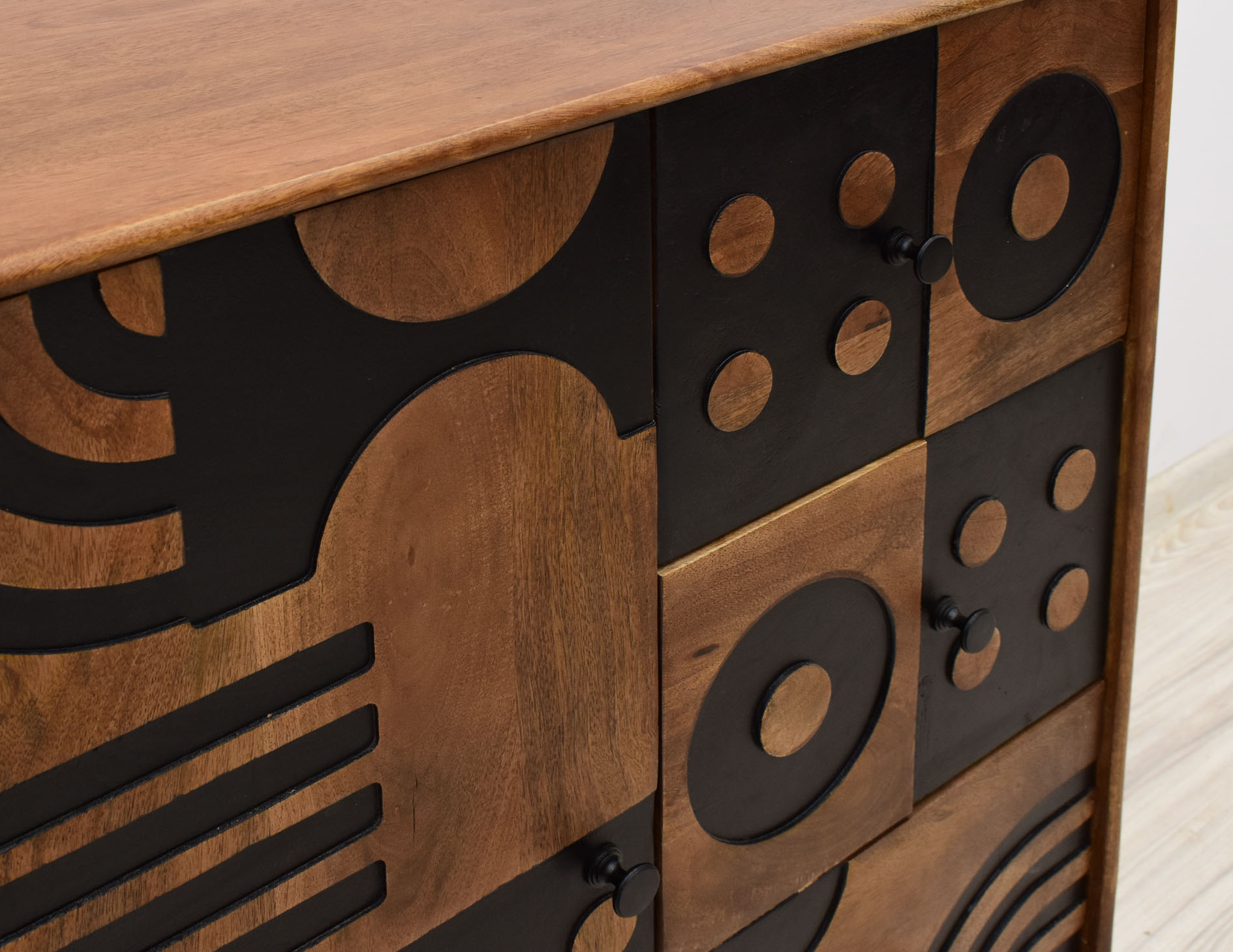 Stylowa komoda utrzymana w stylu kolonialnym. Mebel ręcznie wykonany z litego drewna mango w hinduskiej manufakturze.