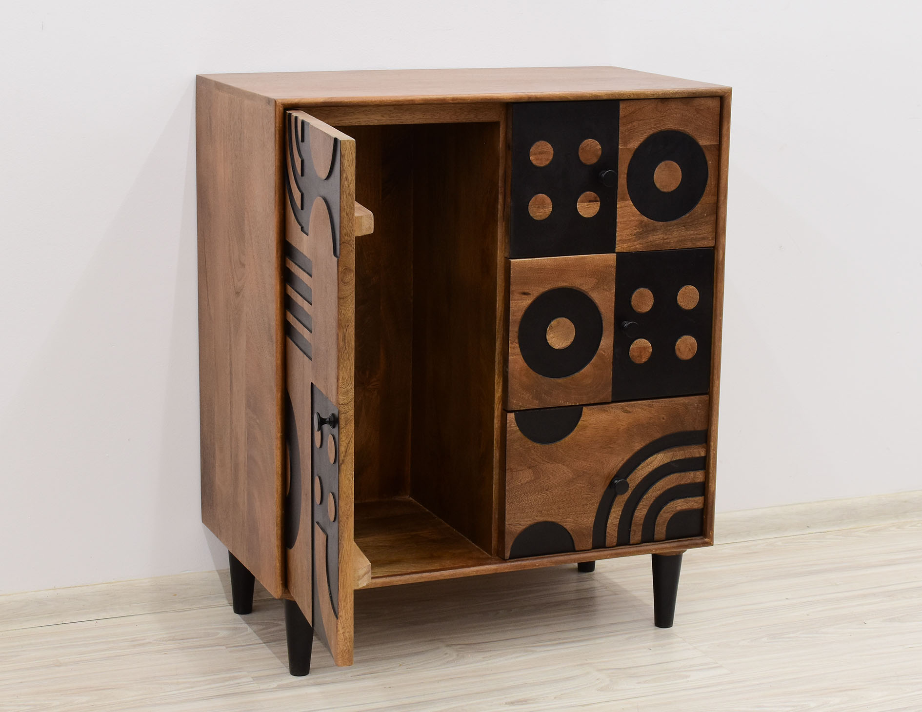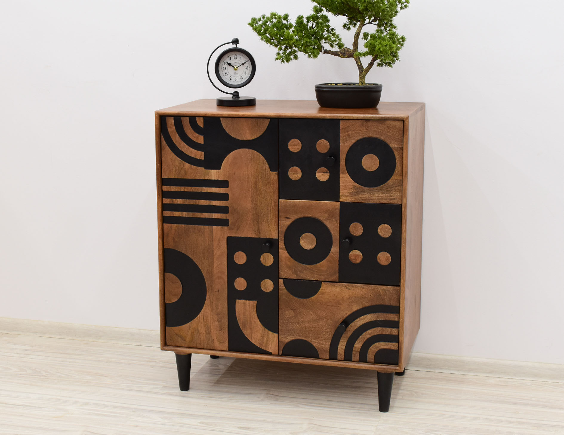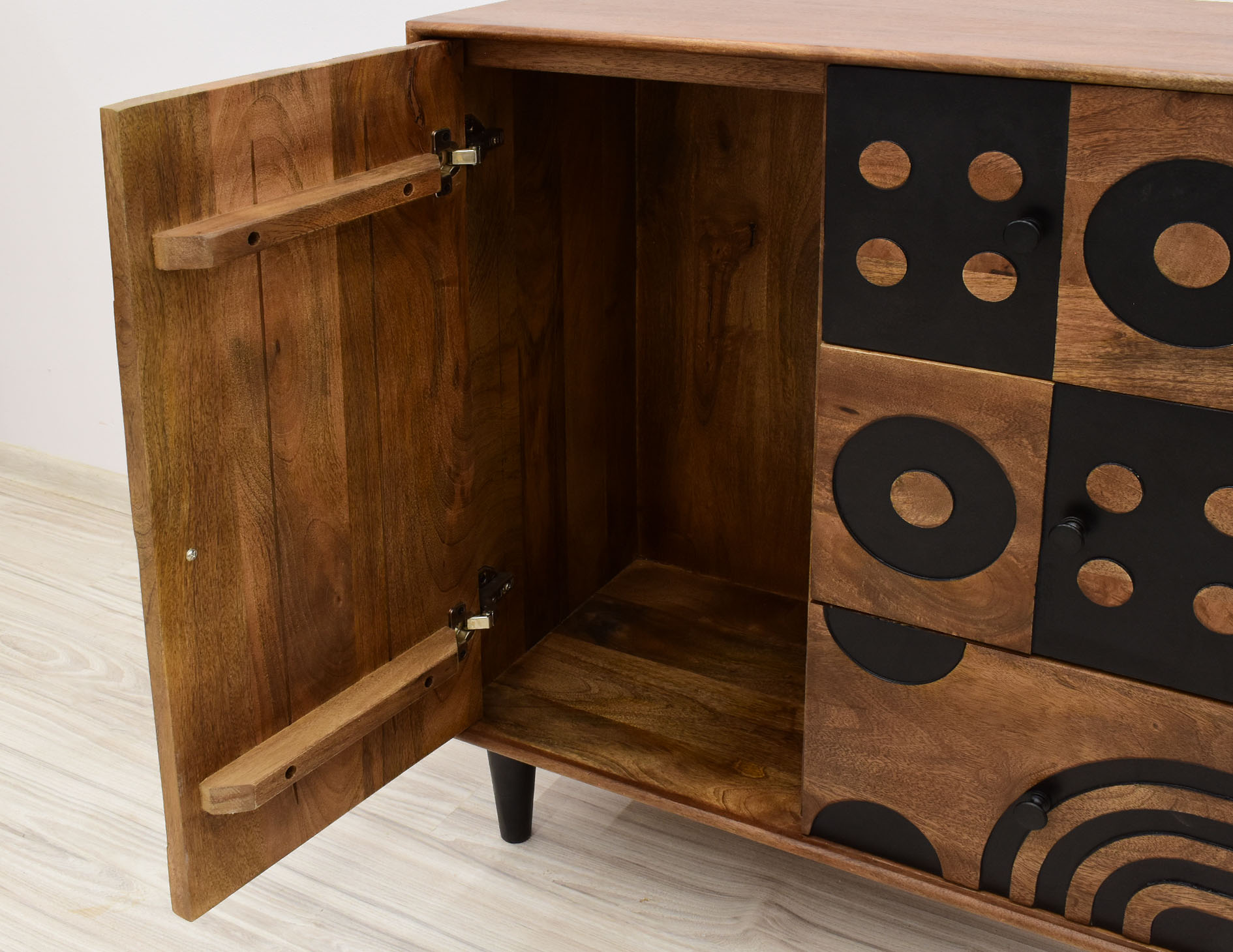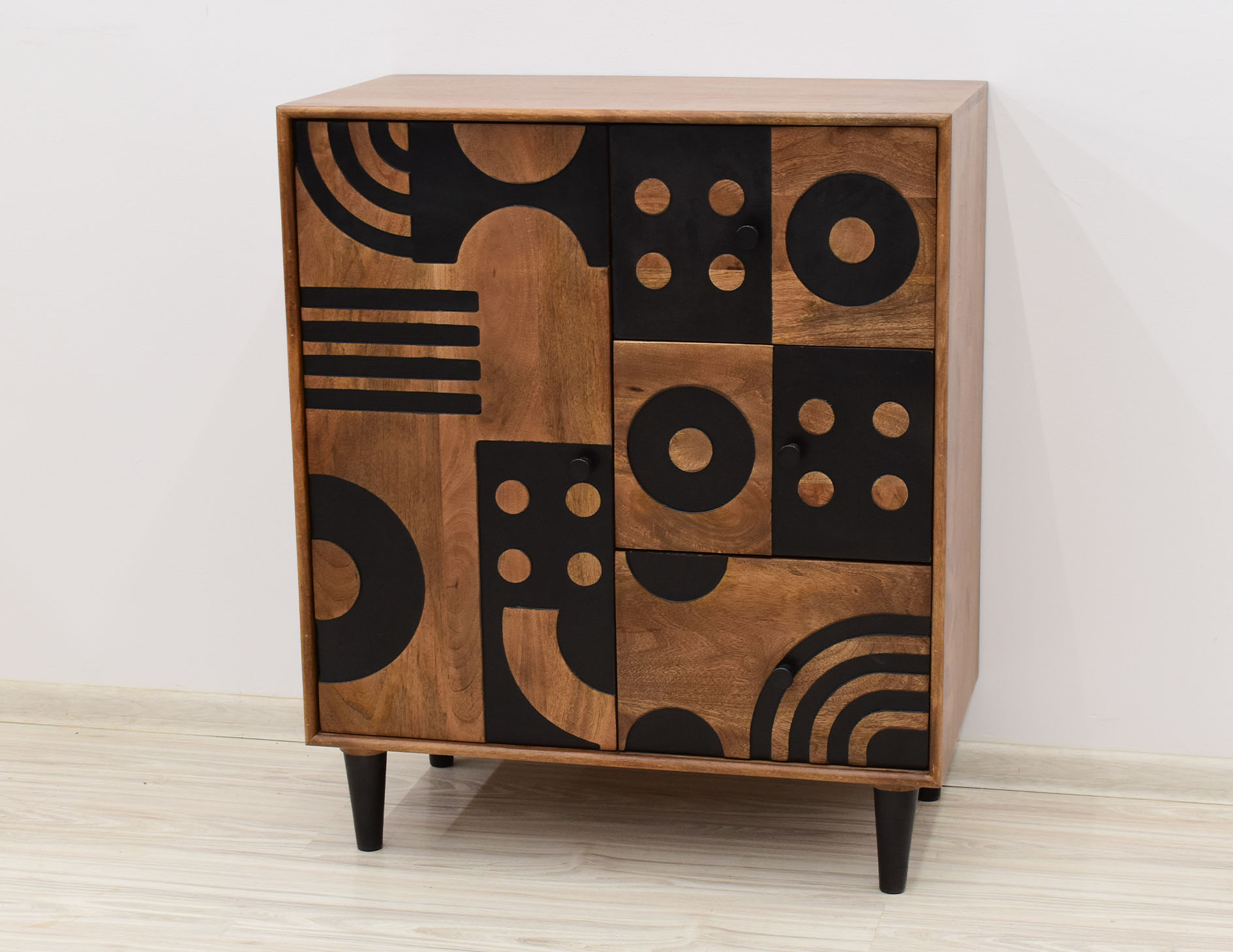 Stylowa komoda utrzymana w stylu kolonialnym. Mebel ręcznie wykonany z litego drewna mango w hinduskiej manufakturze.
