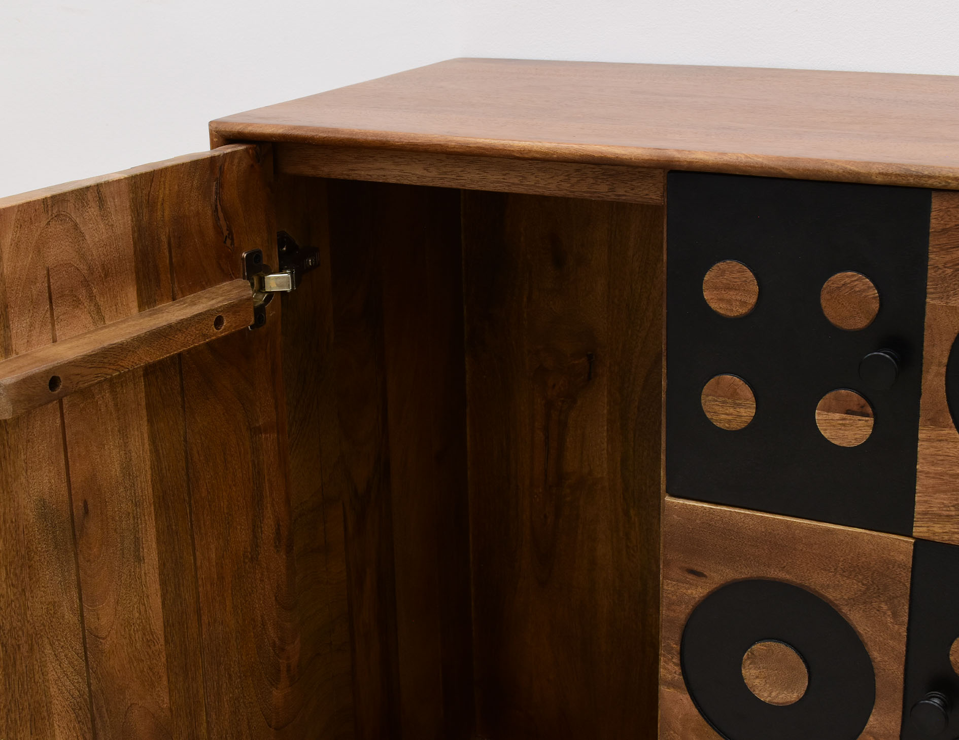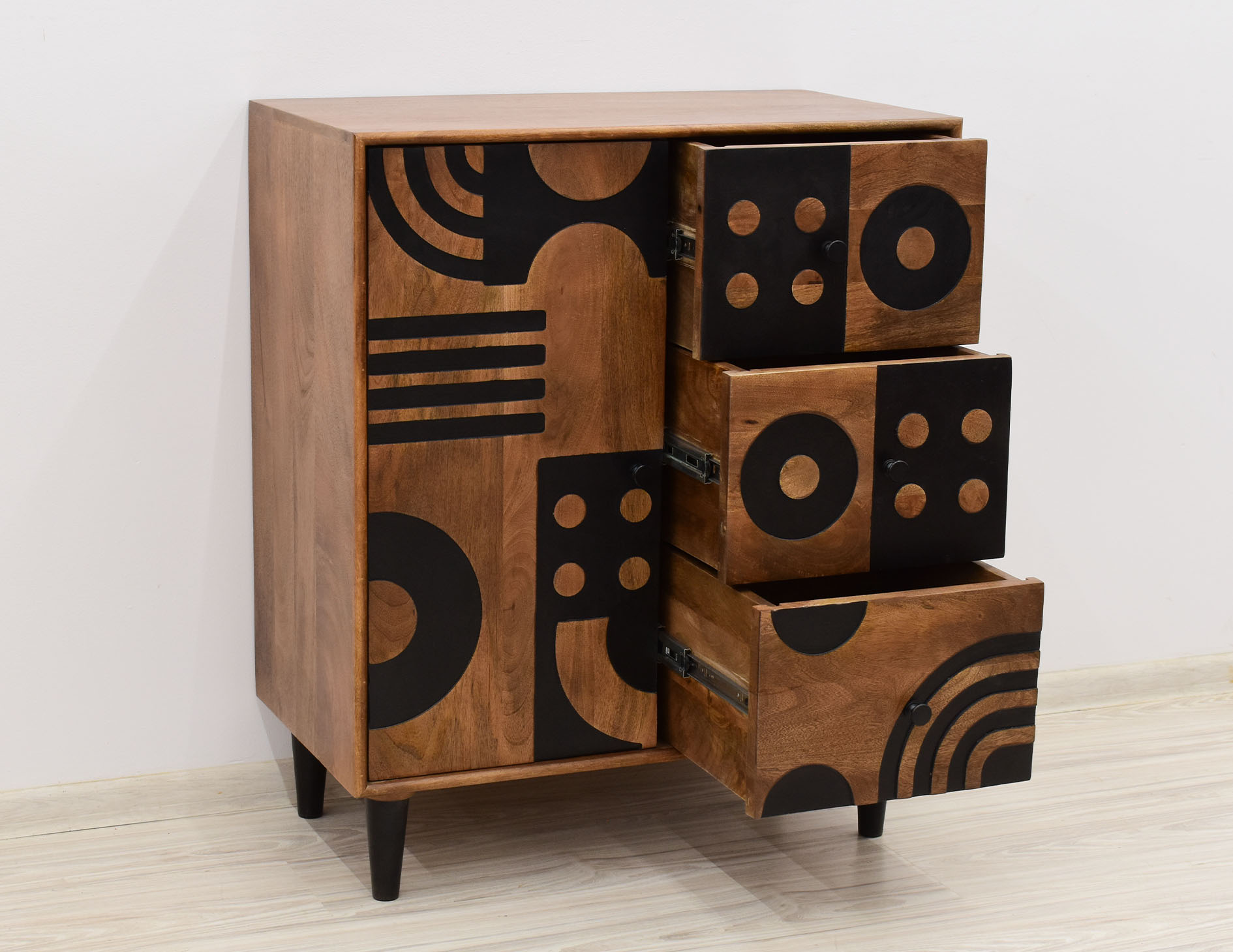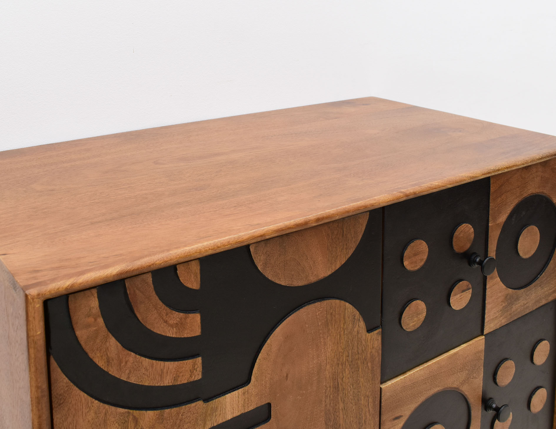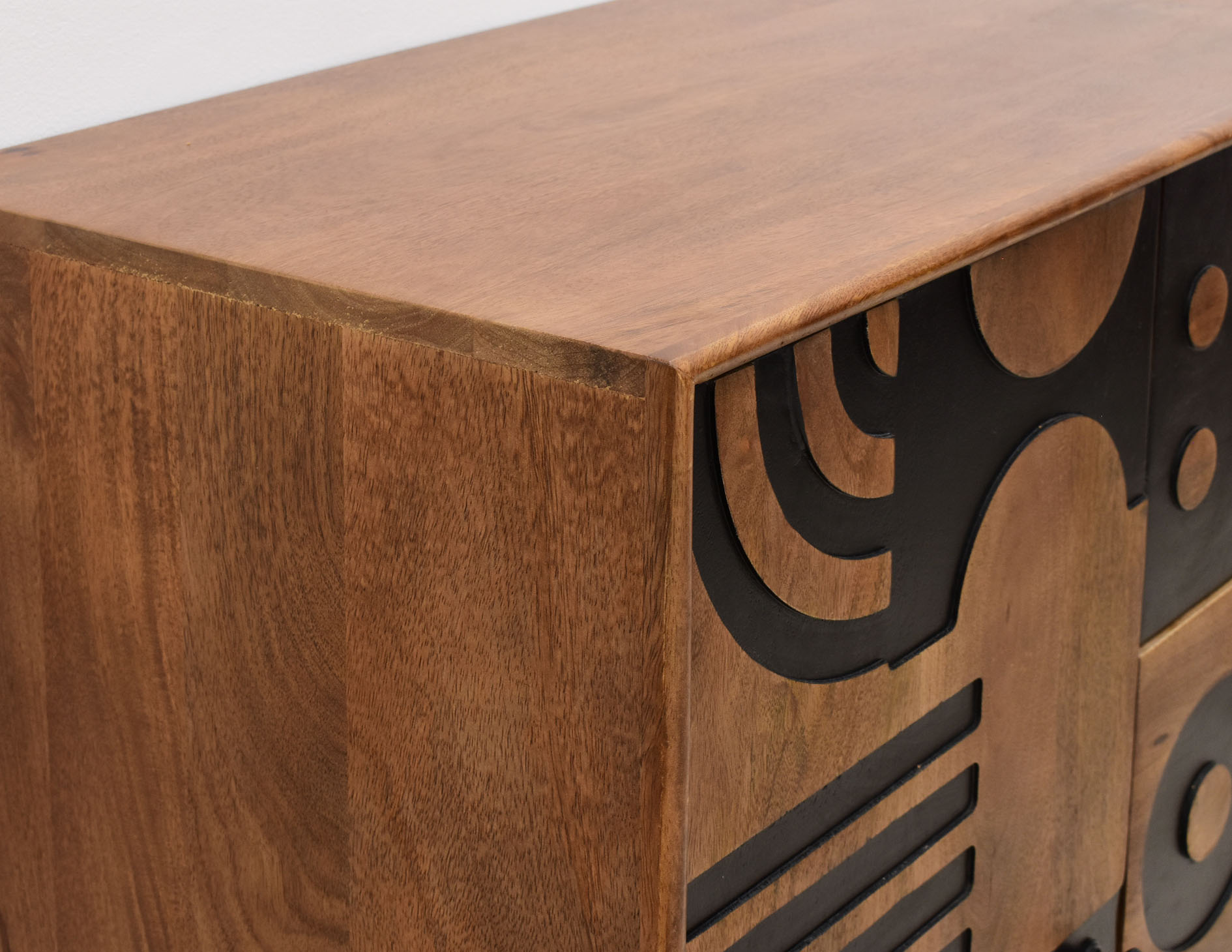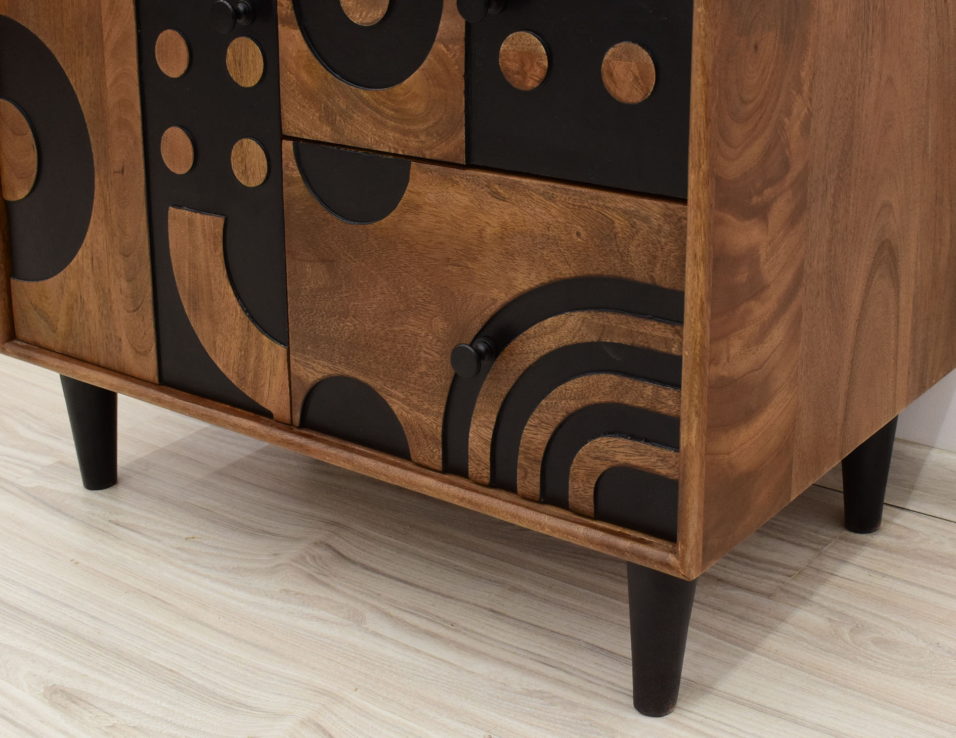 Stylowa komoda utrzymana w stylu kolonialnym. Mebel ręcznie wykonany z litego drewna mango w hinduskiej manufakturze.