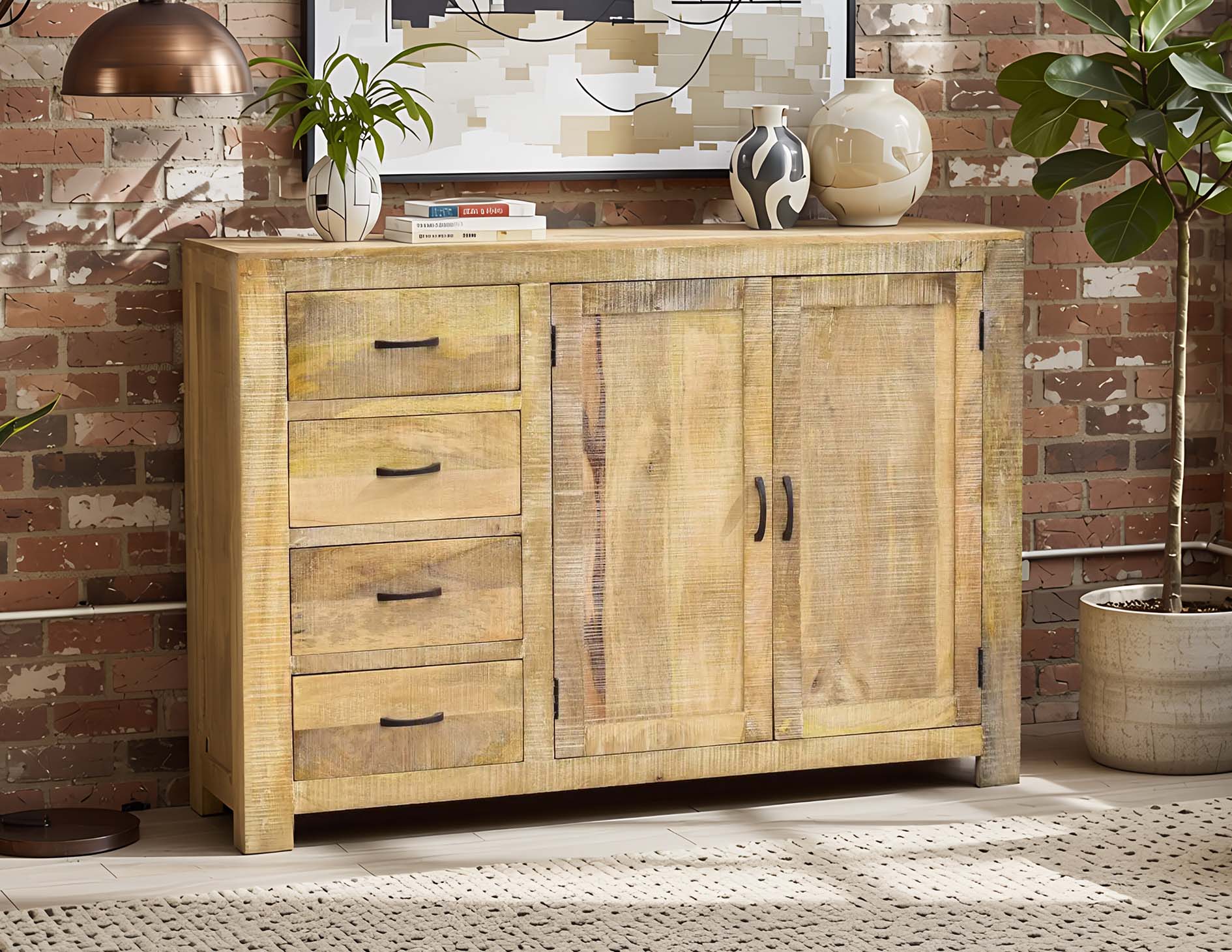 Komoda indyjska stworzona w małej manufakturze przez doświadczonych rzemieślników. Jest to mebel z charakterystycznie wyglądającego drewna mango, które jest idealnym, naturalnie pięknym surowcem na meble w stylu nowoczesnym.