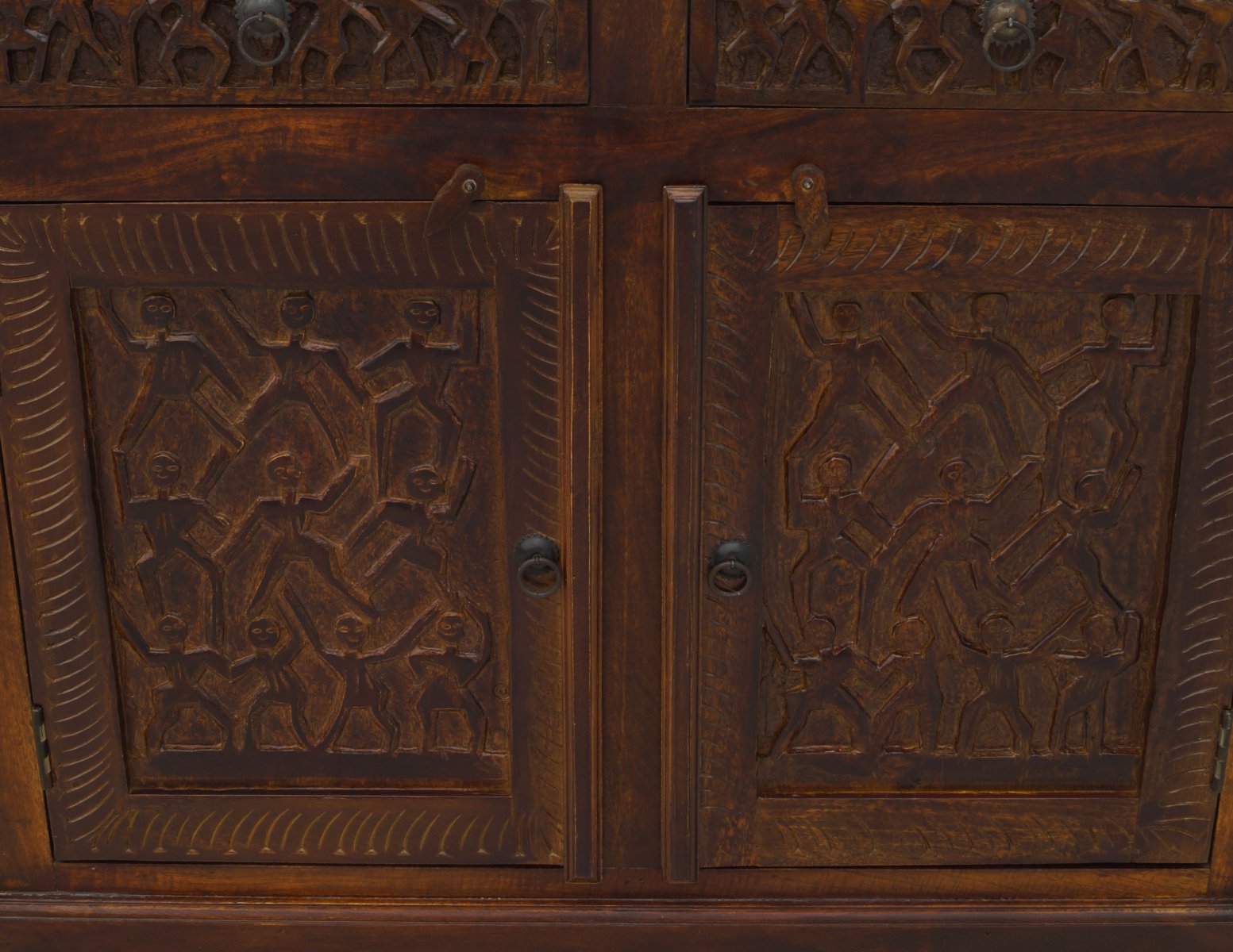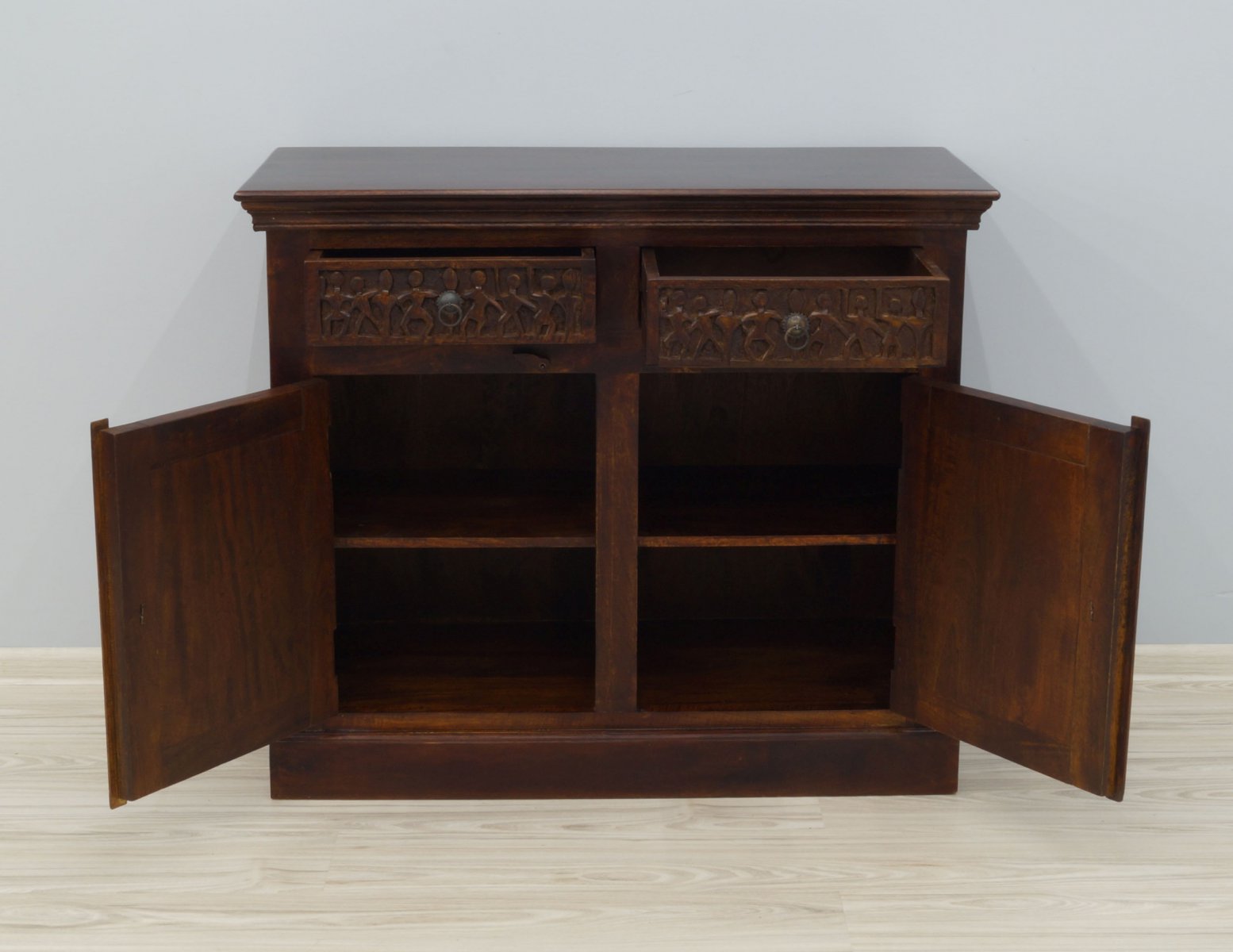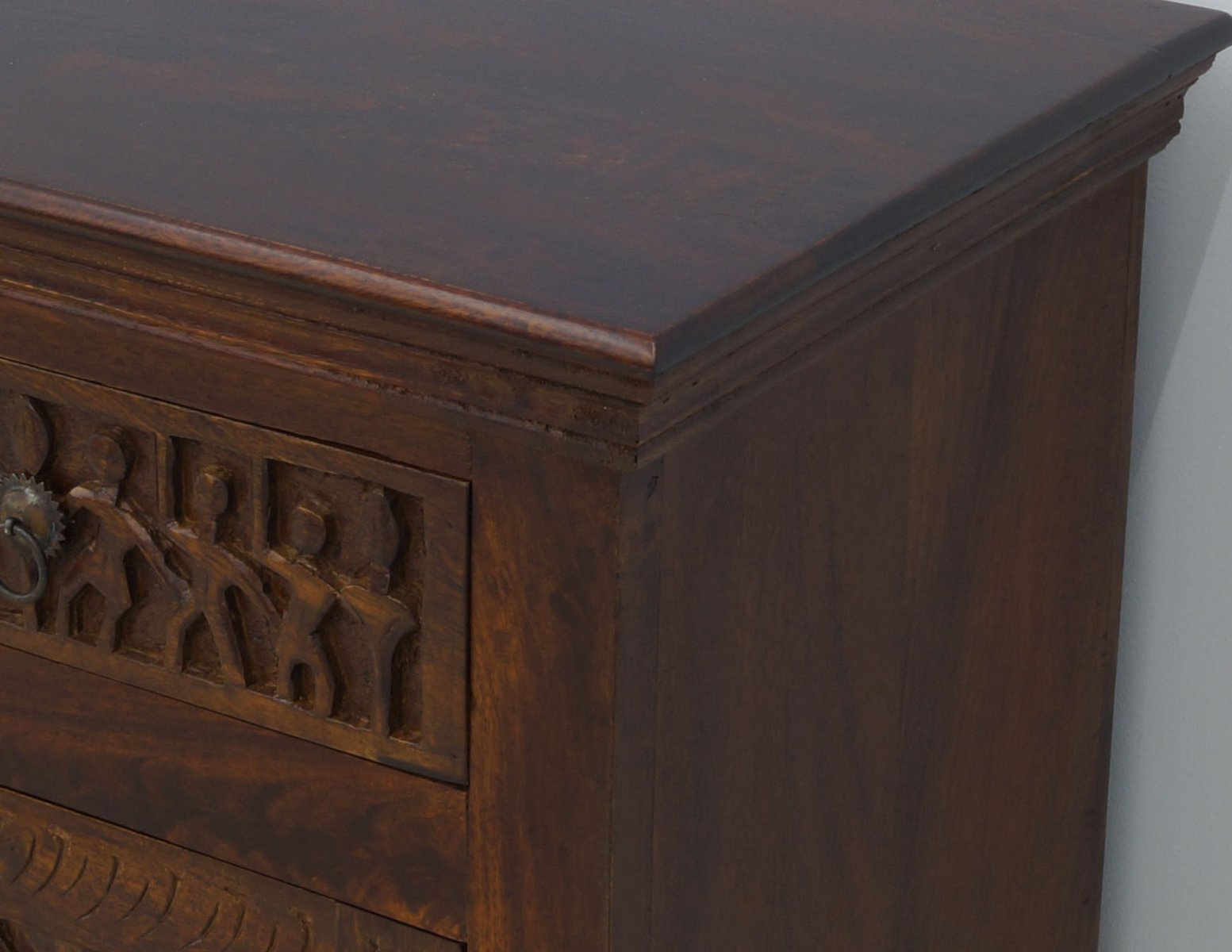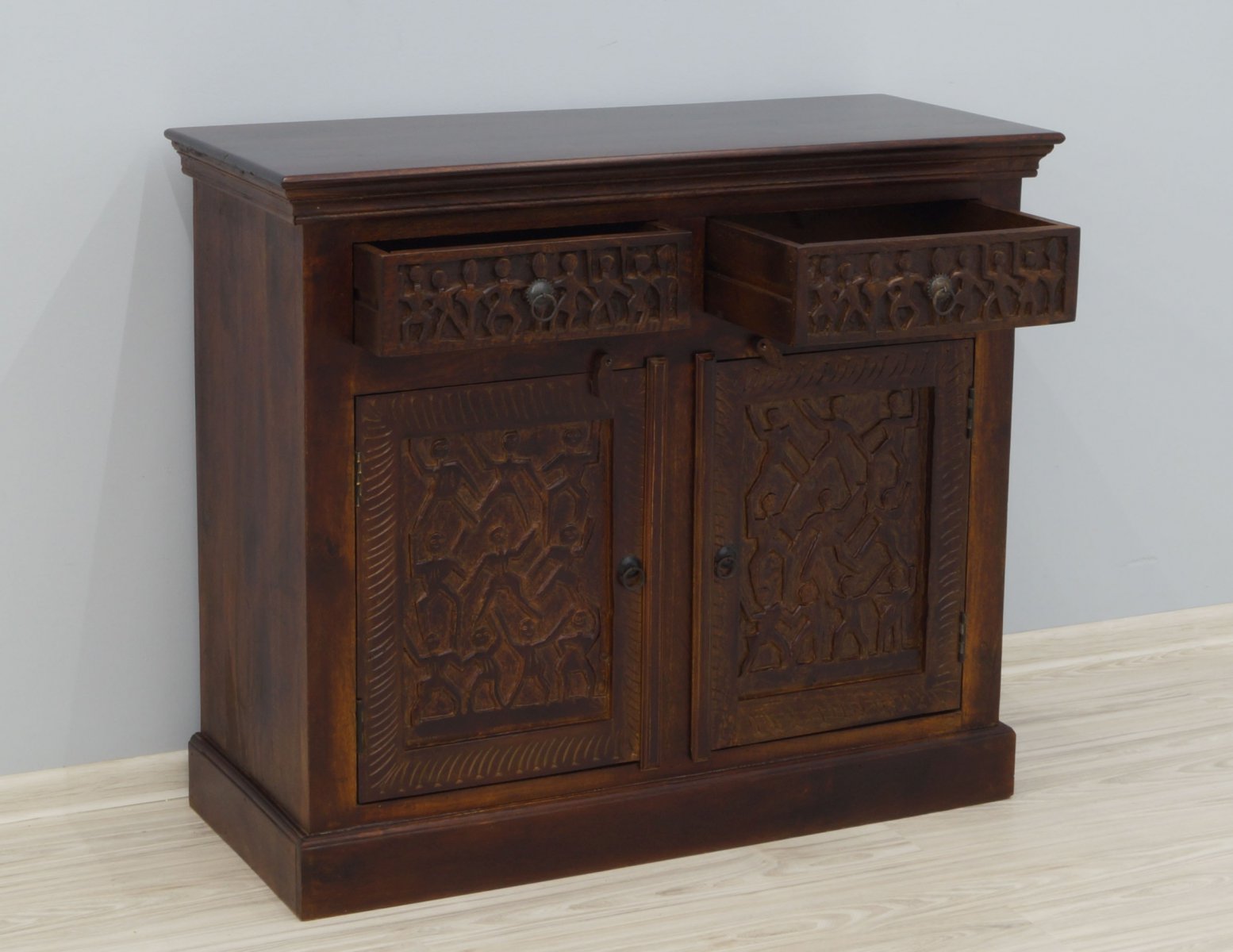 Komoda kolonialna Carved lite drewno mango rzeźbiona ciemny brąz