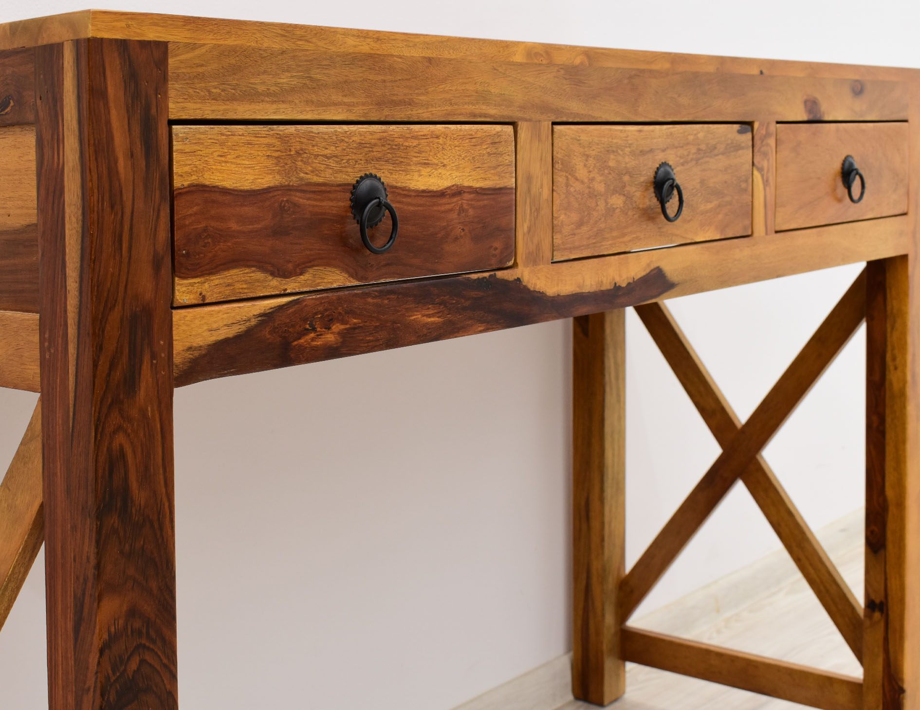 Konsola kolonialna Neo lite drewno palisander indyjski klasyczna z 3 szufladami