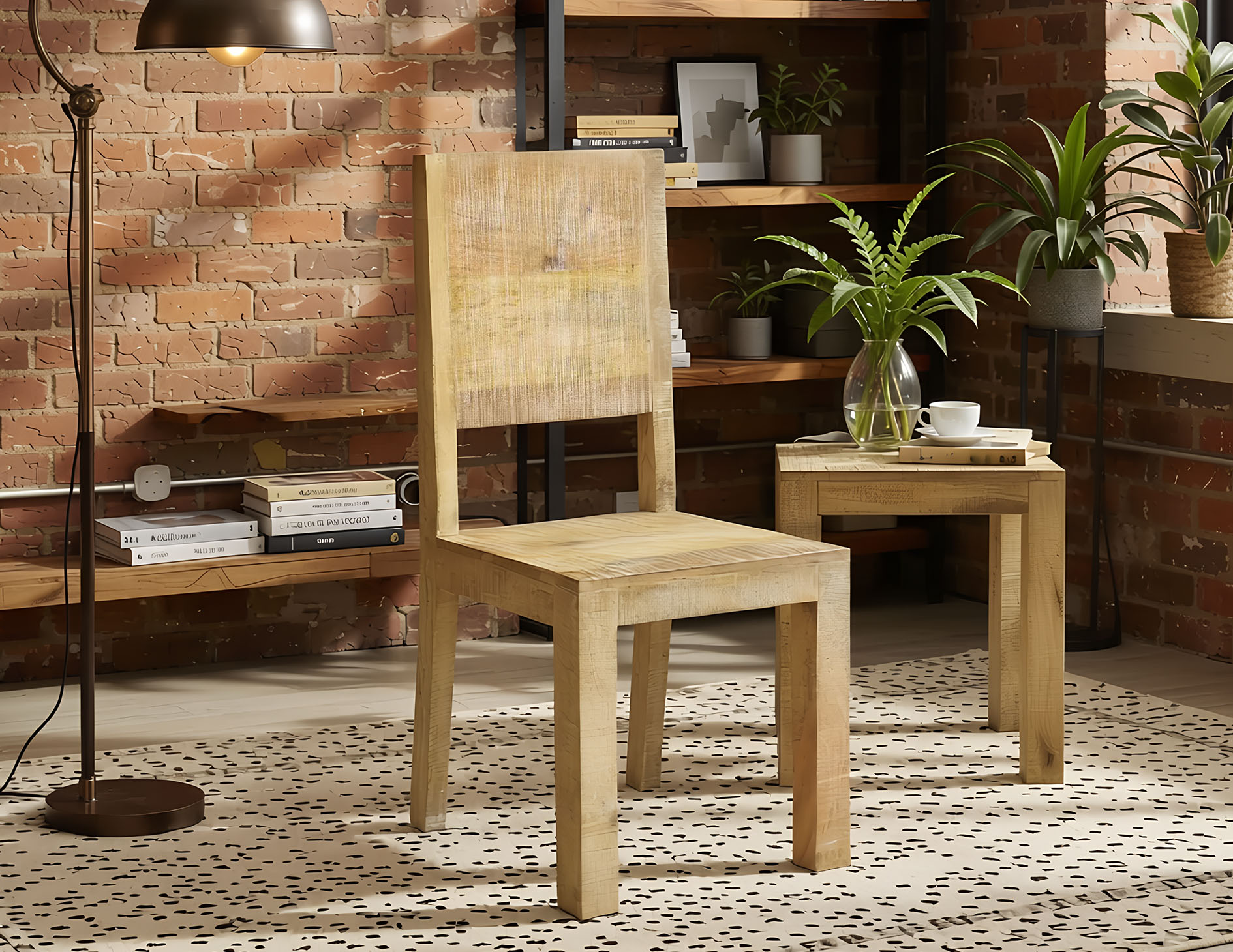 Krzesło kolonialne, które swoim kształtem, kolorem oraz surowo wyglądającą strukturą drewna mango, wpisuje się w panujący obecnie nurt stylistyczny zwany Loft. Jest to dążenie do minimalizmu przy pomocy naturalnych surowców takich jak drewno, ale także i betonu, metalu. Krzesło z tej kolekcji jest masywne i posiada mocno zarysowane krawędzie. Wraz ze stołem z tej samej kolekcji będzie tworzyć nietuzinkowy kącik jadalny. Cena dotyczy zestawu 2 sztuk krzesła.