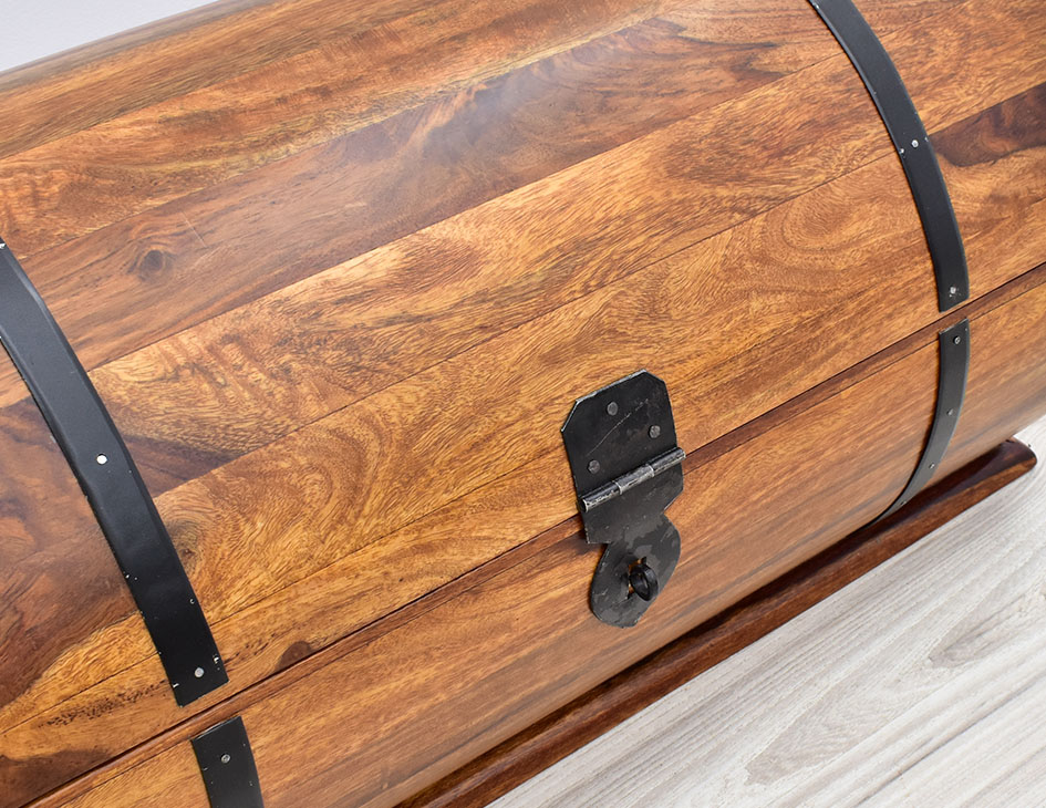 Kufer kolonialny wykonany w Indiach z litego drewna palisandru indyjskiego. Skrzynia wykonana ręcznie, utrzymana w klasycznym stylu kolonialnym.