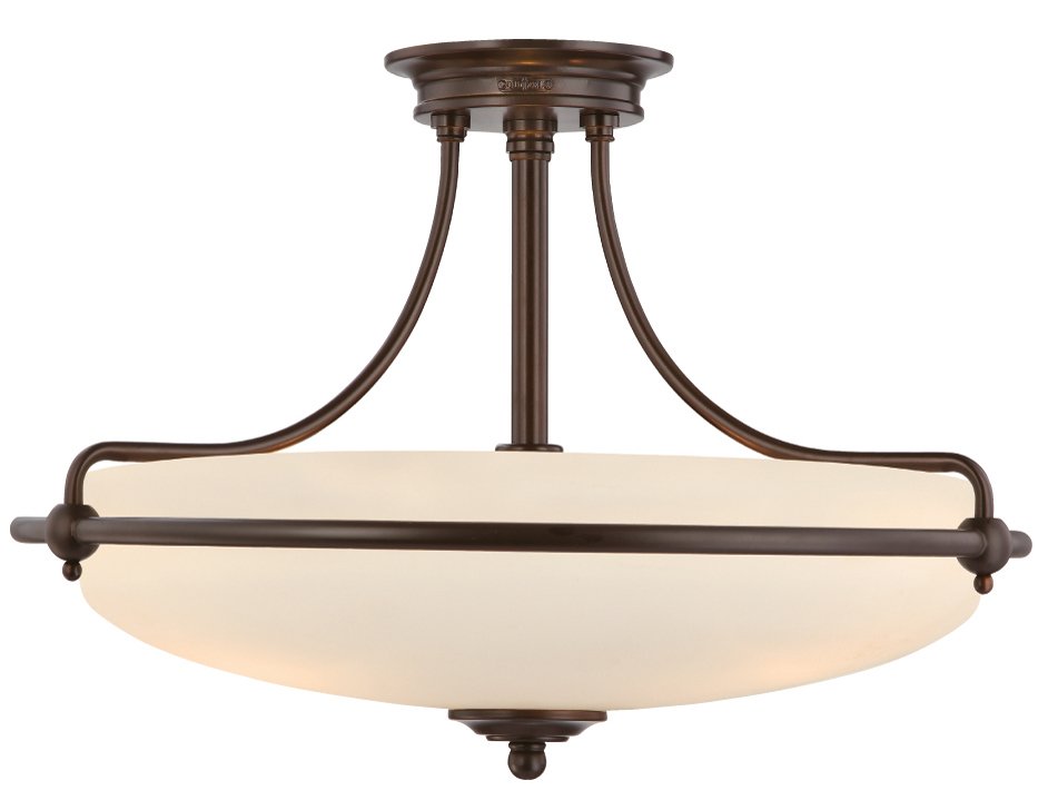 Klasyczna lampa sufitowa z kolekcji Griffin została wykończona w kolorze ciemny brąz. Posiada cztery źródła światła. Obły, mleczny klosz daje efekt rozproszenia. Średnica lampy wynosi 53,3 cm, a wysokość konstrukcji 35,6 cm. Odpowiednia do żarówek o max. mocy 100W każda, gwint E27. Przewidywany czas realizacji ok. 2 tygodnie. W związku z tym, że produkt jest wykonywany i sprowadzany pod indywidualne zamówienie, klientowi nie przysługuje 14-dniowe prawo do odstąpienia od umowy.