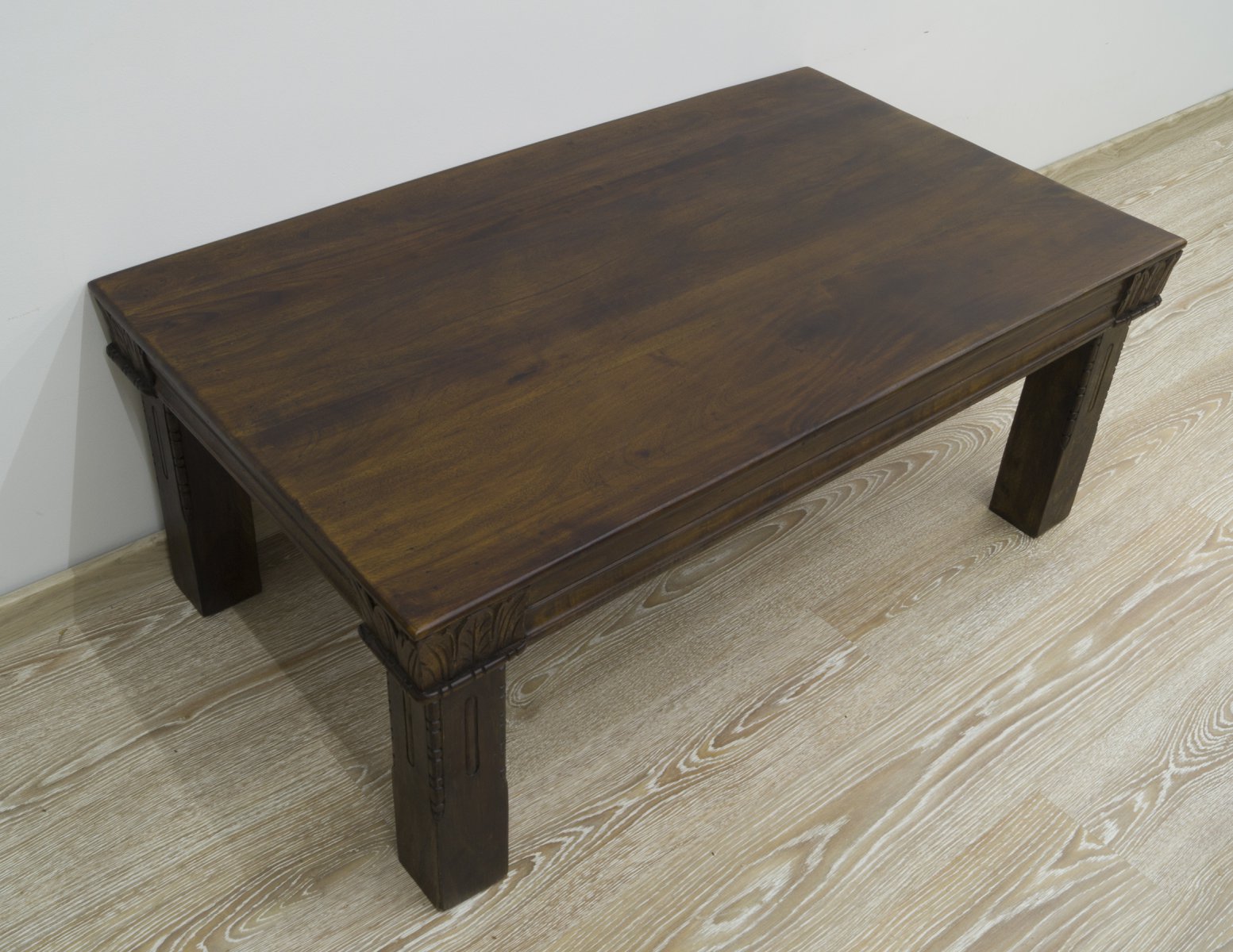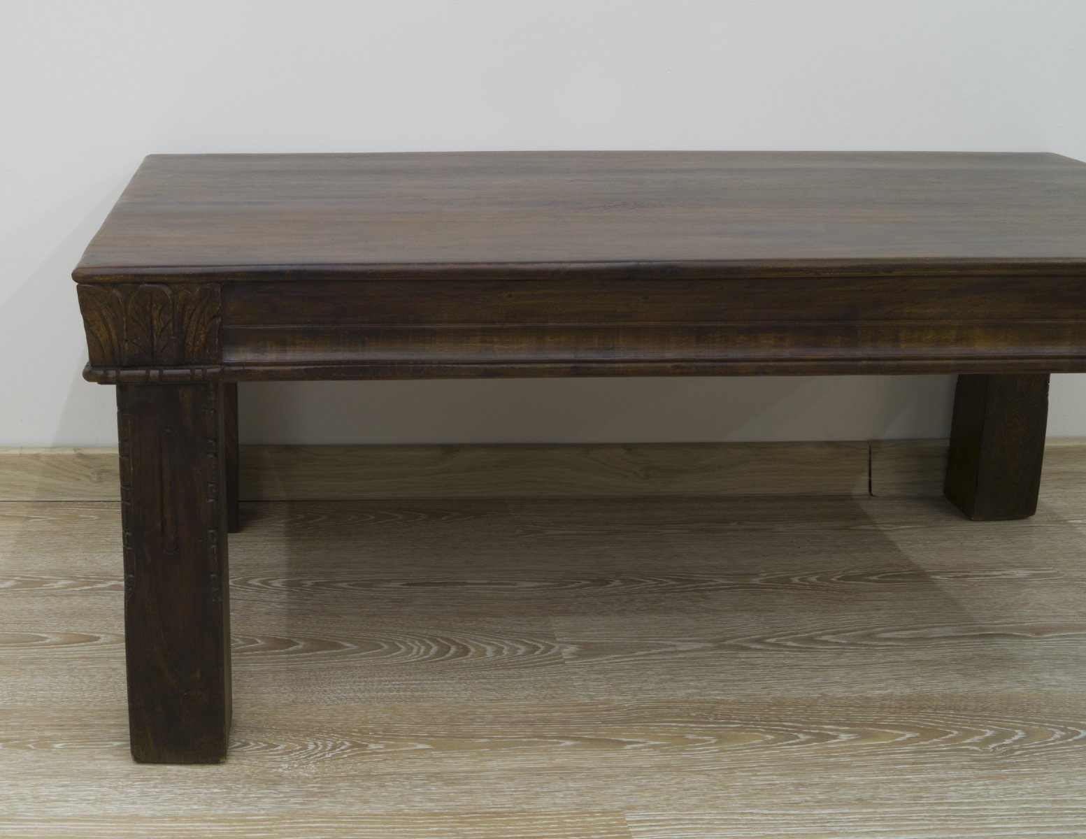 Prostych kształtów ława kolonialna w ciemnym odcieniu brązu. Została wytworzona przez indyjskich rzemieślników z litego drewna akacji indyjskiej. Posiada masywne, rzeźbione nogi.