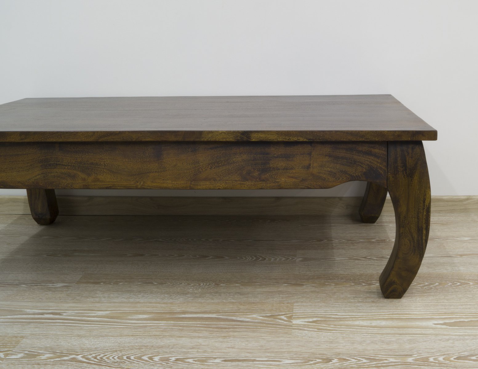 Kolonialna ława ze stylowymi nogami. Cały mebel stworzony został z egzotycznego drewna akacji indyjskiej. Każdy element wykonano z litego drewna, wybarwionego na ciemnobrązowy kolor. Prostokątny blat osadzony został na stylowo giętych nogach. Owa ława wpisze się w każde klasyczne wnętrze.