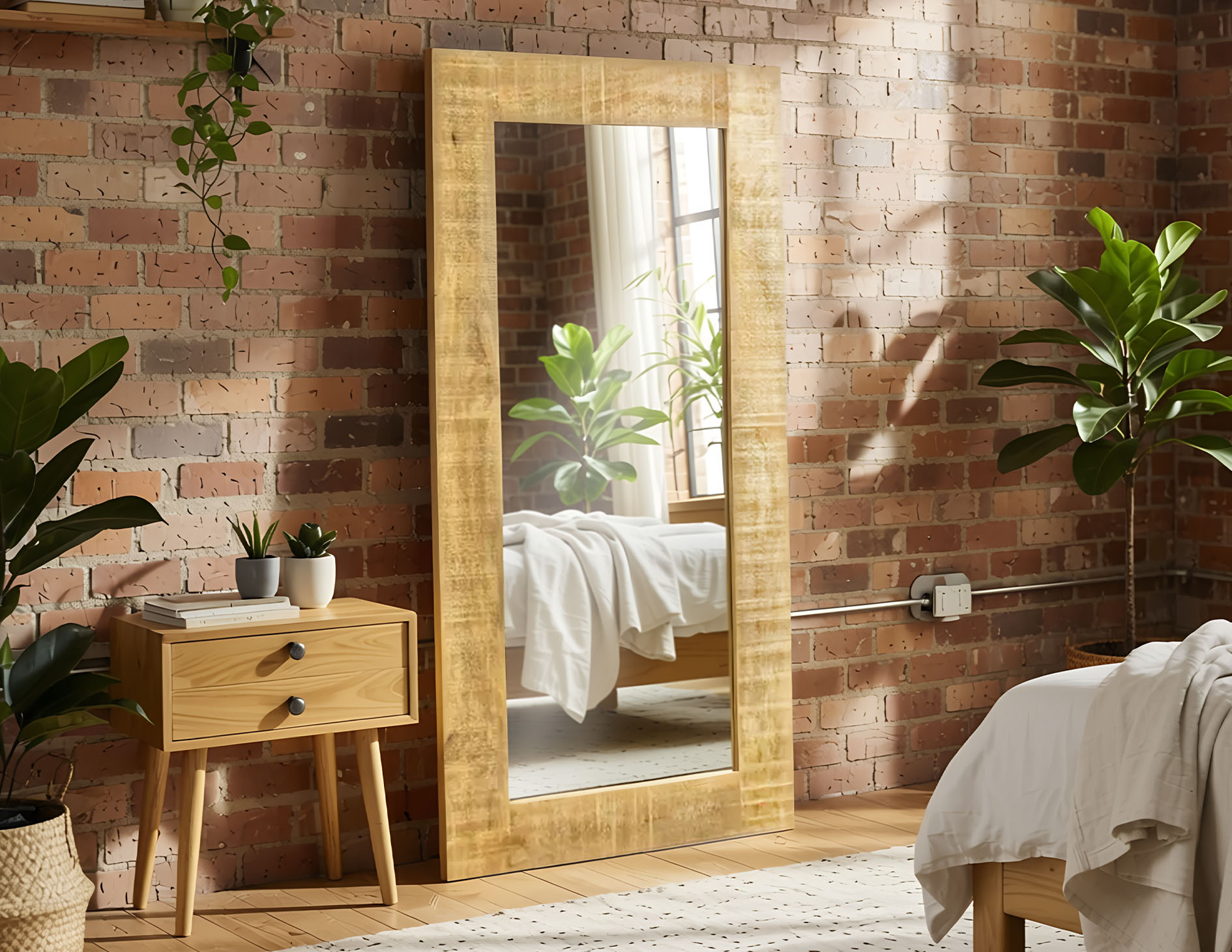 Lustro kolonialne z ramą w naturalnym kolorze drzewa mango. Rama to 100% litego drewna. Lustro utrzymane w stylu bardzo nowoczesnym, eksponujące unikatową strukturę tego egzotycznego drewna.