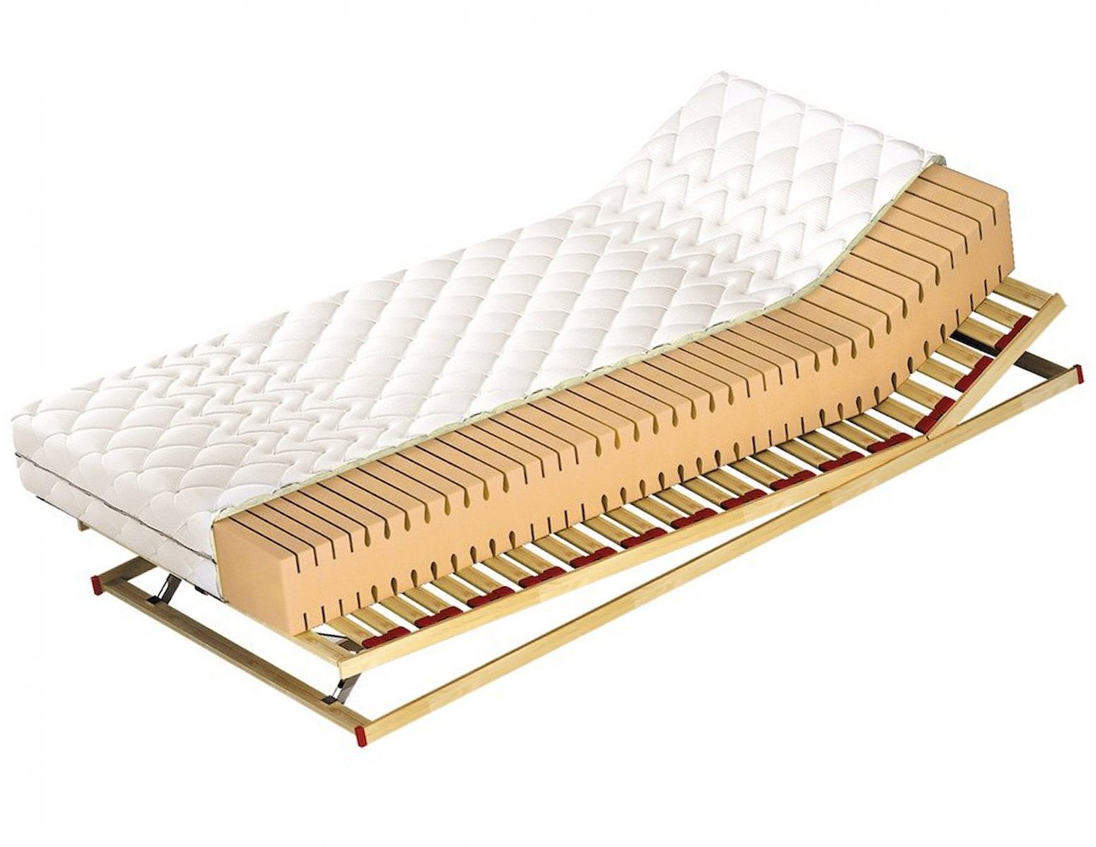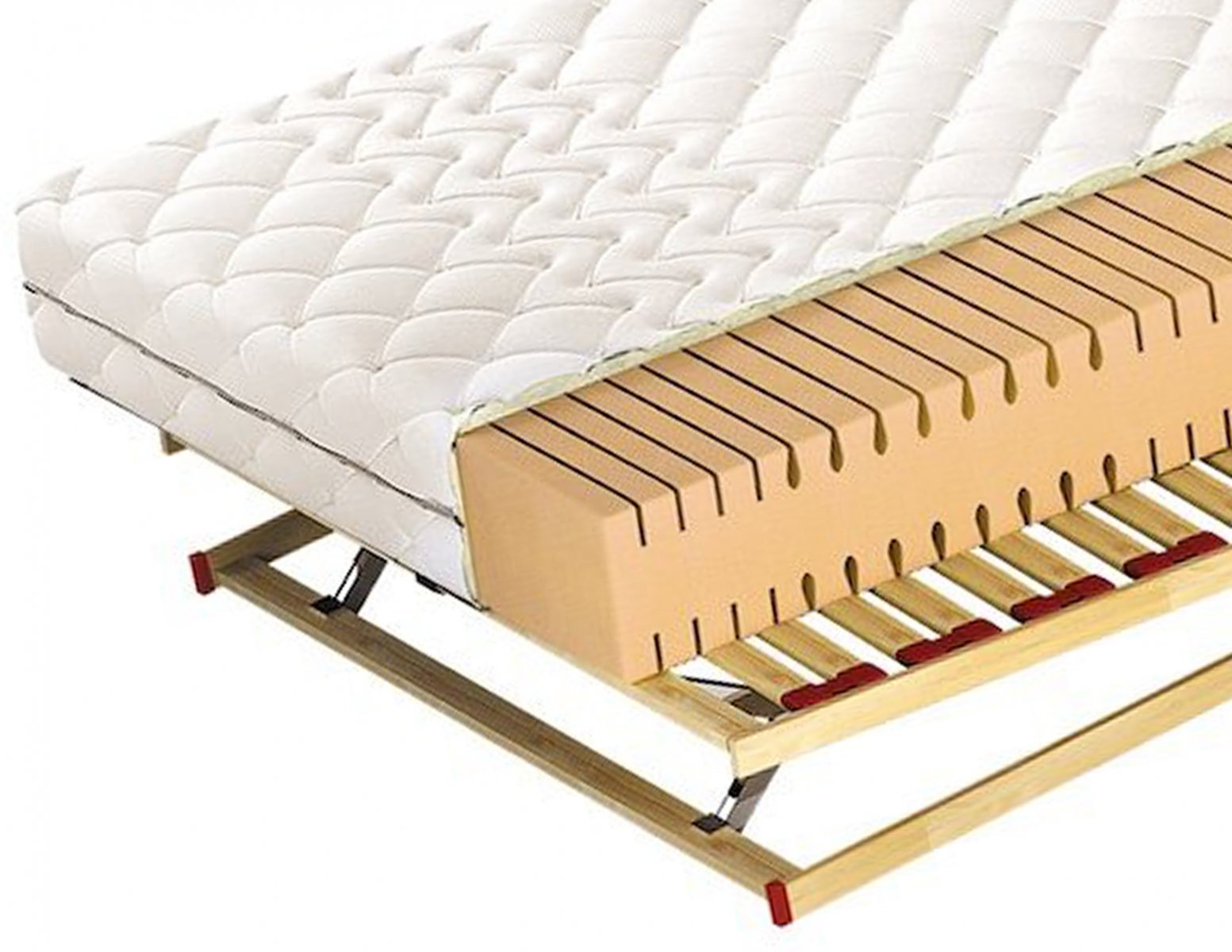 Wkład materaca ARUBA LUX wykonany z 7-polowej pianki wysokoelastycznej Kaltschaum dwustronnie ciętej konturowo dla lepszej wentylacji materaca (wysokość wkładu 18 cm). Wersja H2 przeznaczona dla osób o wadze do 80 kg, wersja H3 powyżej 80 kg.