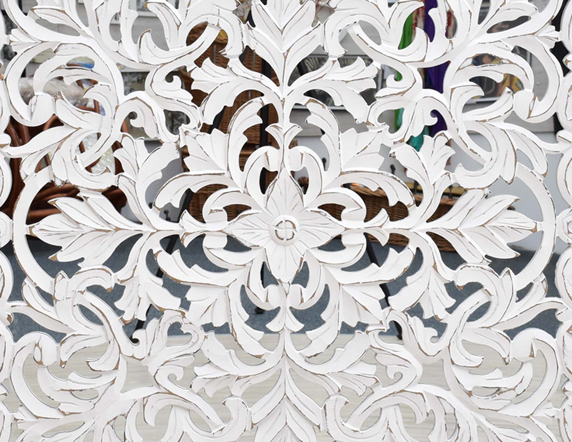 Napisz pierwszą opinię o „Panel ścienny indyjski dekoracyjny Antyk ażurowy z lustrem przecierany”