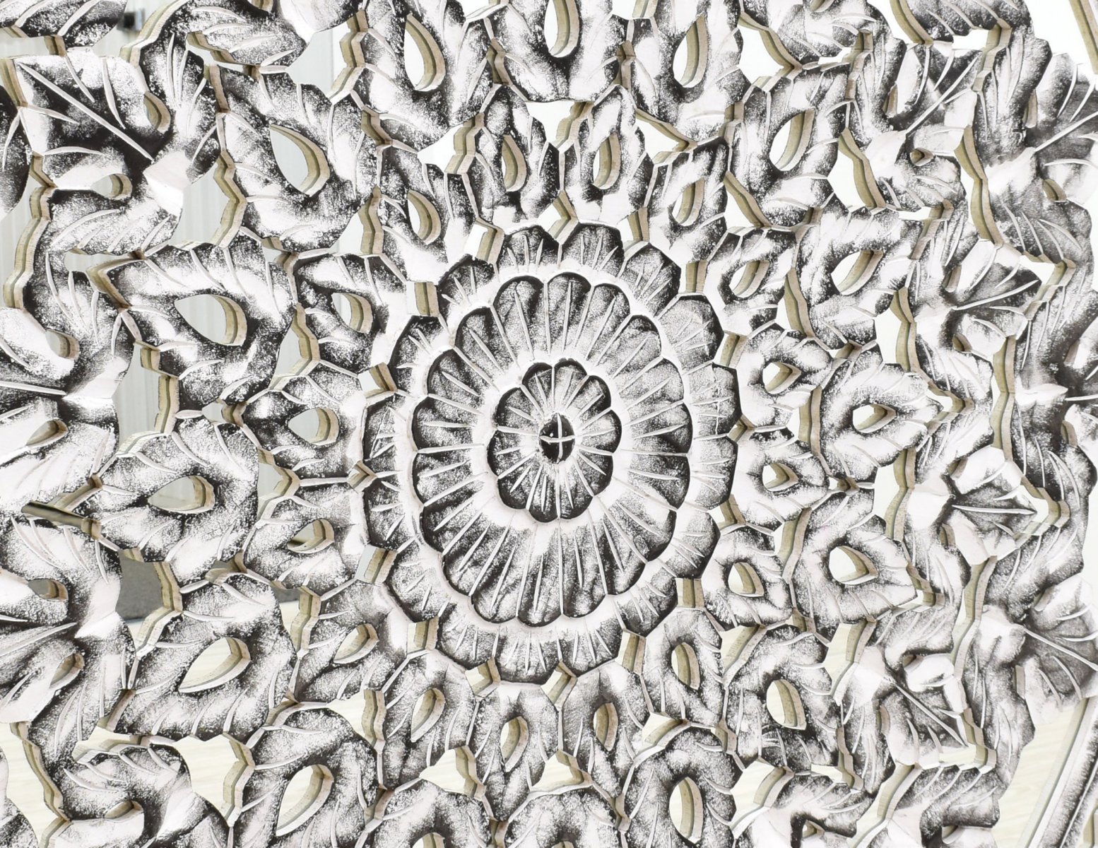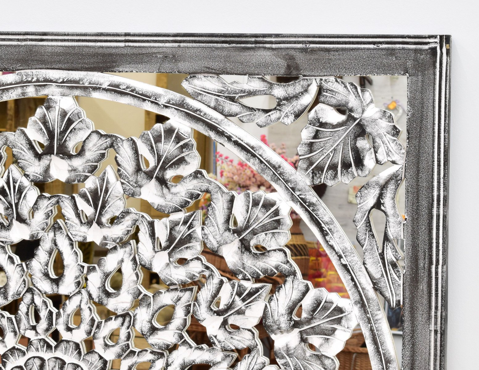 Nietuzinkowy egzotyczny panel ścienny, którego tło stanowi lustro. Panel posiada unikatową ramę i rozetę w jego centralnej części. Do zawieszenia na ścianie służą specjalne, wbudowane uchwyty.