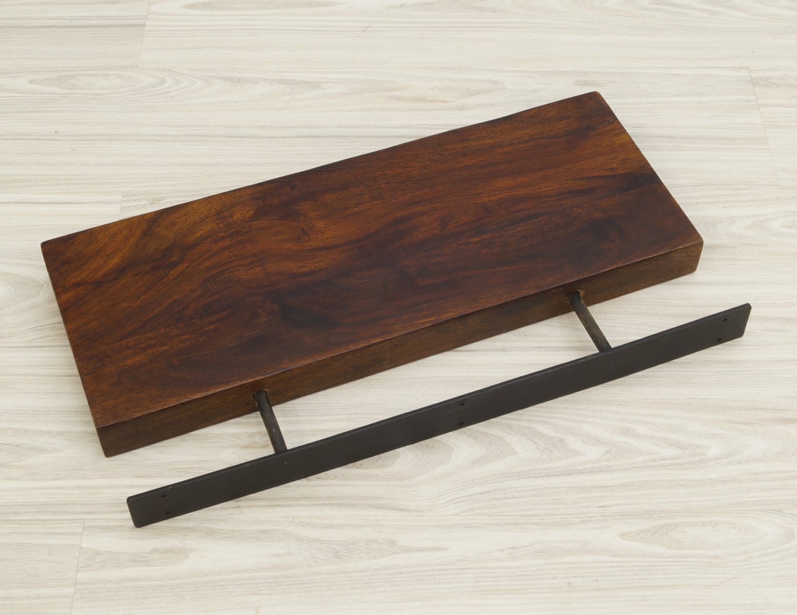 Półka ścienna stworzona w 100% z litego, egzotycznego drewna palisandru indyjskiego wybarwionego na ciemny brąz. Półka ma długość 60cm i posiada metalowy stelaż. Termin realizacji zamówienia złożonego na półki wynosi 30 dni.