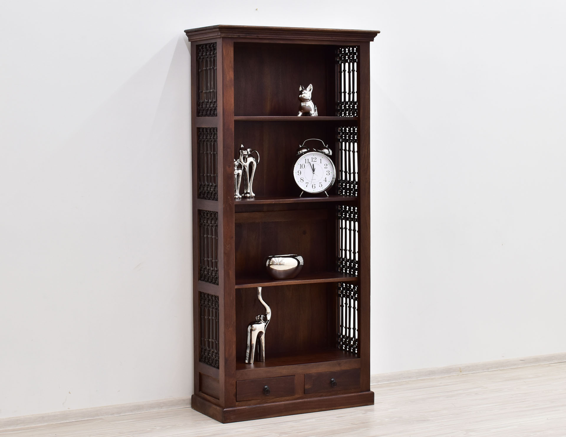 Powiadom o dostępnościRegał kolonialny ręcznie wykonany w Indiach w 100% z litego drewna palisandru indyjskiego.