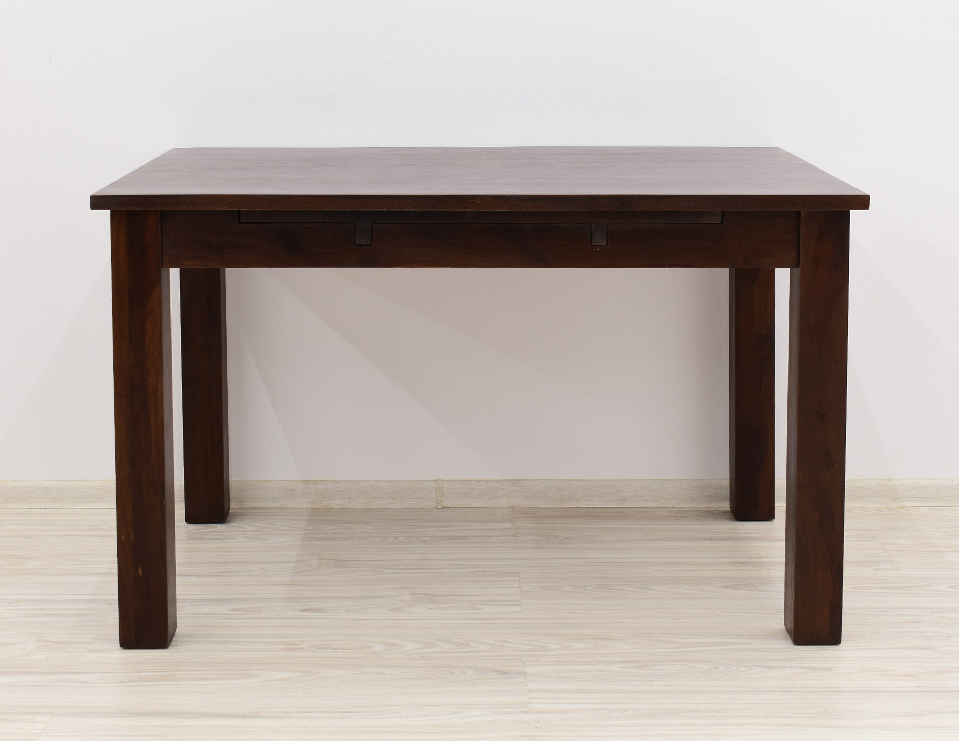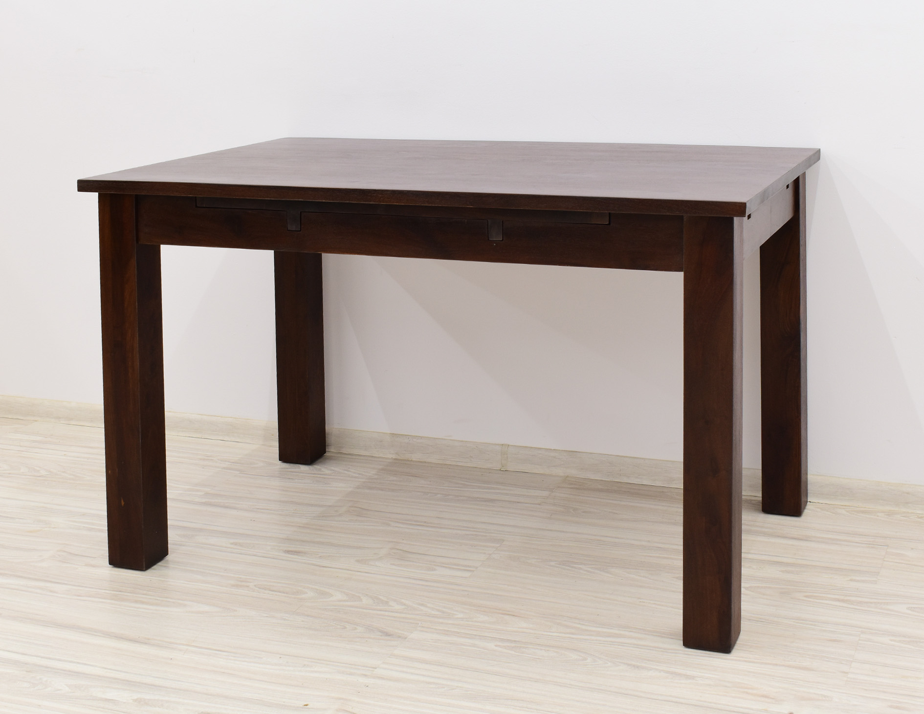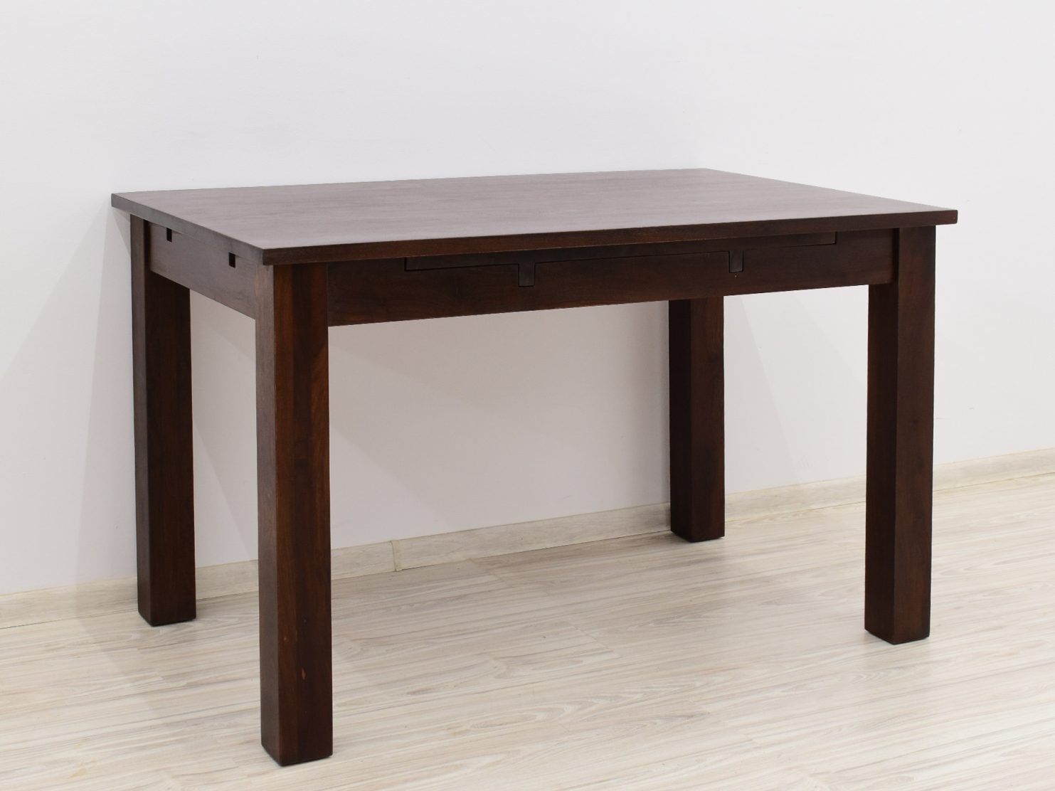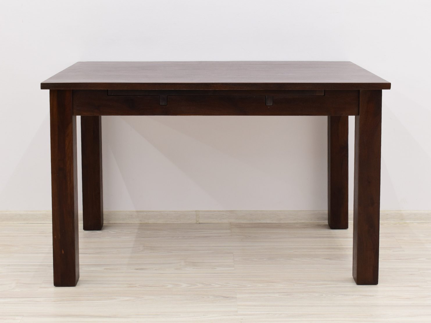 Stół kolonialny został wykonany w 100% z litego drewna palisandru indyjskiego. Stół posiada funkcję rozkładania do większych rozmiarów. Wymiar stołu przed rozłożeniem wynosi 120 cm x 75 cm, natomiast po rozłożeniu 180 cm x 75 cm. Mebel jest wykonany z bardzo trwałego drewna, a jego charakterystyczne usłojenie stwarza każdy mebel niepowtarzalnym.