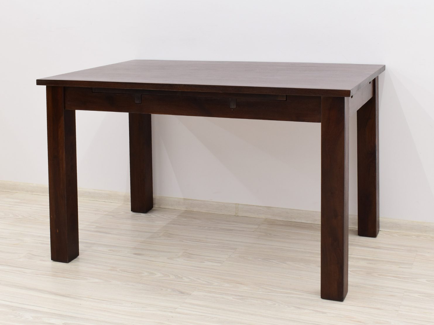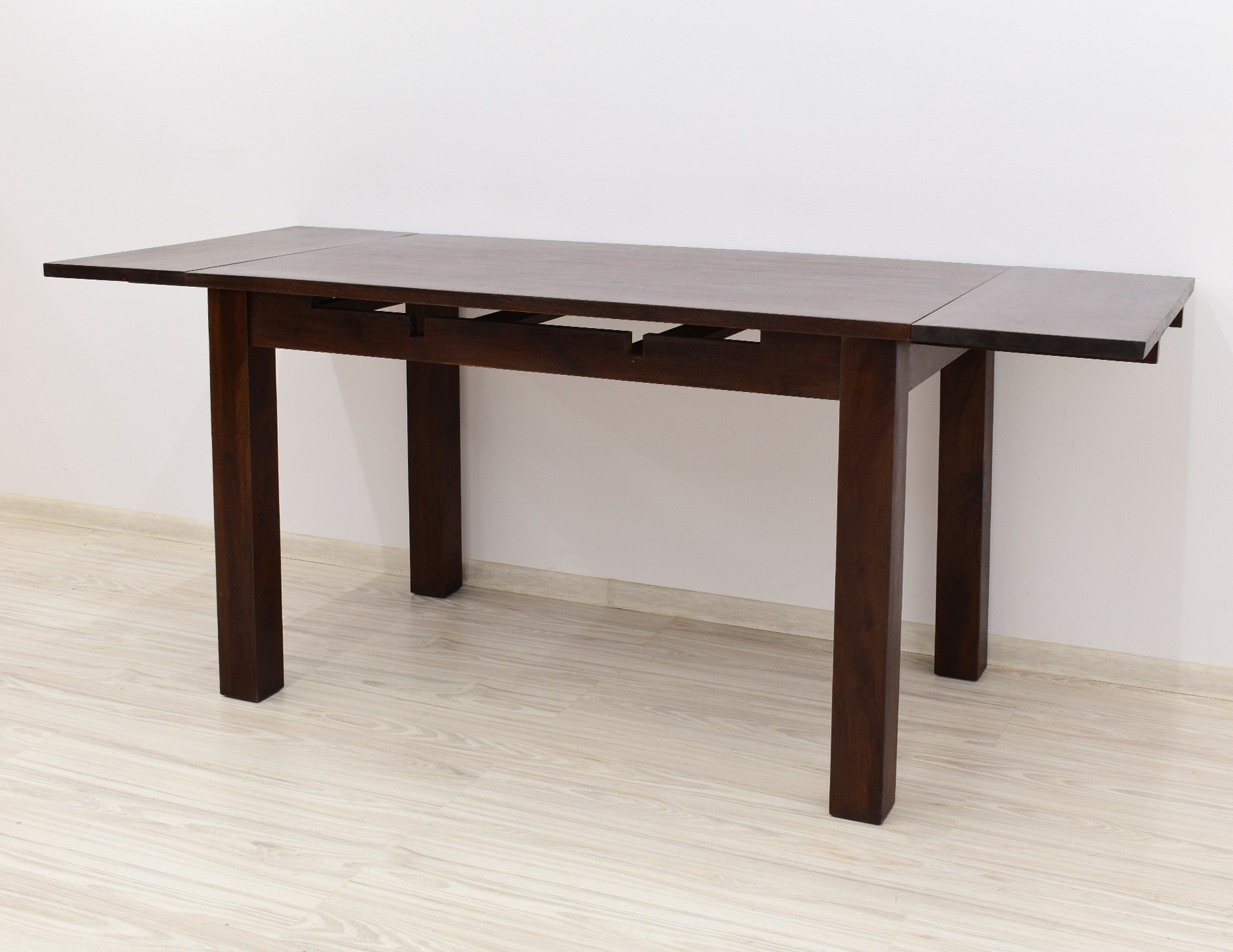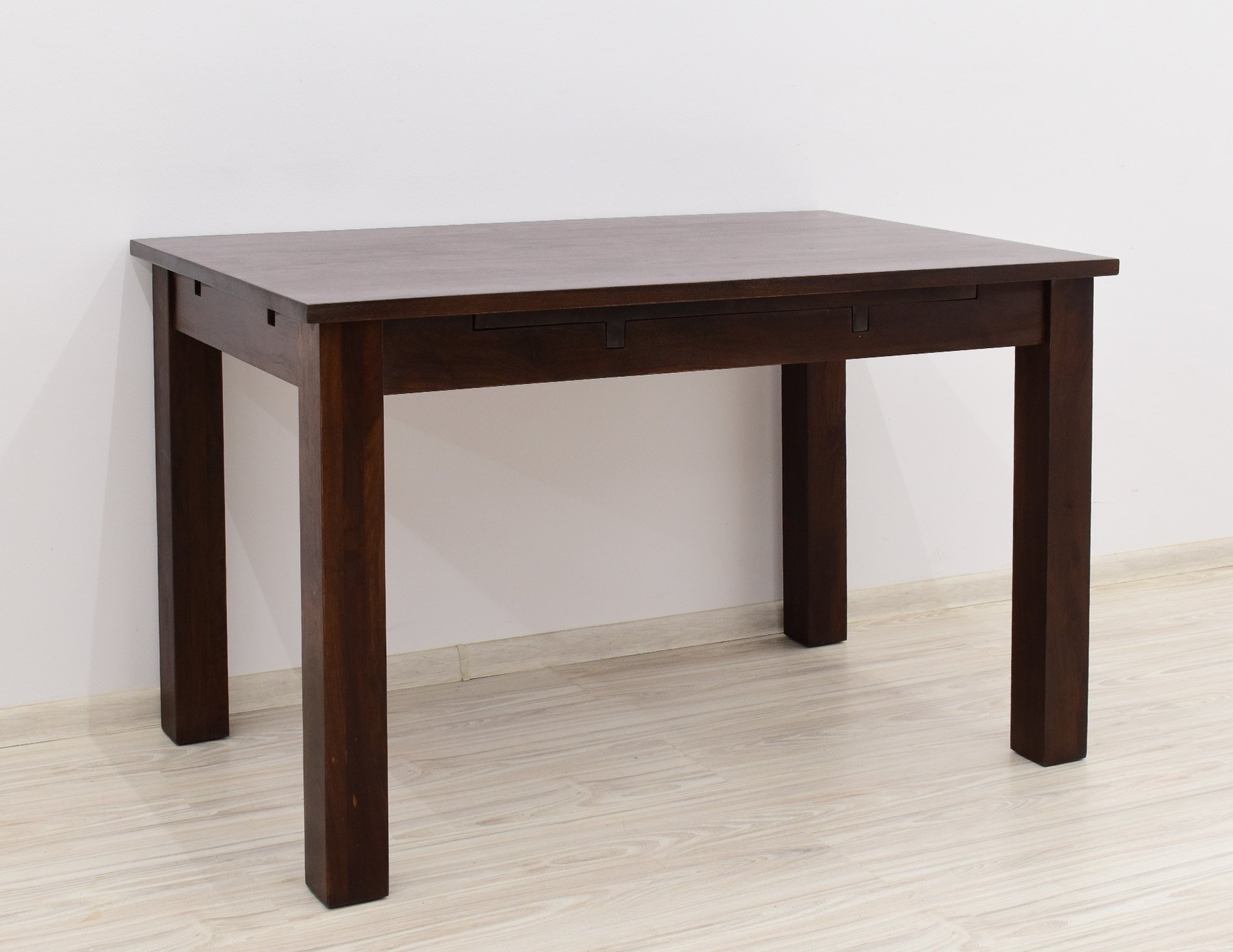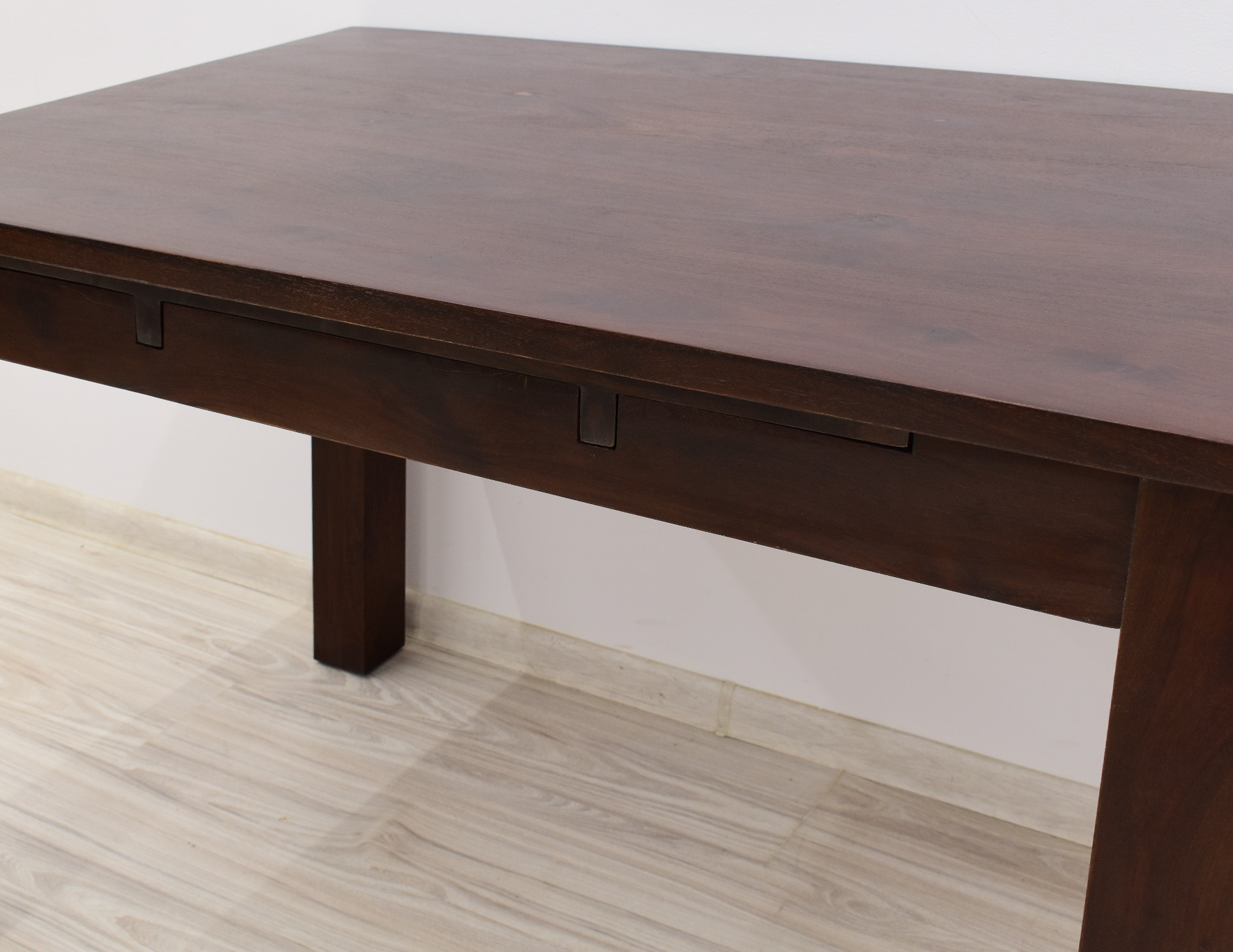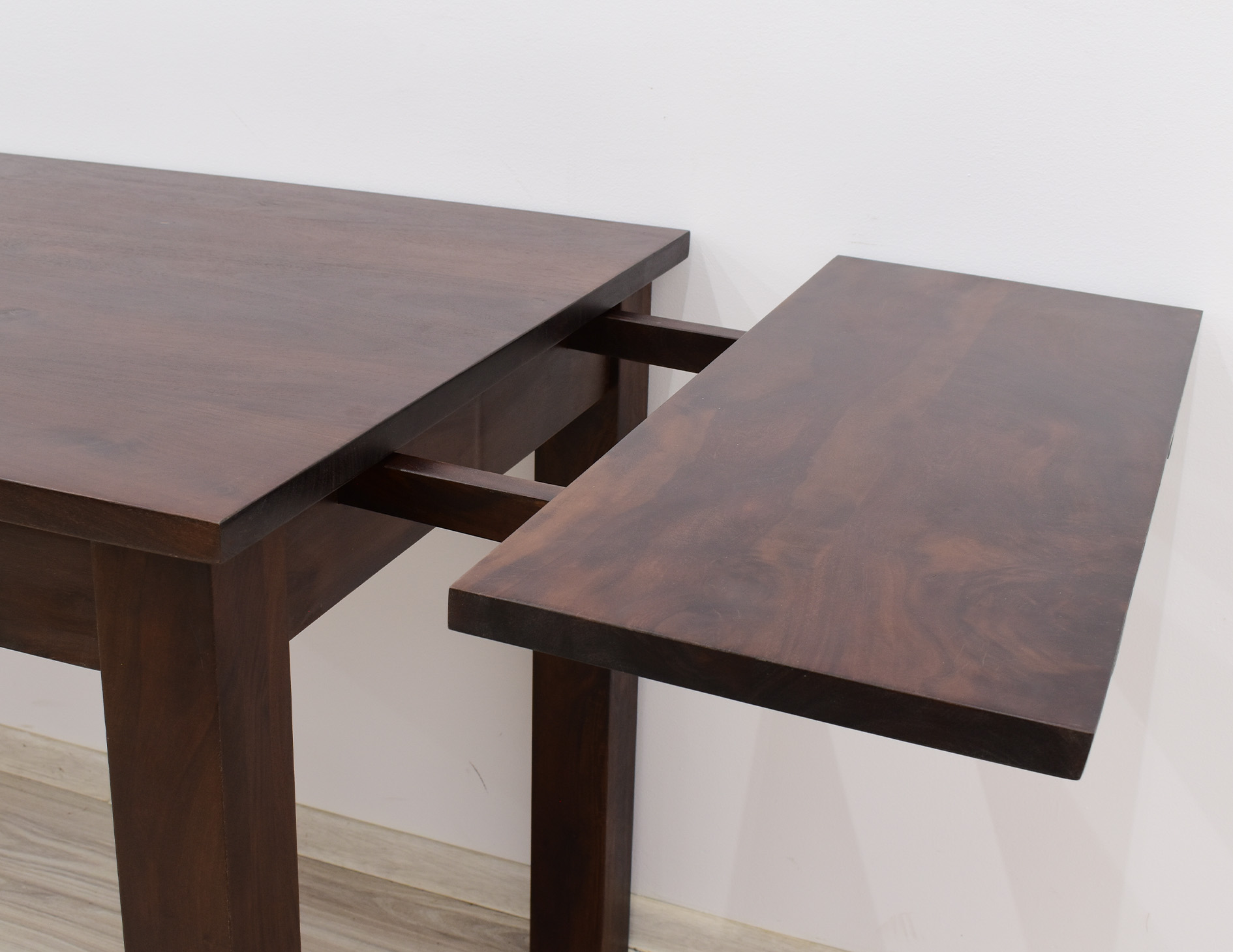 Stół kolonialny został wykonany w 100% z litego drewna palisandru indyjskiego. Stół posiada funkcję rozkładania do większych rozmiarów. Wymiar stołu przed rozłożeniem wynosi 120 cm x 75 cm, natomiast po rozłożeniu 180 cm x 75 cm. Mebel jest wykonany z bardzo trwałego drewna, a jego charakterystyczne usłojenie stwarza każdy mebel niepowtarzalnym.