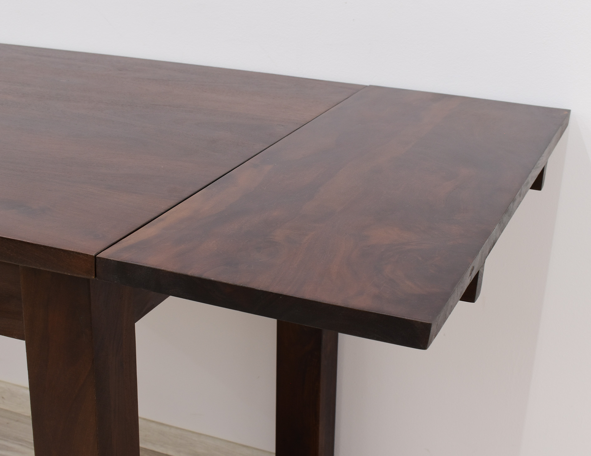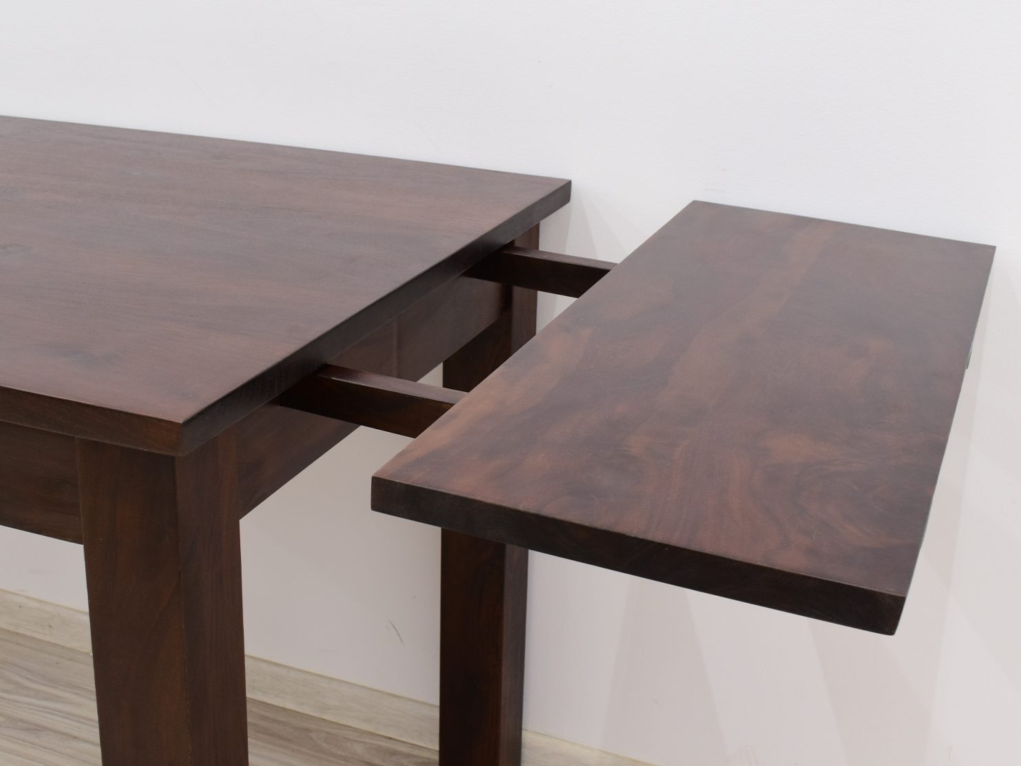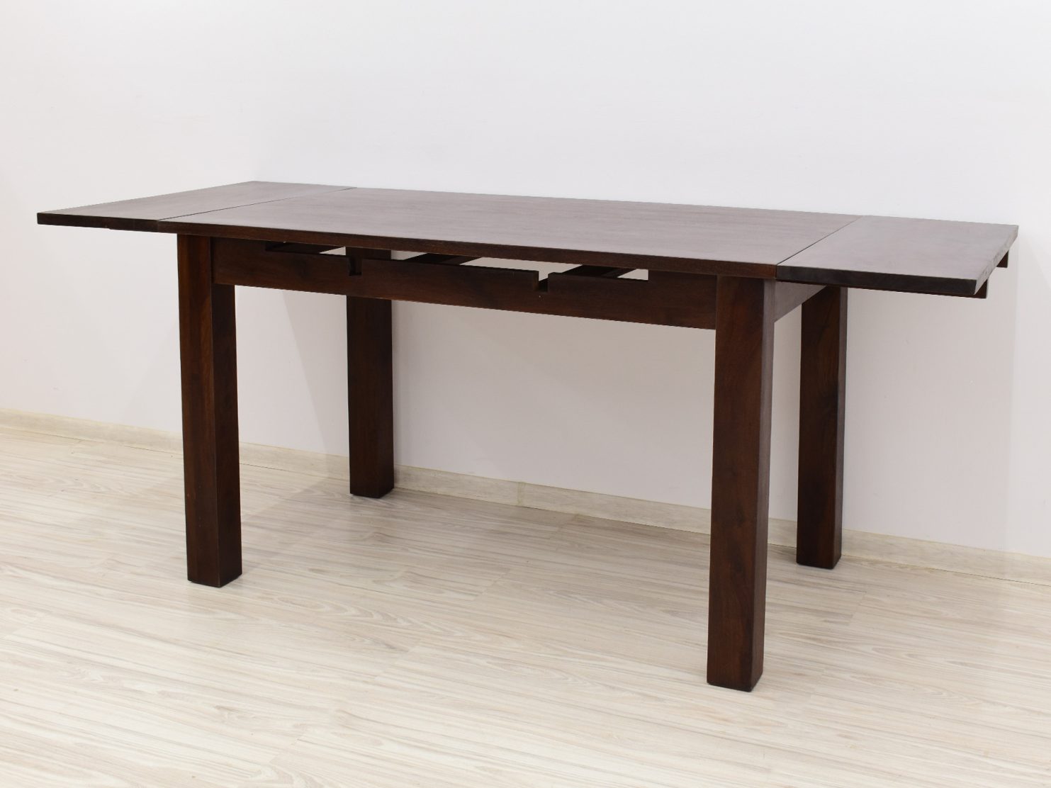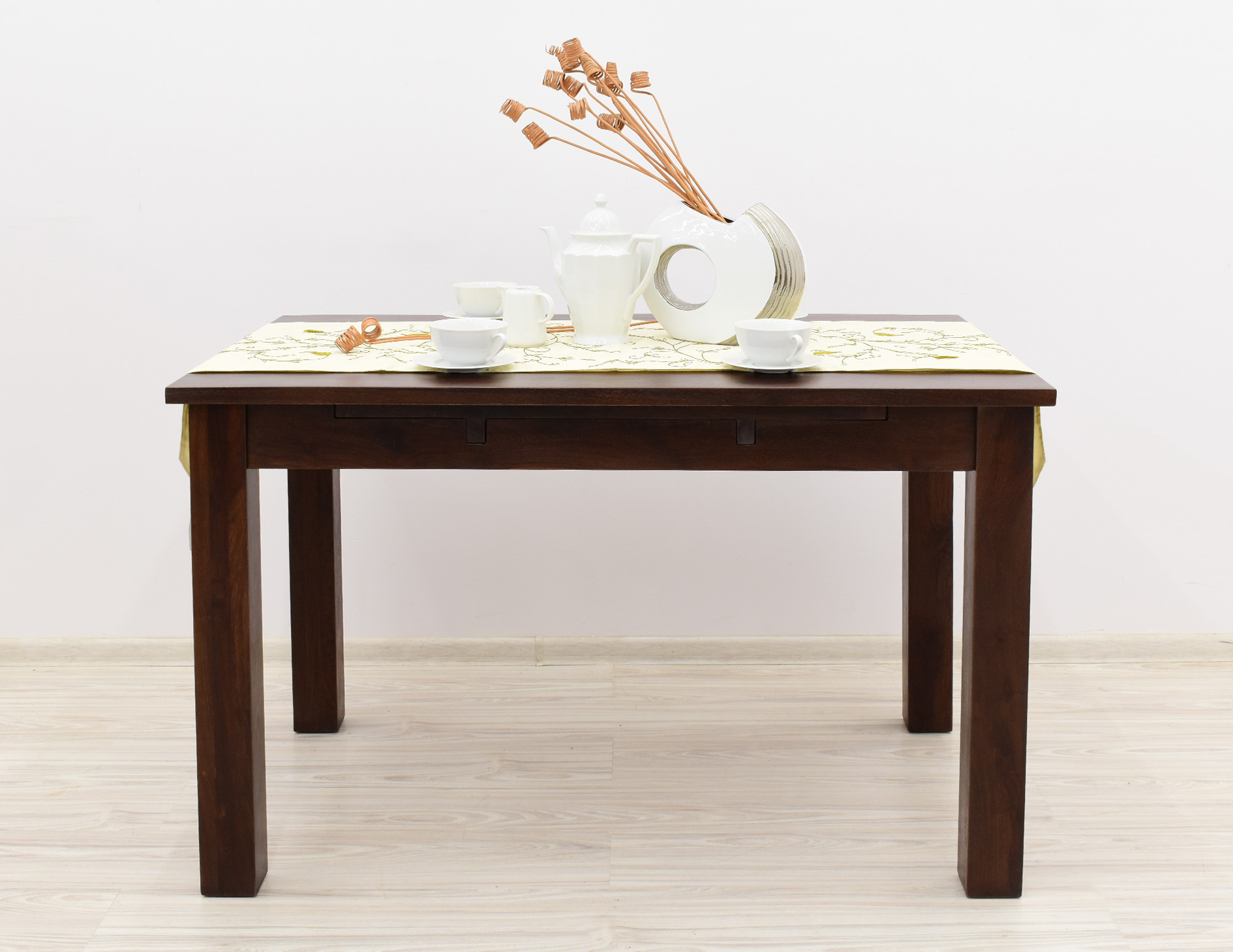 Stół kolonialny został wykonany w 100% z litego drewna palisandru indyjskiego. Stół posiada funkcję rozkładania do większych rozmiarów. Wymiar stołu przed rozłożeniem wynosi 120 cm x 75 cm, natomiast po rozłożeniu 180 cm x 75 cm. Mebel jest wykonany z bardzo trwałego drewna, a jego charakterystyczne usłojenie stwarza każdy mebel niepowtarzalnym.