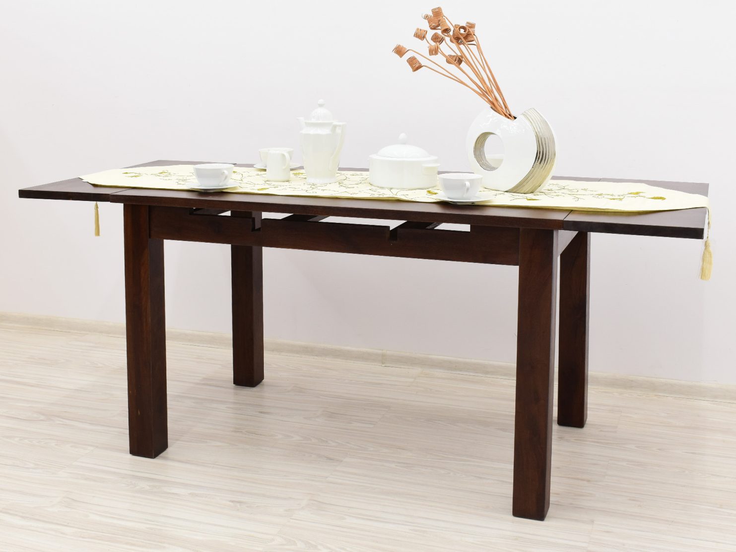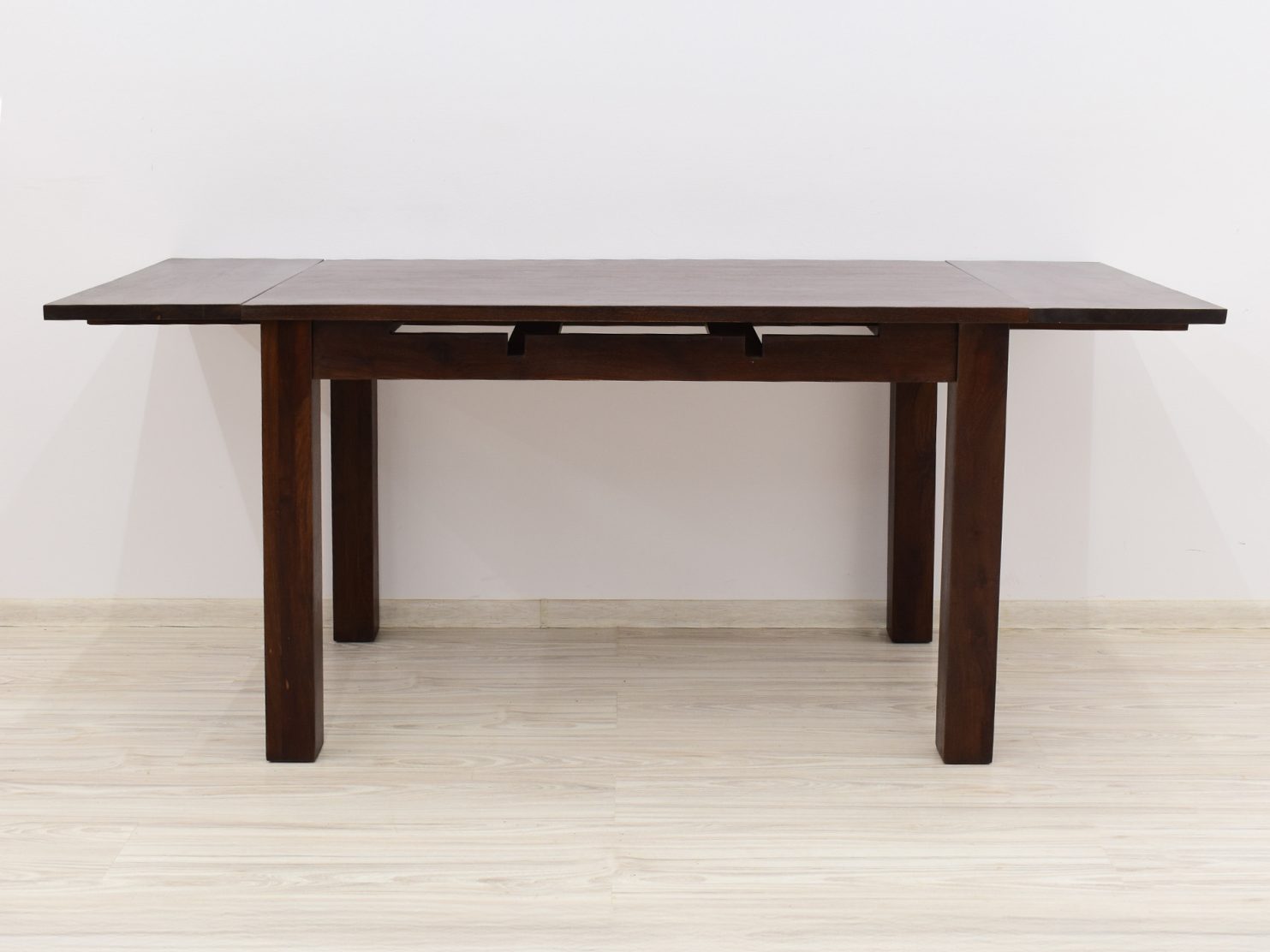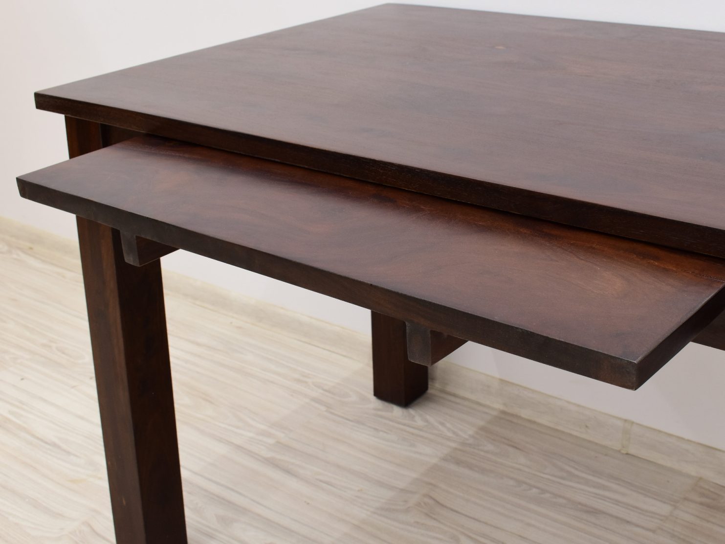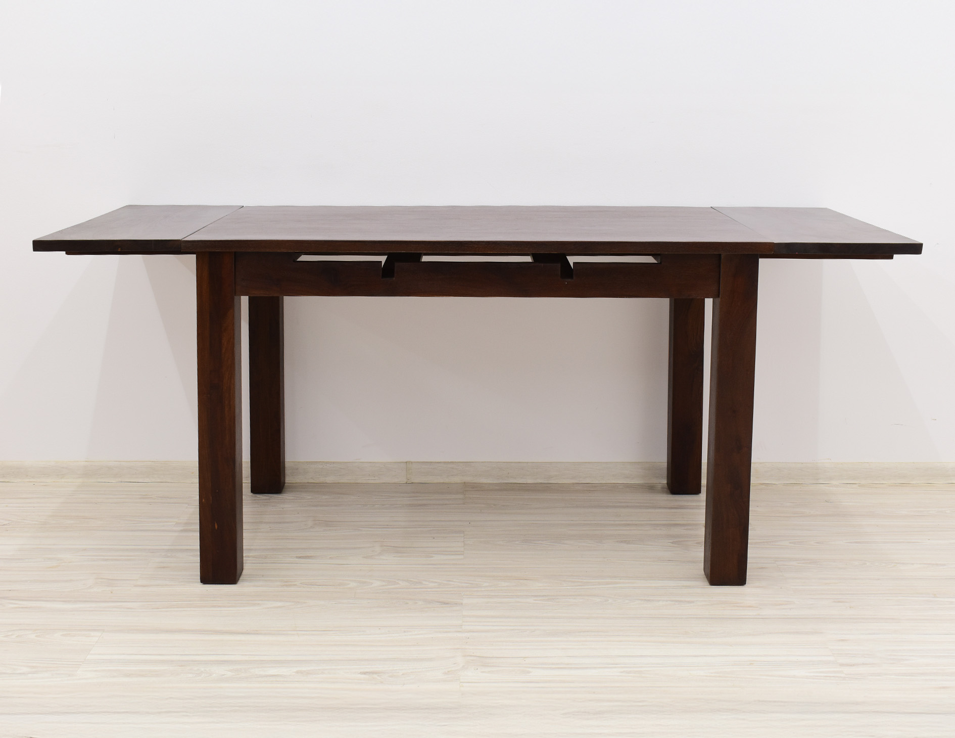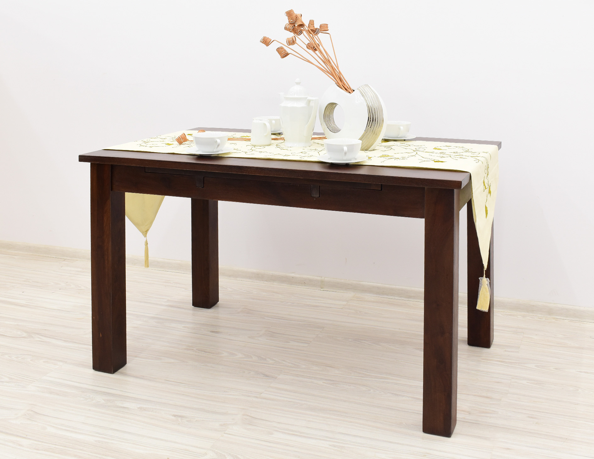 Stół kolonialny został wykonany w 100% z litego drewna palisandru indyjskiego. Stół posiada funkcję rozkładania do większych rozmiarów. Wymiar stołu przed rozłożeniem wynosi 120 cm x 75 cm, natomiast po rozłożeniu 180 cm x 75 cm. Mebel jest wykonany z bardzo trwałego drewna, a jego charakterystyczne usłojenie stwarza każdy mebel niepowtarzalnym.