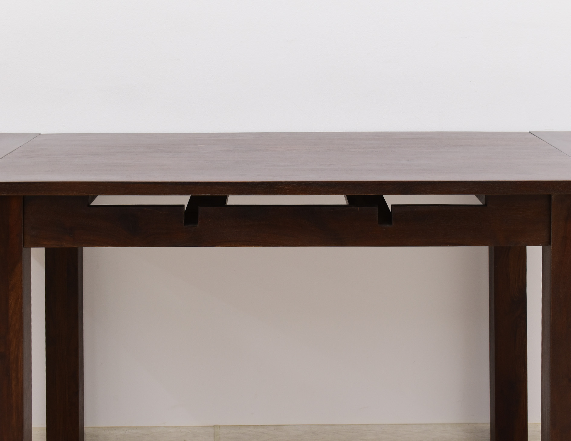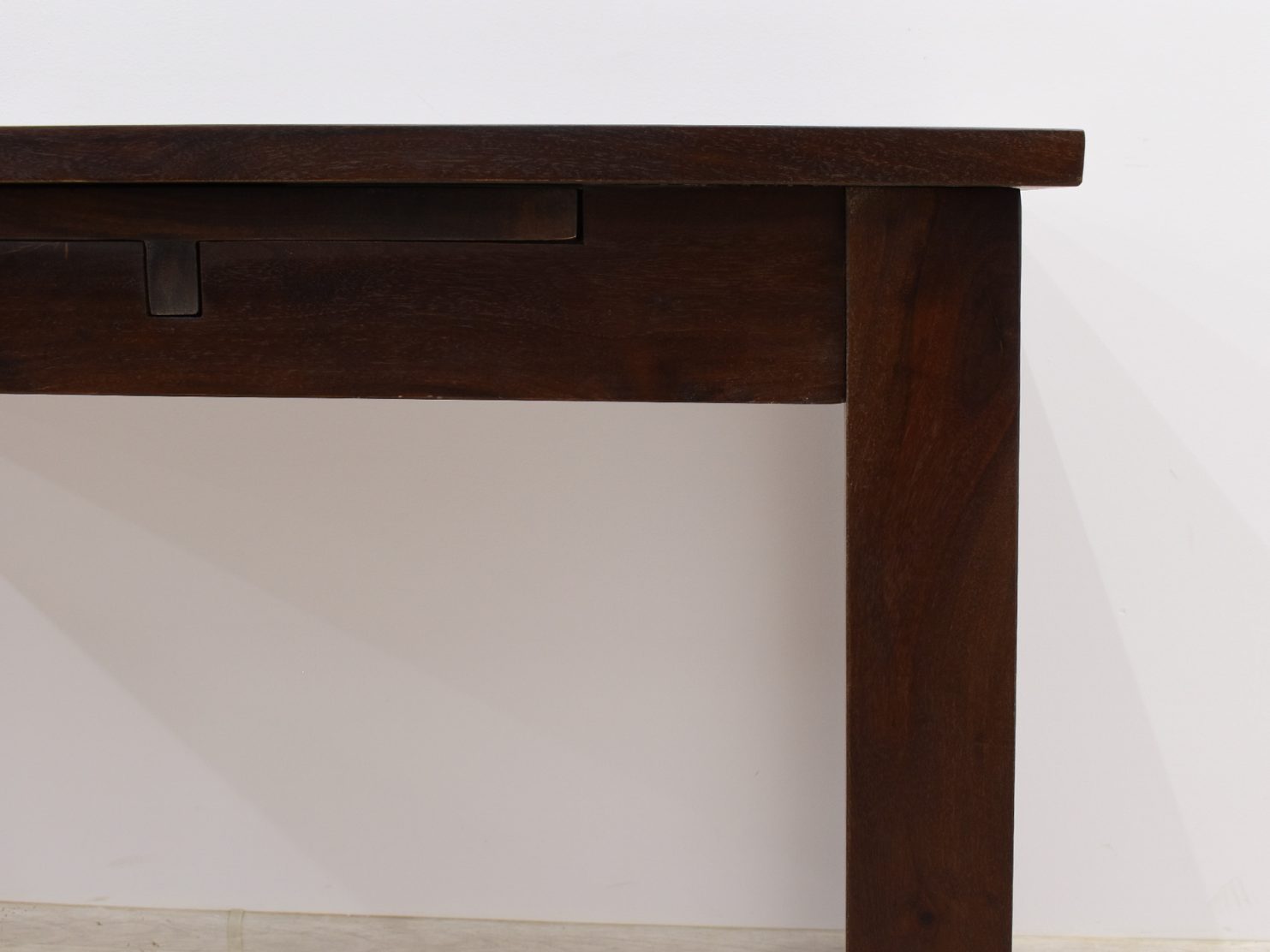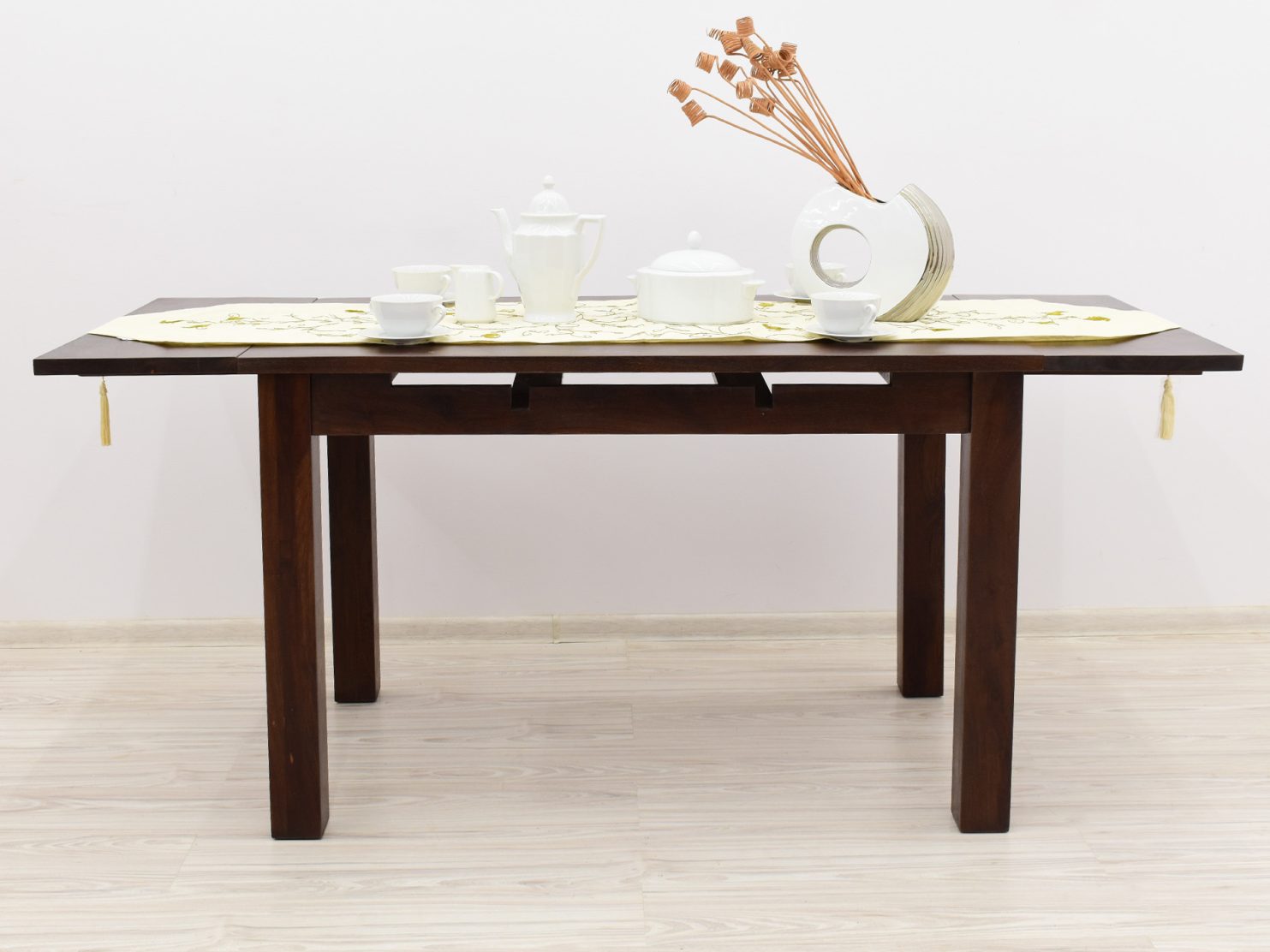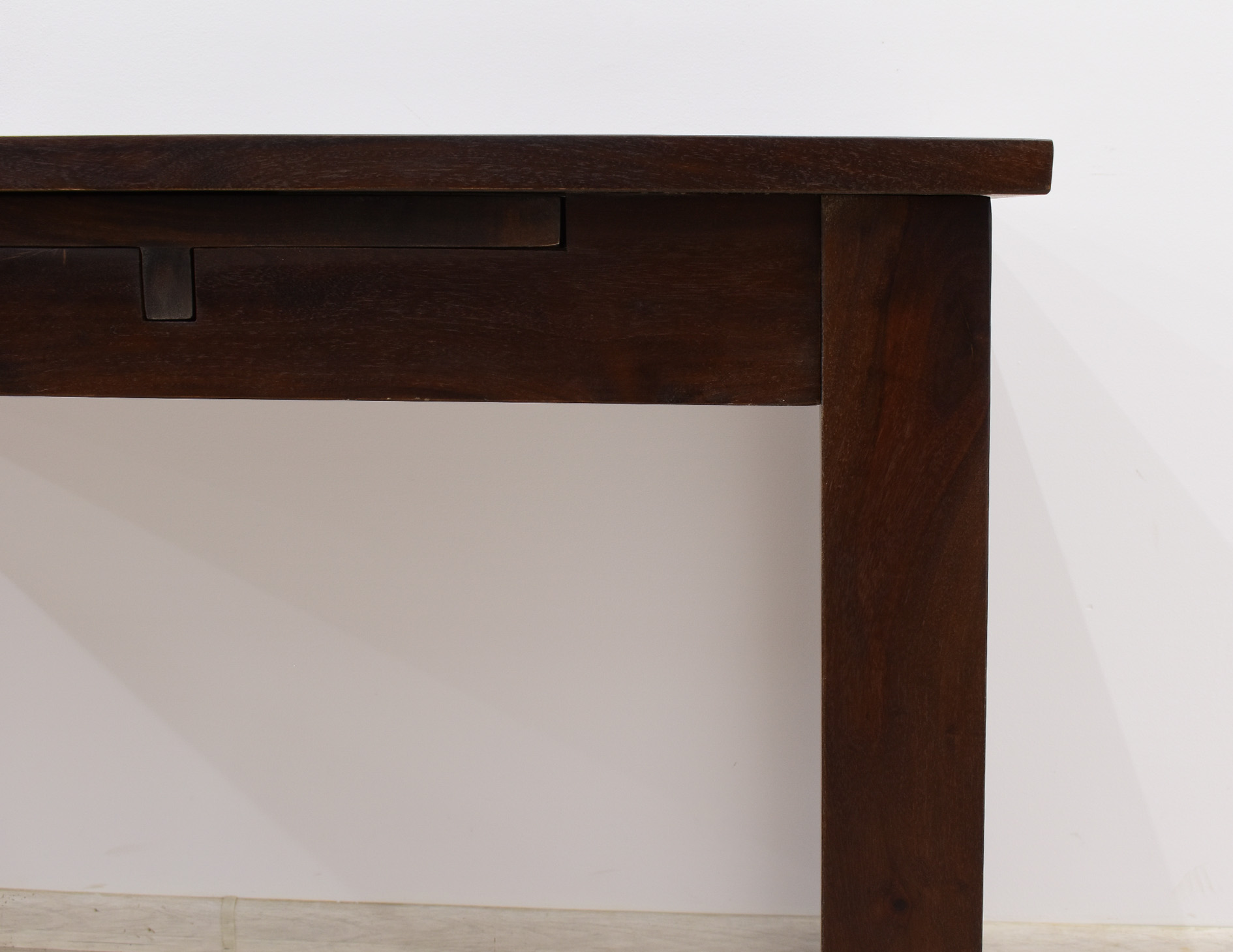 Stół kolonialny został wykonany w 100% z litego drewna palisandru indyjskiego. Stół posiada funkcję rozkładania do większych rozmiarów. Wymiar stołu przed rozłożeniem wynosi 120 cm x 75 cm, natomiast po rozłożeniu 180 cm x 75 cm. Mebel jest wykonany z bardzo trwałego drewna, a jego charakterystyczne usłojenie stwarza każdy mebel niepowtarzalnym.