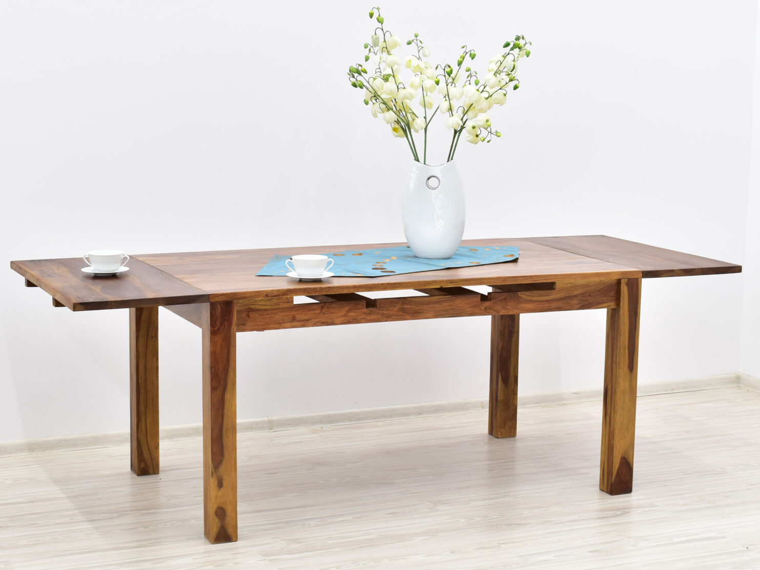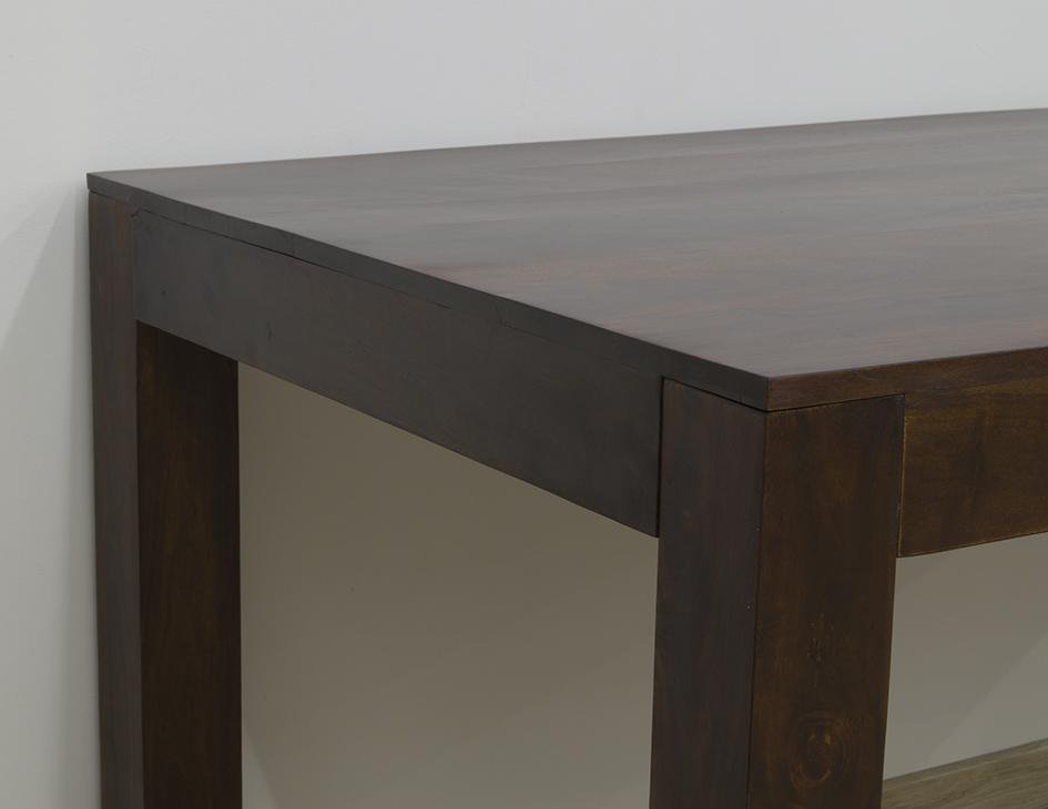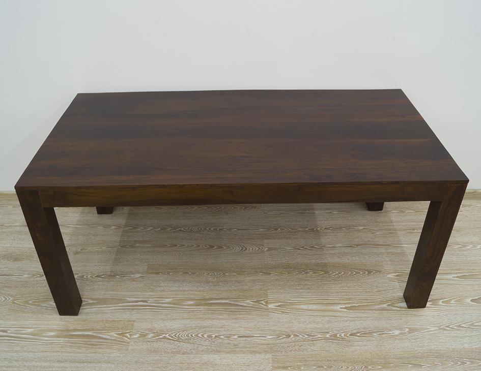 Masywny, dużych rozmiarów stół stworzony w 100% z litego drewna palisandru indyjskiego. Cała konstrukcja mebla powstała w 100% z litego drewna palisandru indyjskiego w kolorze ciemny brąz.