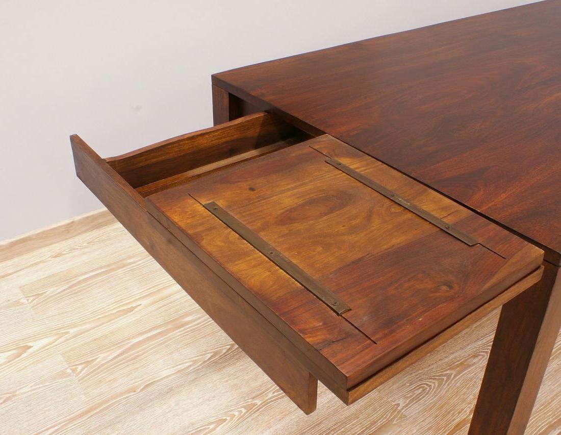 Długi na dwa metry stół kolonialny, stworzony ze 100%-ego litego drewna palisandru indyjskiego. Stół posiada funkcję rozłożenia przy pomocy dostawek do 290cm na długość.