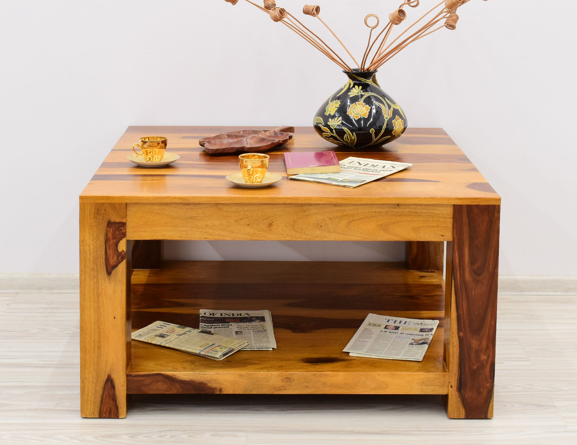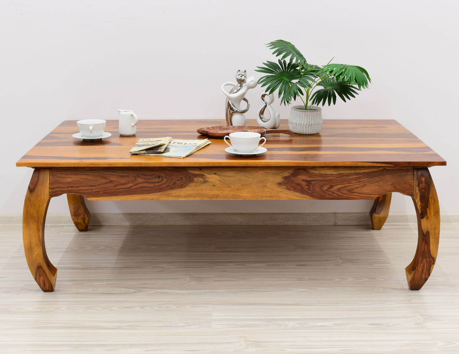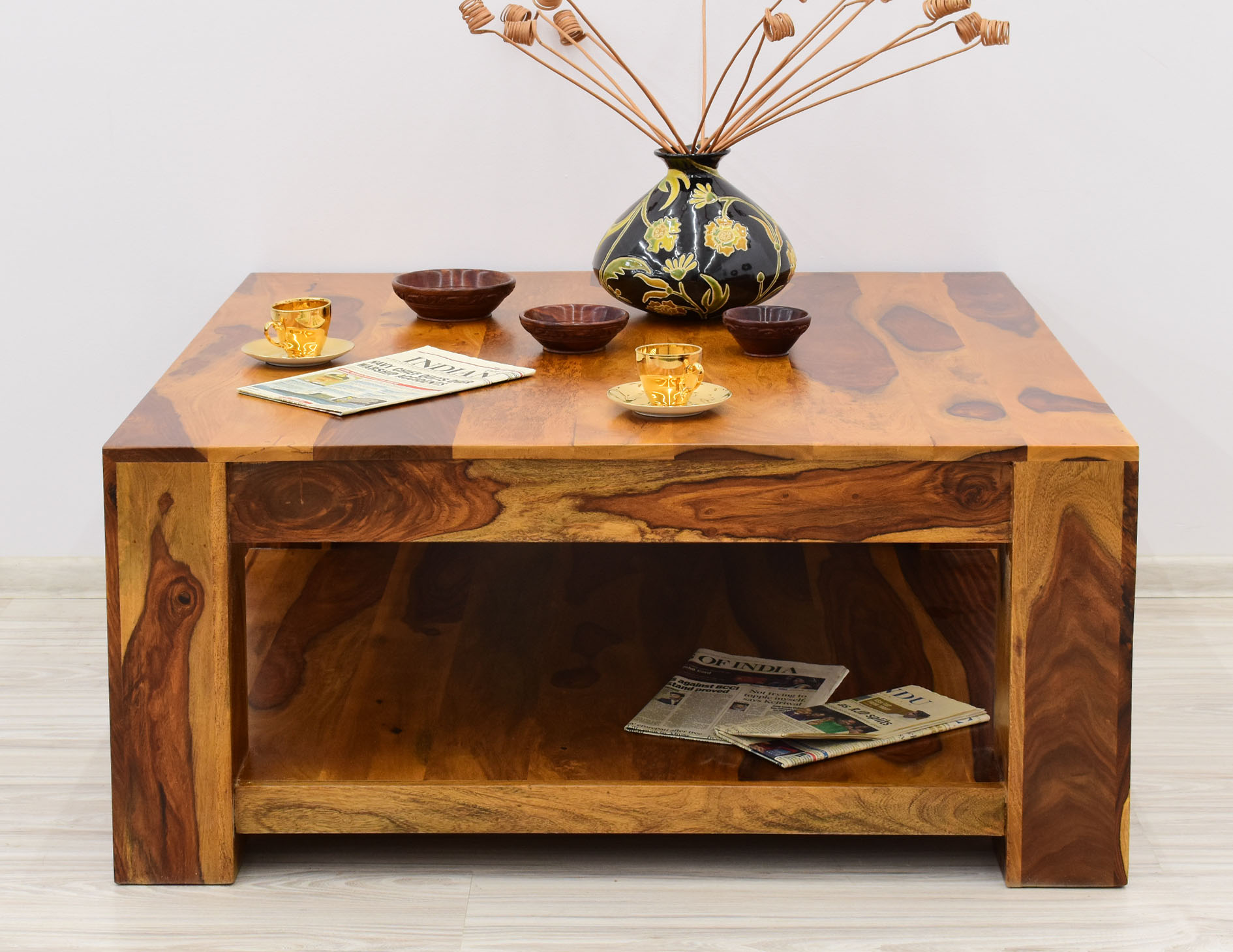 Dużych rozmiarów stolik kawowy z kwadratowym blatem o boku 100cm. Jego prosta forma i widoczne oleiste usłojenie drewna palisandru pozwoliło stworzyć niepowtarzalny mebel w stylu nowoczesnym.