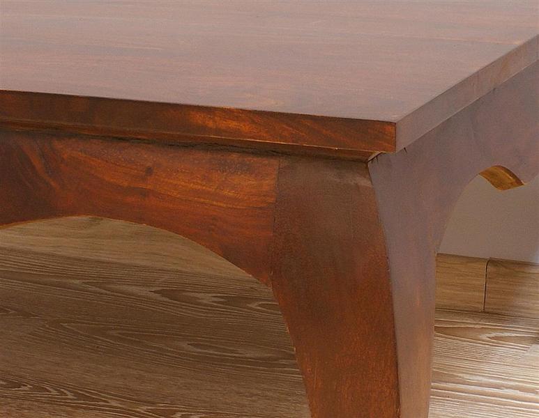 Stolik kawowy kolonialny stworzony w Indiach z niezwykle trwałego litego drewna palisandru indyjskiego. Jest to w 100% lite drewno, którego piękne słoje doskonale się prezentują na blacie stolika oraz jego stylowych, wygiętych nogach. Ława będzie egzotyczną ozdobą każdego aneksu wypoczynkowego urządzonego nie tylko w klasycznym stylu. Dodając ten stolik do swojego wnętrza, wzbogacisz je nie tylko o praktyczny element, ale także o piękno i wyjątkowość ręcznie wykonanego mebla.