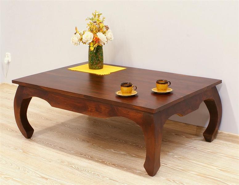 Stolik kawowy palisander indyjski z giętymi nogami w stylu opium