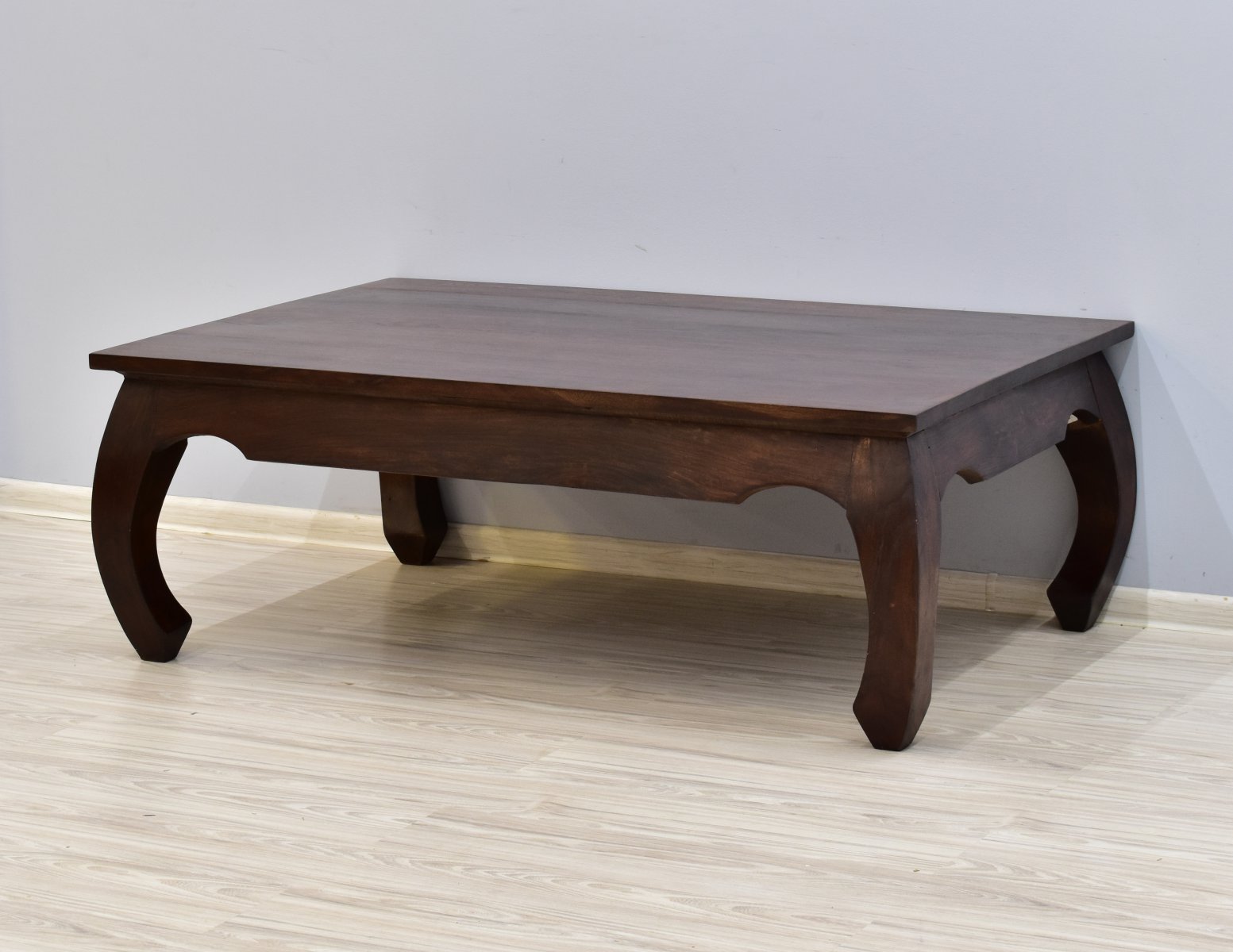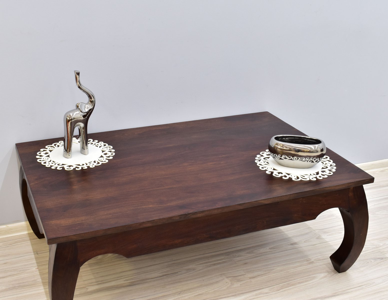Stolik kawowy kolonialny stworzony w Indiach z niezwykle trwałego ciemnego drewna palisandru indyjskiego. Jest to w 100% lite drewno, którego piękne słoje doskonale się prezentują na blacie stolika oraz jego stylowych, wygiętych nogach. Ława została wybarwiona na odcień ciemnego brązu. Będzie egzotyczną ozdobą każdego aneksu wypoczynkowego urządzonego nie tylko w klasycznym stylu. Dodając ten stolik do swojego wnętrza, wzbogacisz je nie tylko o praktyczny element, ale także o piękno i wyjątkowość ręcznie wykonanego mebla. Stolik kawowy ciemny brąz z litego drewna to nie tylko mebel – to kawałek historii i tradycji Indii niosące piękno do Twojego domu.