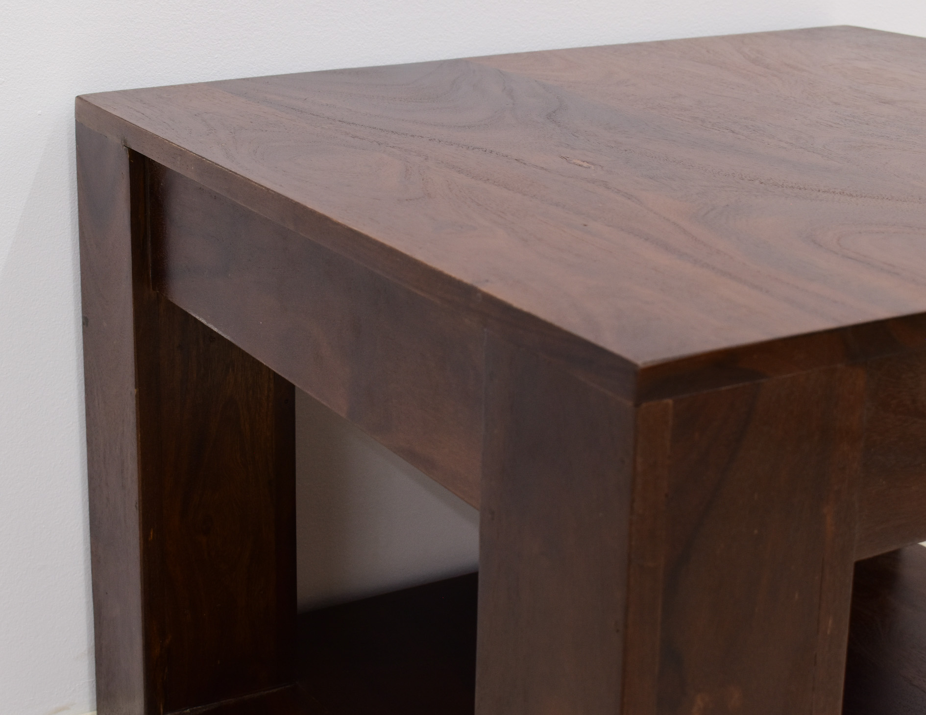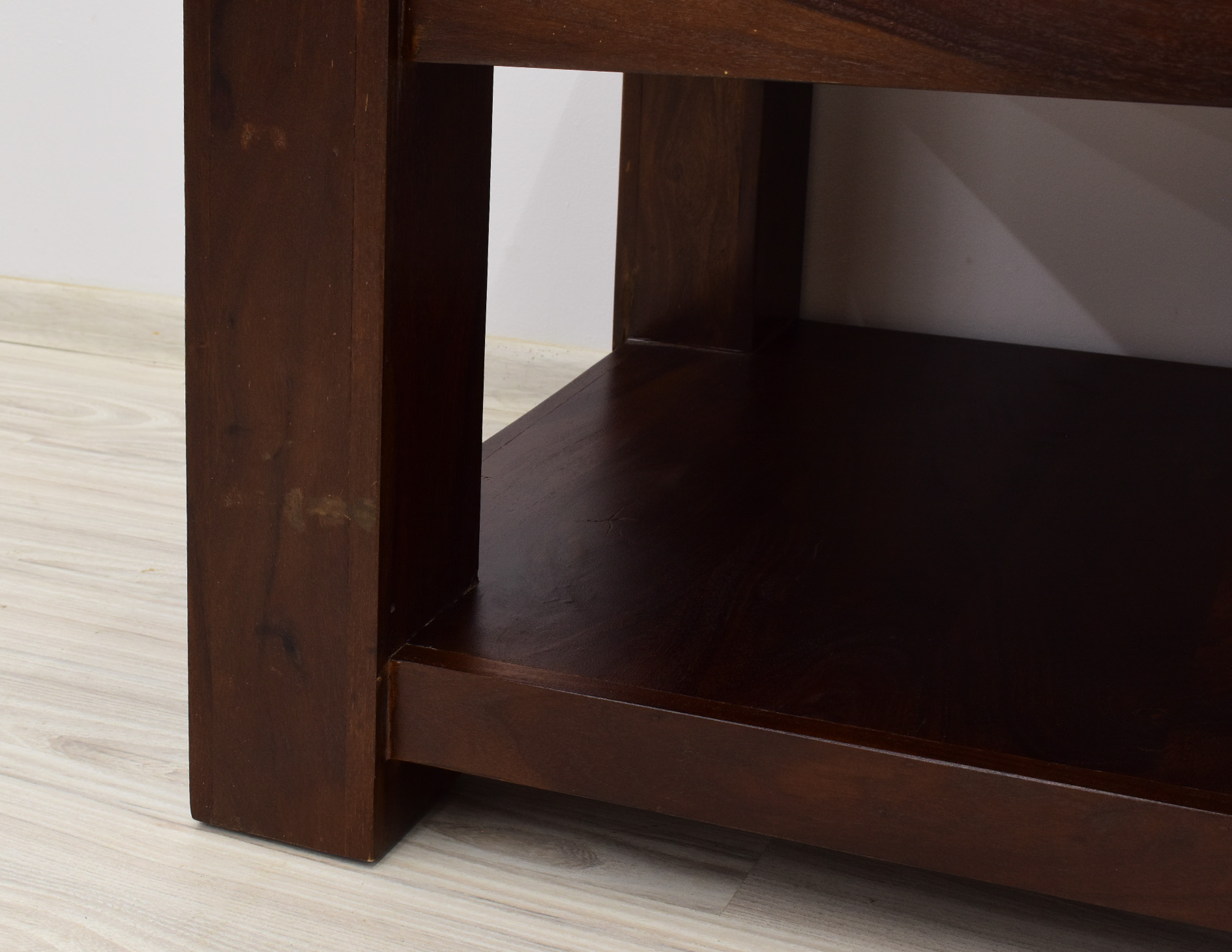 Stolik kawowy kolonialny Modern z litego drewna palisandru indyjskiego z półką