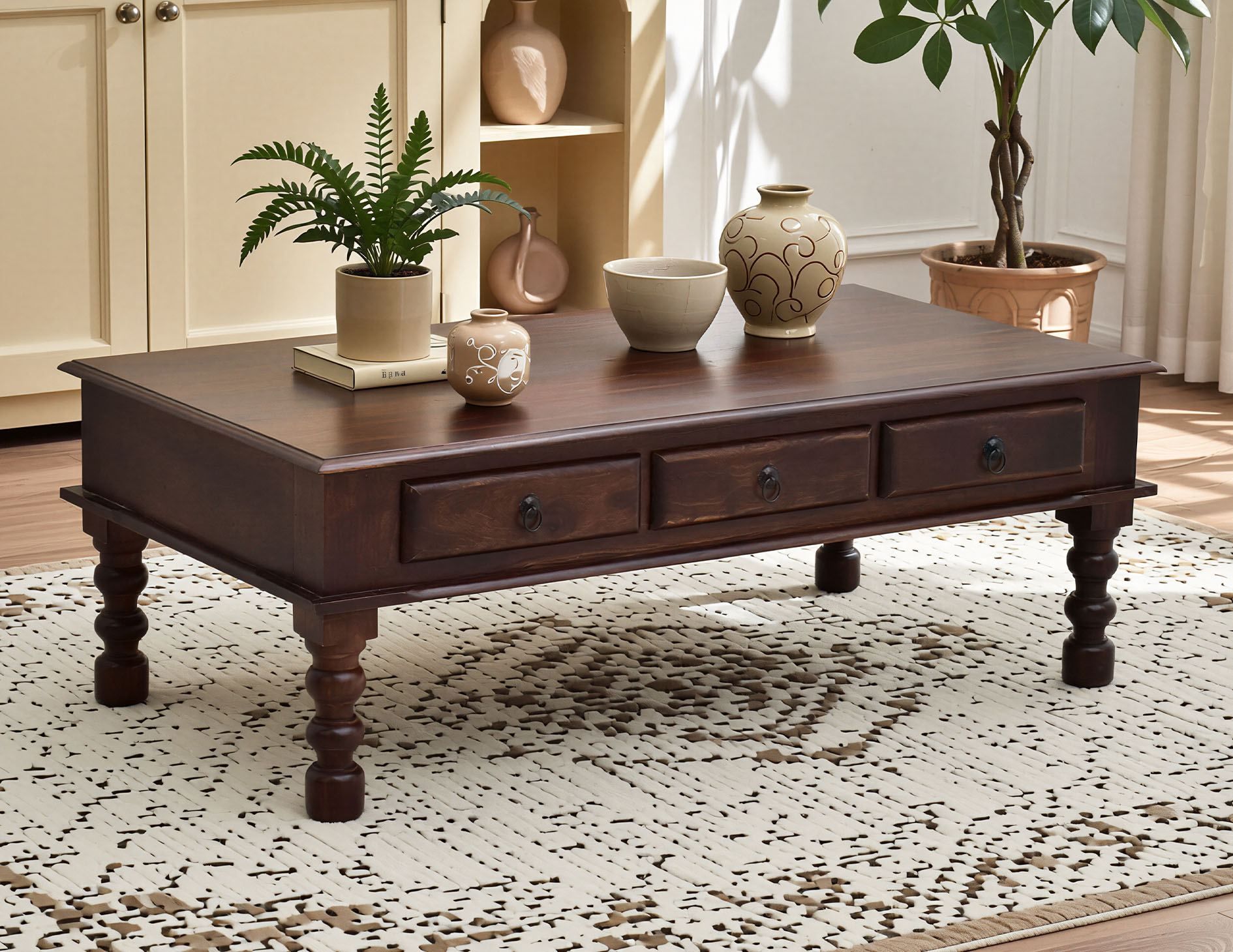 Ława z szufladami z ciemnego palisandru indyjskiego