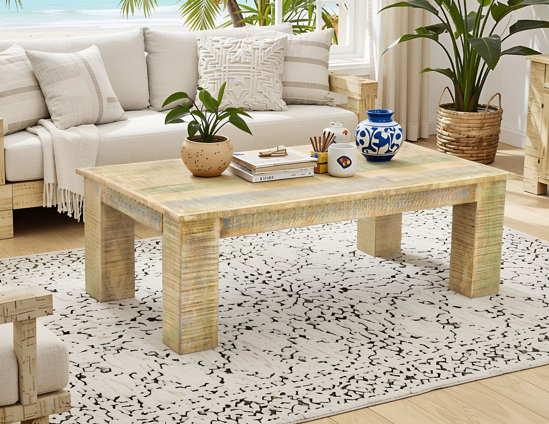 Stolik indyjski wytworzony w 100% z litego drewna mango. Miejscowo został wybarwiony na pastelowo, a następnie stylowo przetarty.