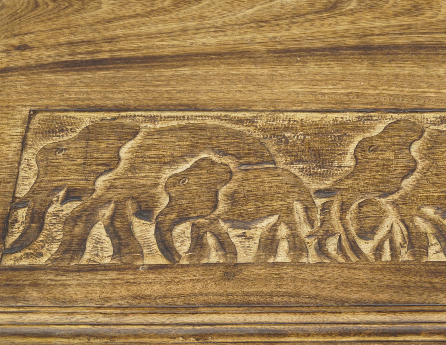 Stołek indyjski, który może pełnić zadanie dodatkowego siedziska lub stolika kawowego w zależności od potrzeb. Jest to idealne rozwiązanie do małych wnętrz, gdzie liczy się praktyczne i wielofunkcyjne podejście do aranżacji. Stołek został wykonany w 100% z litego mango, a jego siedzisko/blat posiada ręcznie tworzone rzeźbienia w postaci sylwetek słoni. Dodatkowym akcentem stają się, także jego stylowe nogi.