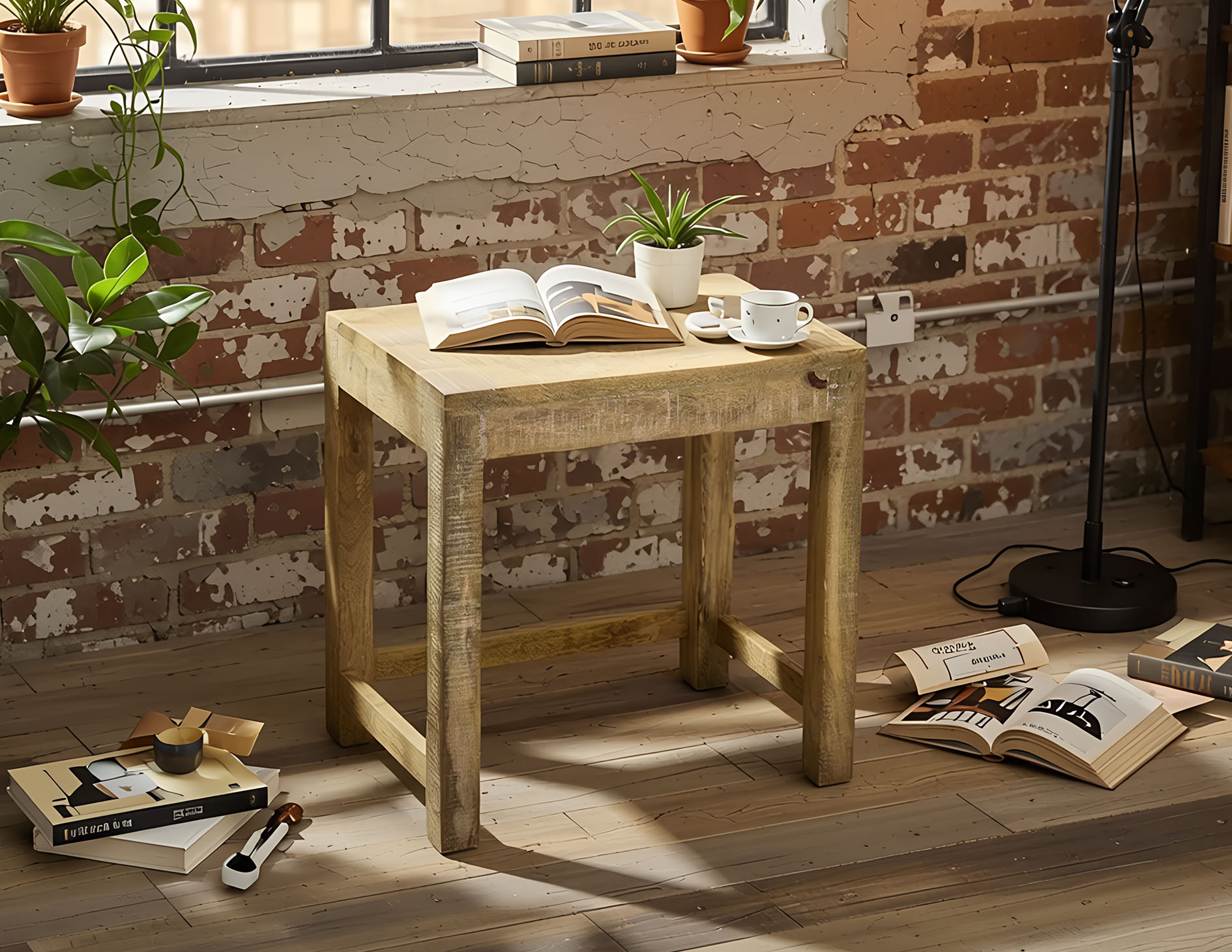 Taboret kolonialny, mogący służyć jako niewielki stolik, wykonany w 100% z litego drewna mango. Jest to nadzwyczaj prosta konstrukcja w naturalnym kolorze drewna. Stylem wpisuje się doskonale w niewielkie, minimalistycznie urządzone przestrzenie.