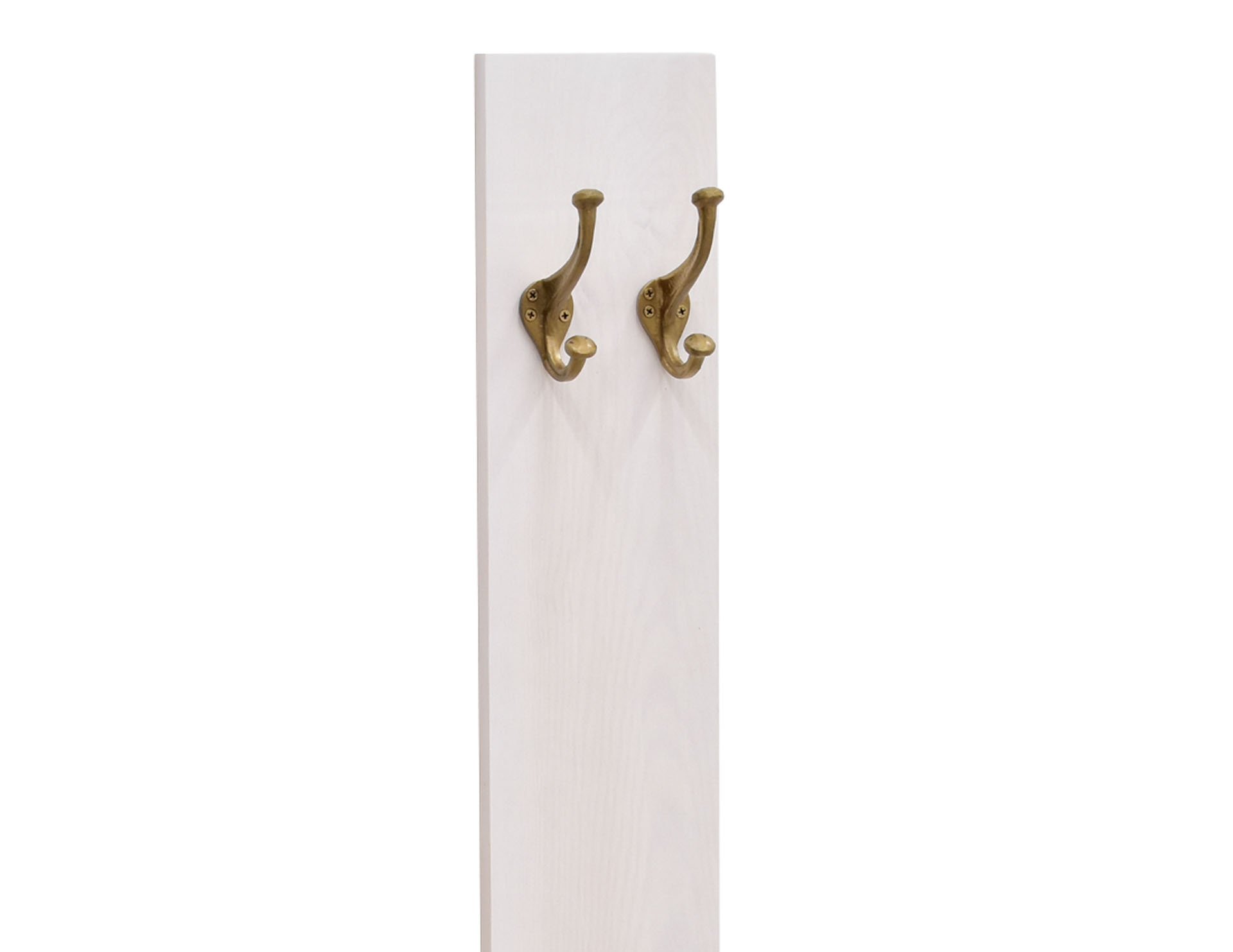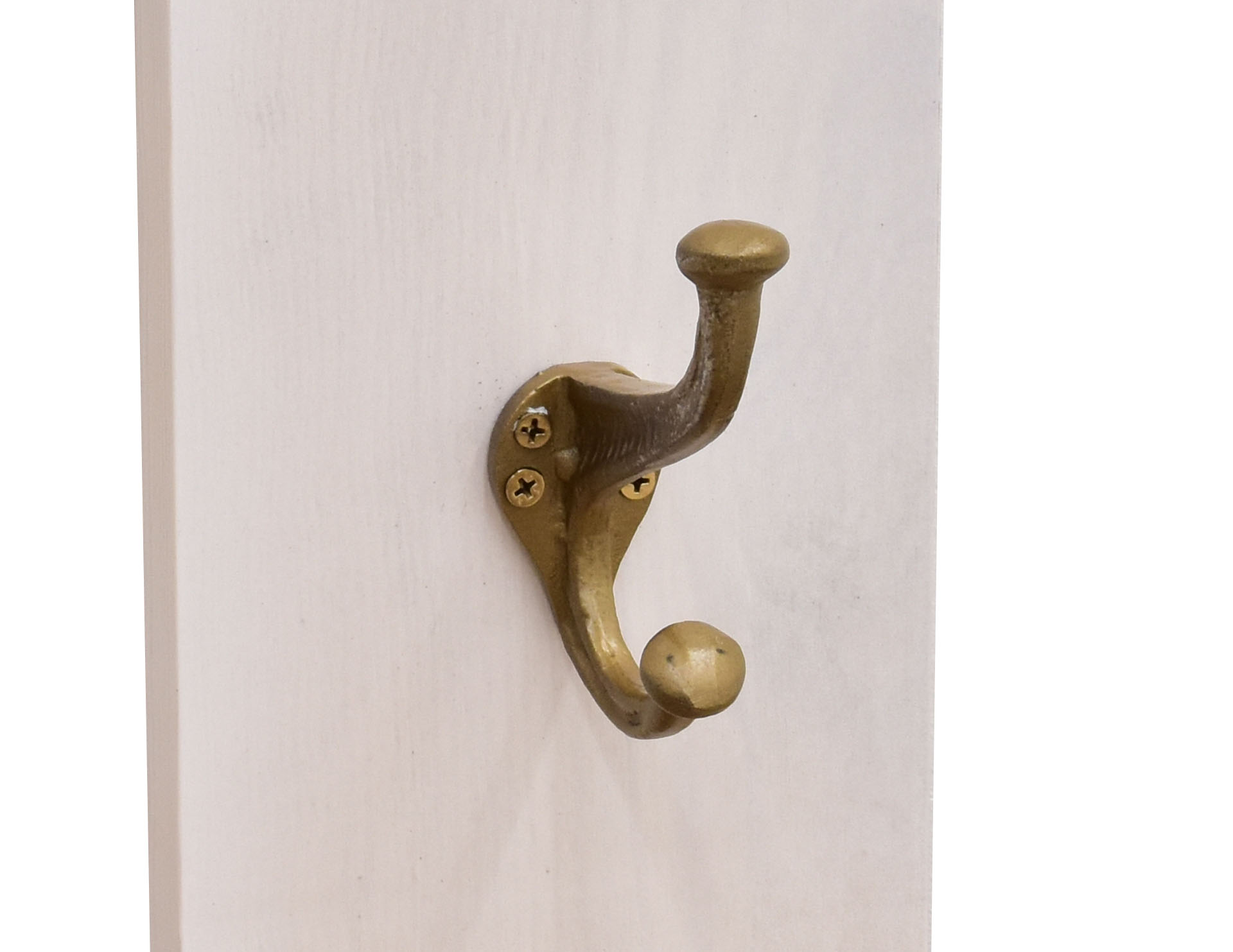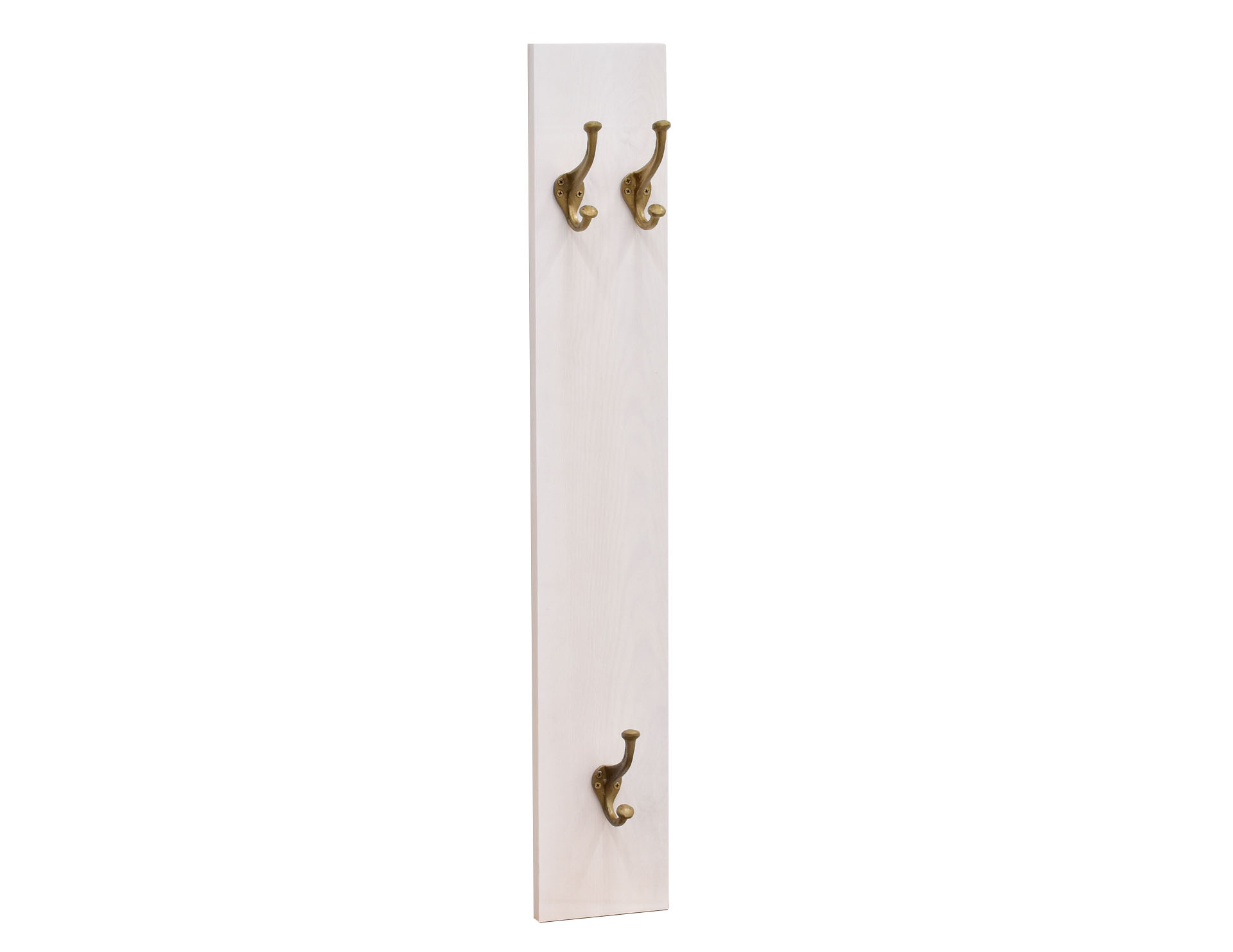 Wieszak ścienny stylizowany na antyk, wyposażony w 3 żeliwne haki. Wieszak wykonany w formie rękodzieła na bielonej desce z litego drewna sosny o grubości 2 cm.