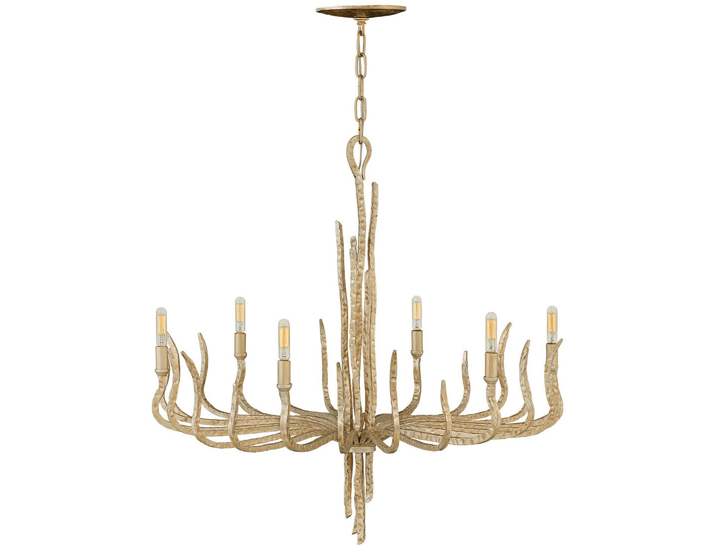 Żyrandol z kolekcji Spyre wyposażony w sześć źródeł światła. Wykończenie oprawy w kolorze szampańskiego złota. Średnica lampy wynosi 71,1 cm, natomiast wysokość 77,5 cm. Jej długość można regulować i kształtuje się od 85,2 cm do 385 cm. Odpowiednia do żarówki 60W E14. Przewidywany czas realizacji ok. 2 tygodnie. W związku z tym, że produkt jest wykonywany i sprowadzany pod indywidualne zamówienie, klientowi nie przysługuje 14-dniowe prawo do odstąpienia od umowy.